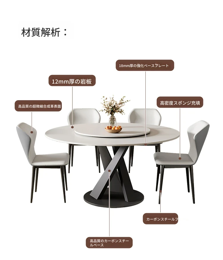 1.2メートル岩板ダイニングテーブル+4椅子