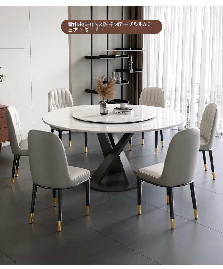 1.2メートル岩板ダイニングテーブル+6椅子