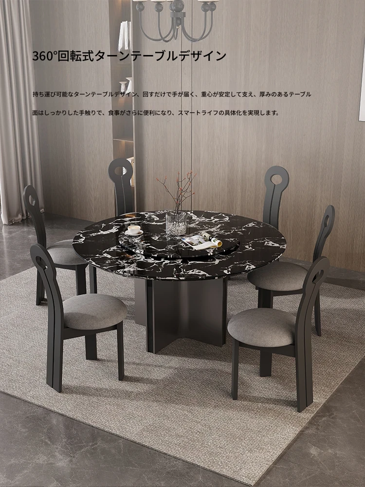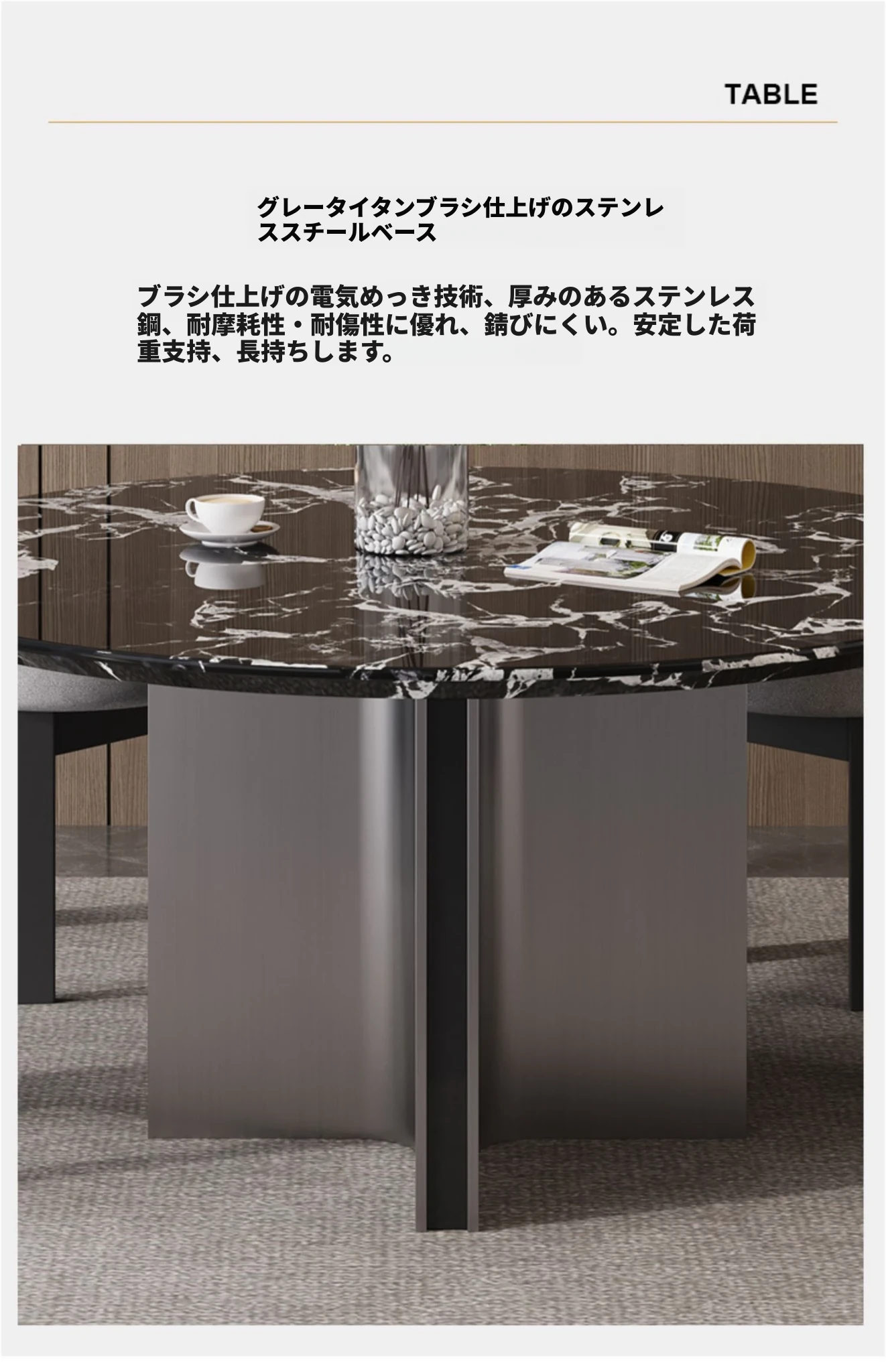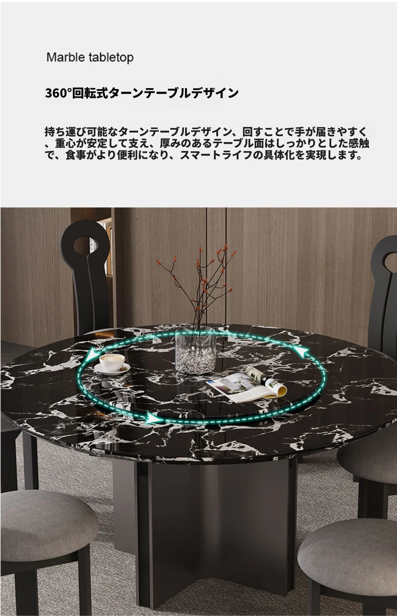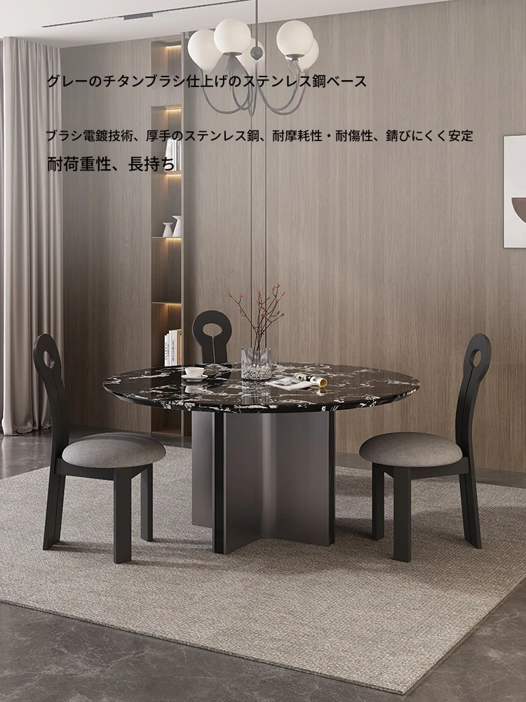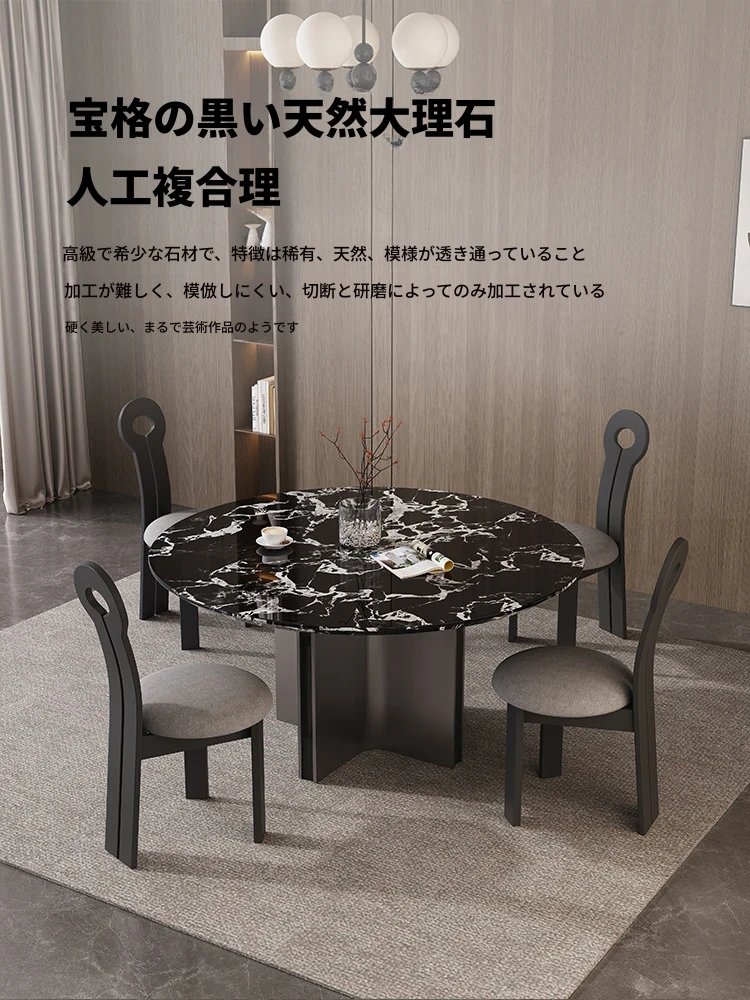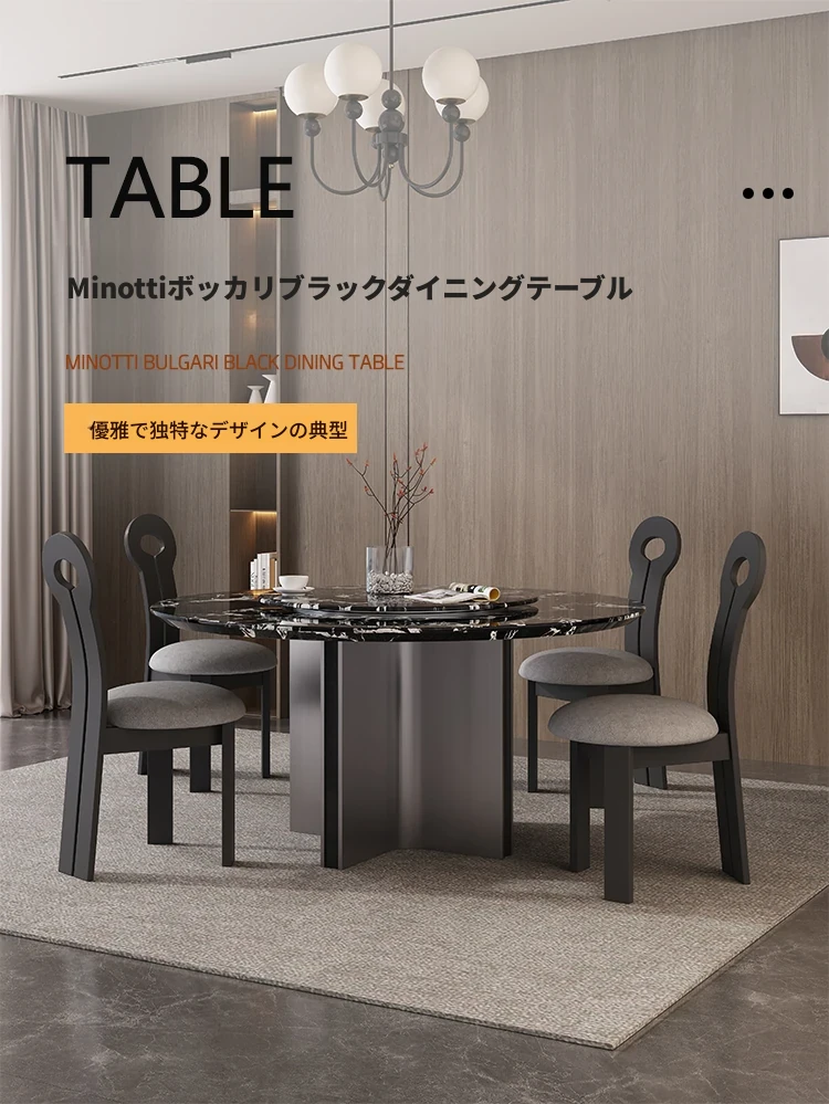 イタリアンミニマリズムの極み!ブルガリブラックラグジュアリーストーン円形ダイニングテーブル - 家庭用モダンシンプル、ブラックローズ大理石の美しさが引き立つ贅沢な一品。