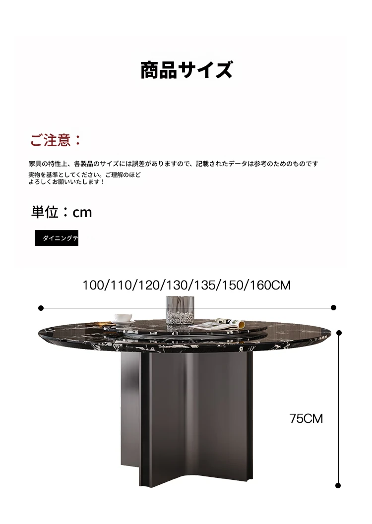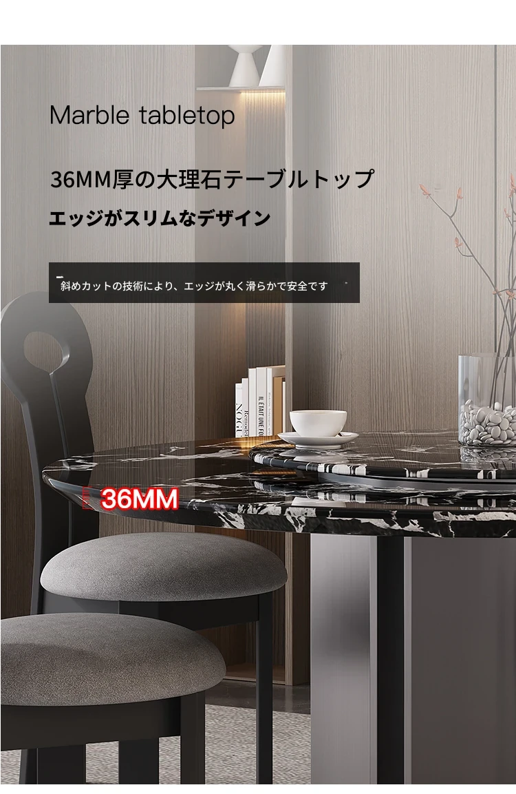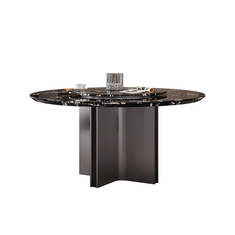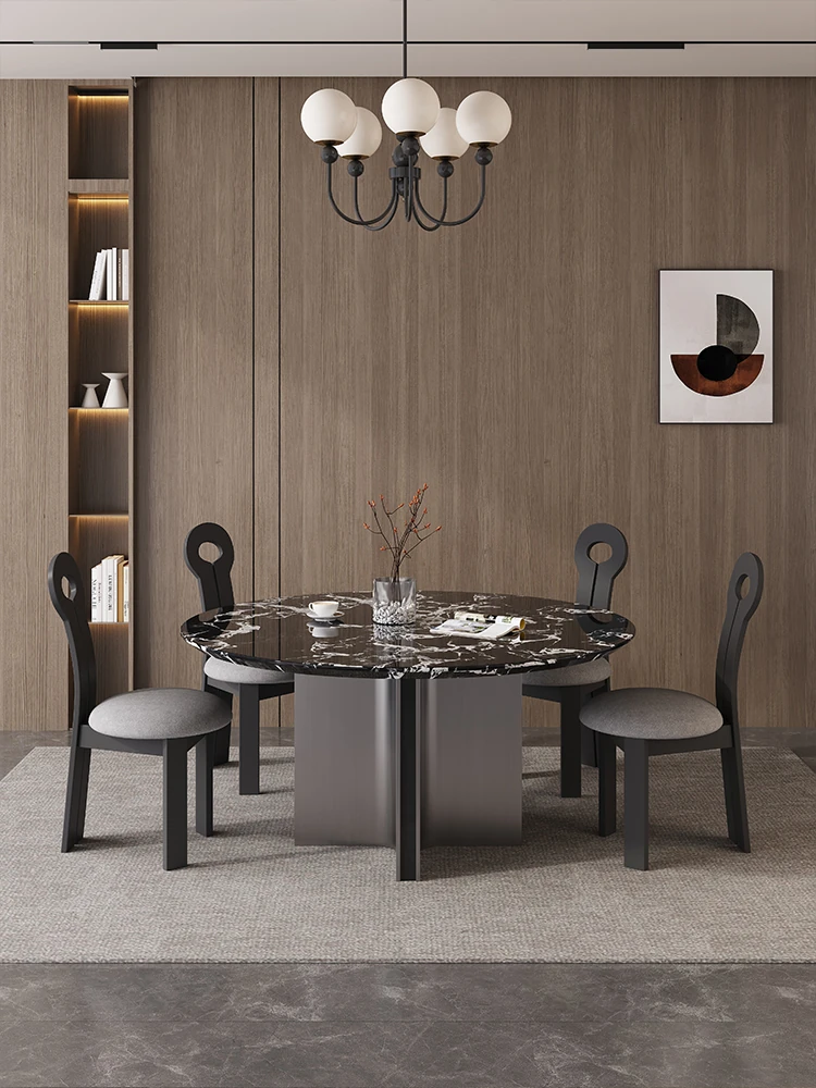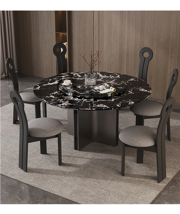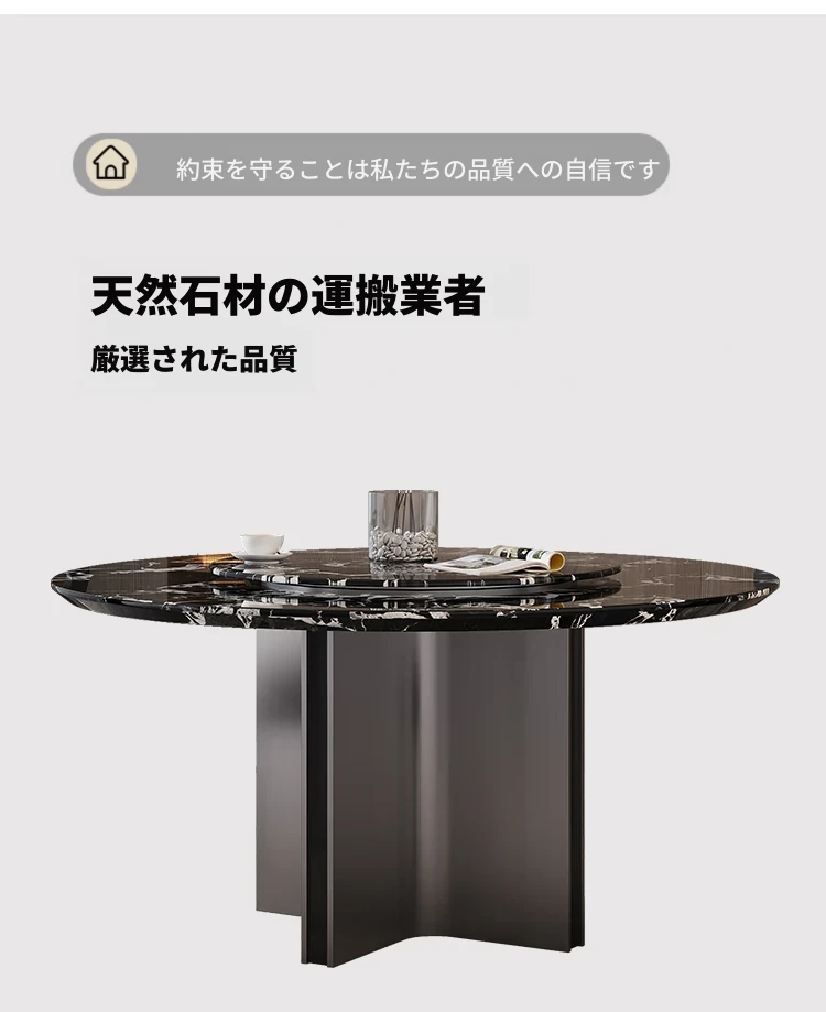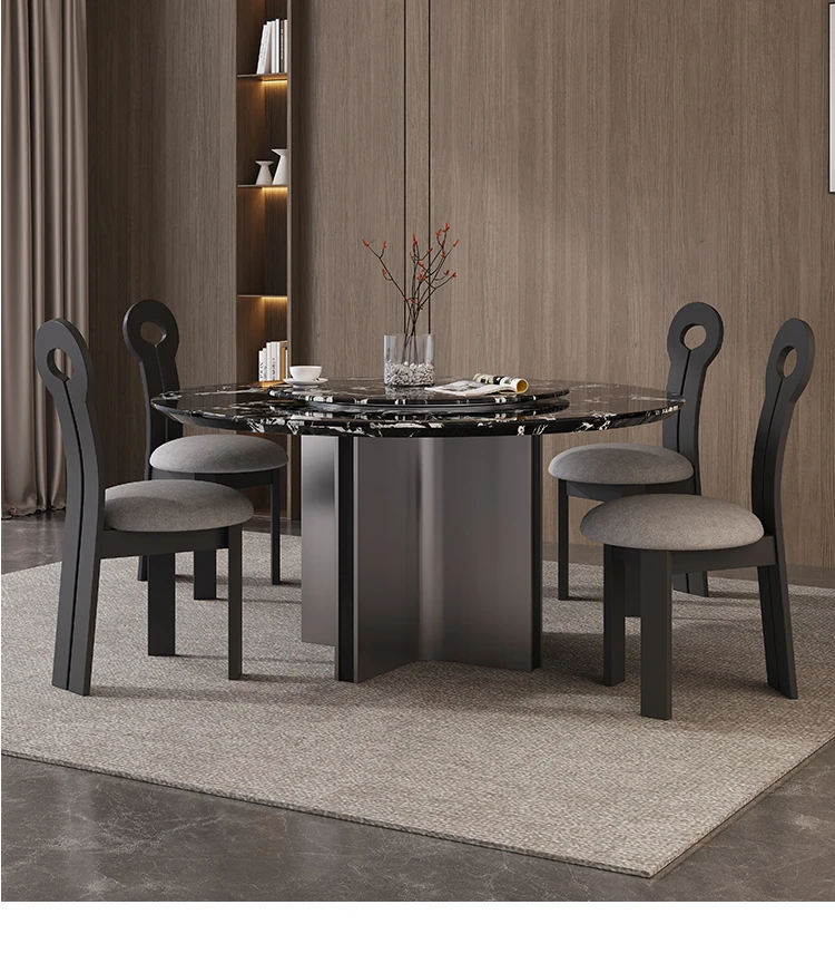 イタリアンミニマリズムの極み!ブルガリブラックラグジュアリーストーン円形ダイニングテーブル - 家庭用モダンシンプル、ブラックローズ大理石の美しさが引き立つ贅沢な一品。