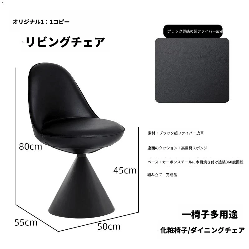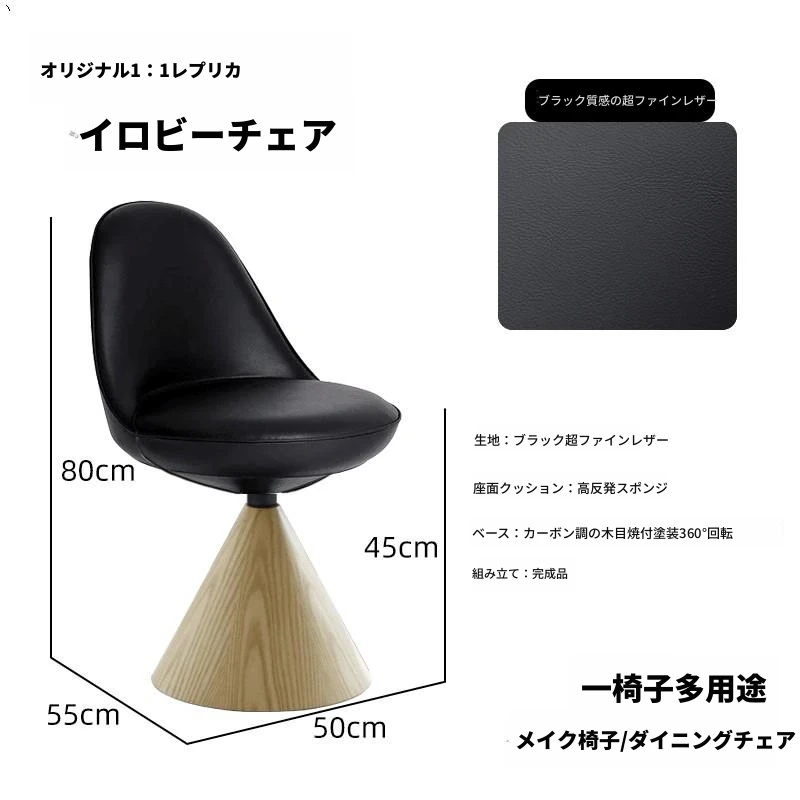 ブラック+ブラックウッドベースの超細繊維レザー回転タイプ