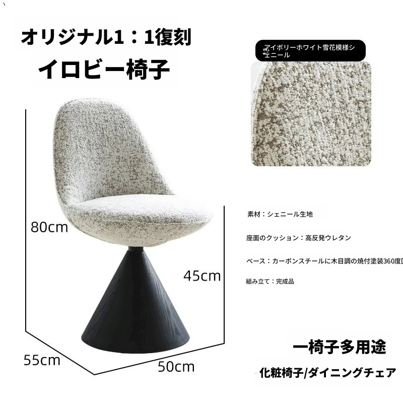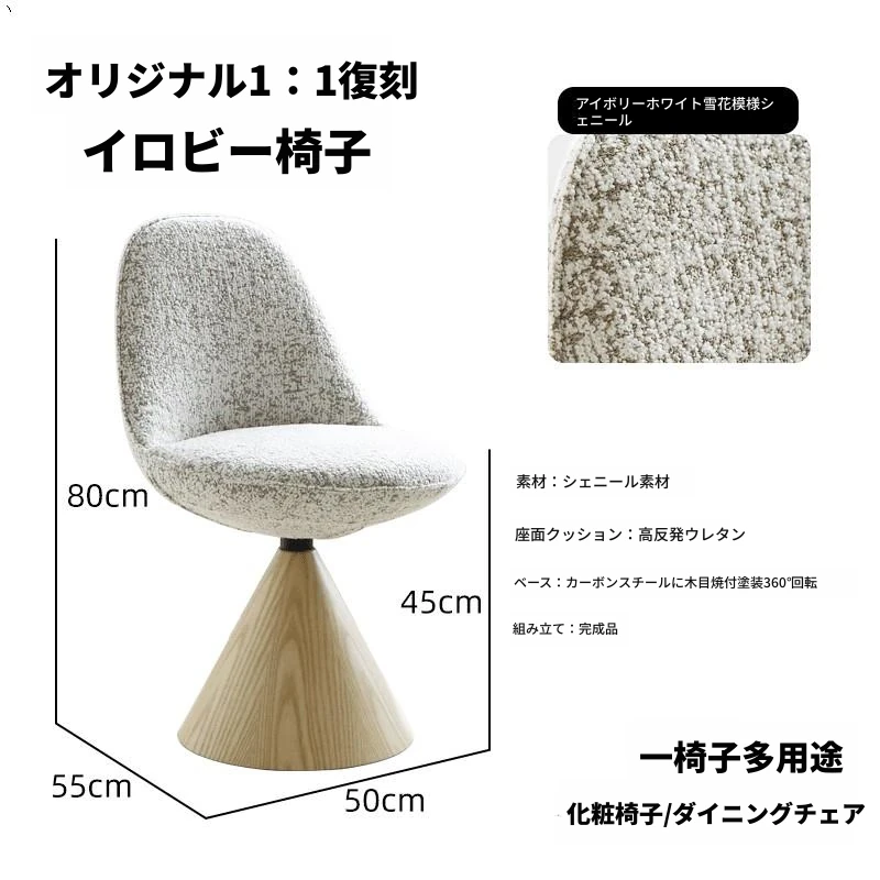 クリームホワイト+ナチュラルウッドベースのシェニール回転タイプ