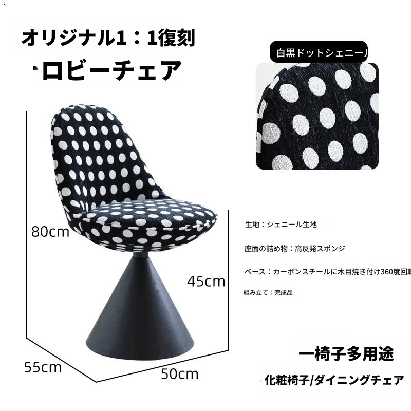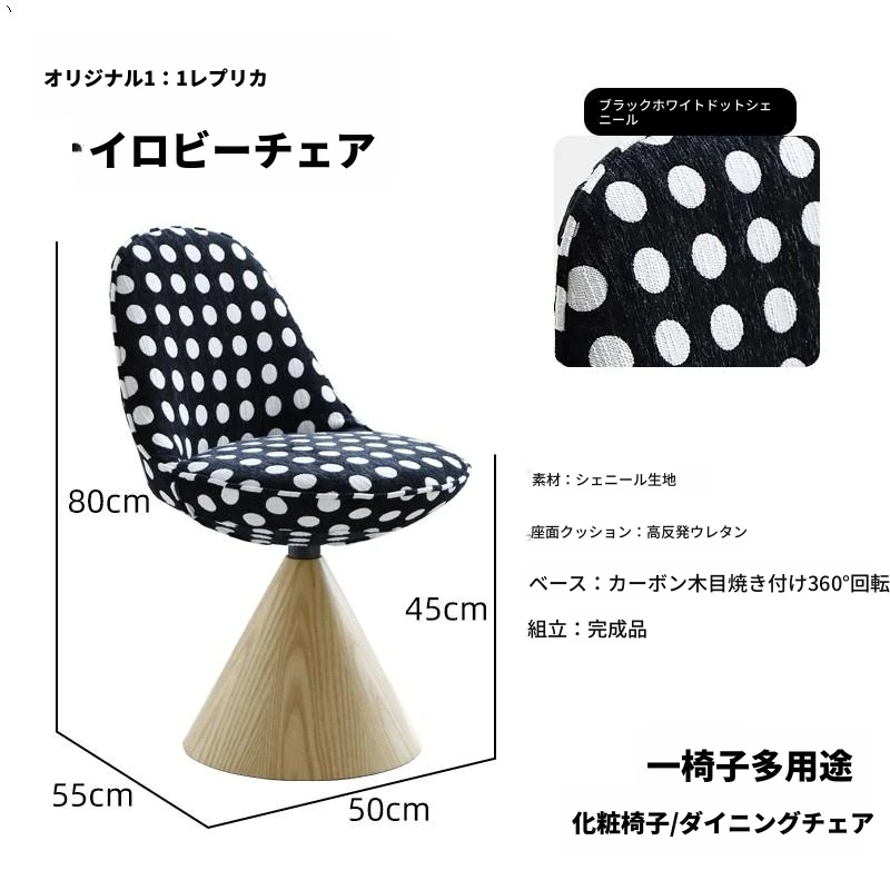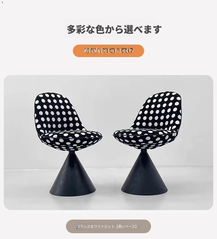 モノクロドット+ナチュラルウッドベースのシェニール回転タイプ