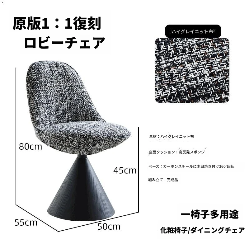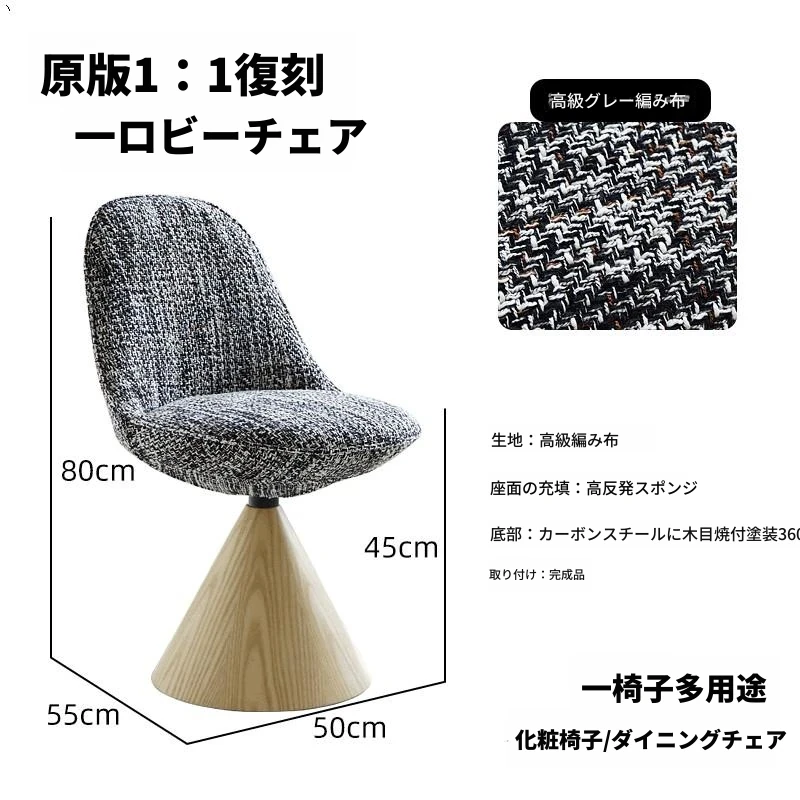グレー+ブラックウッドベースのファブリック回転タイプ