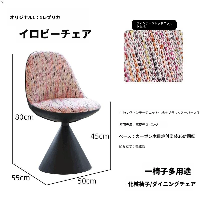 ヴィンテージピンク+ブラックウッドベースのファブリック回転タイプ