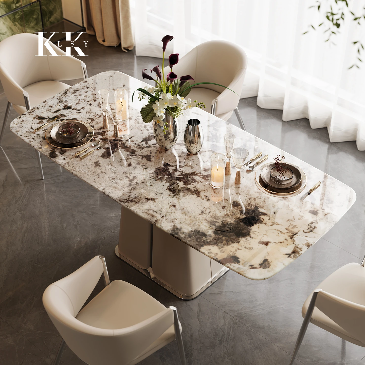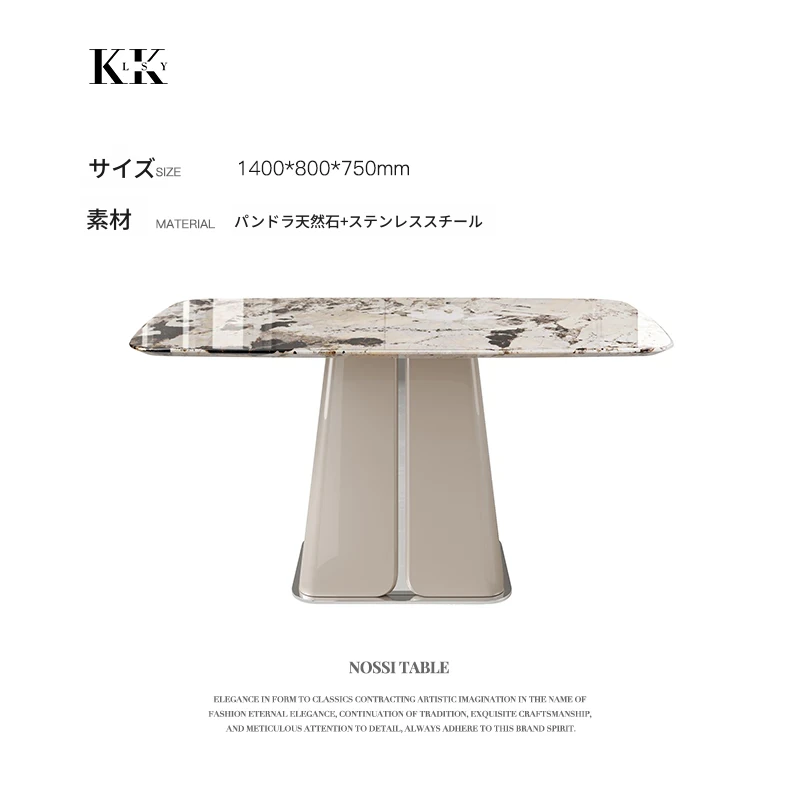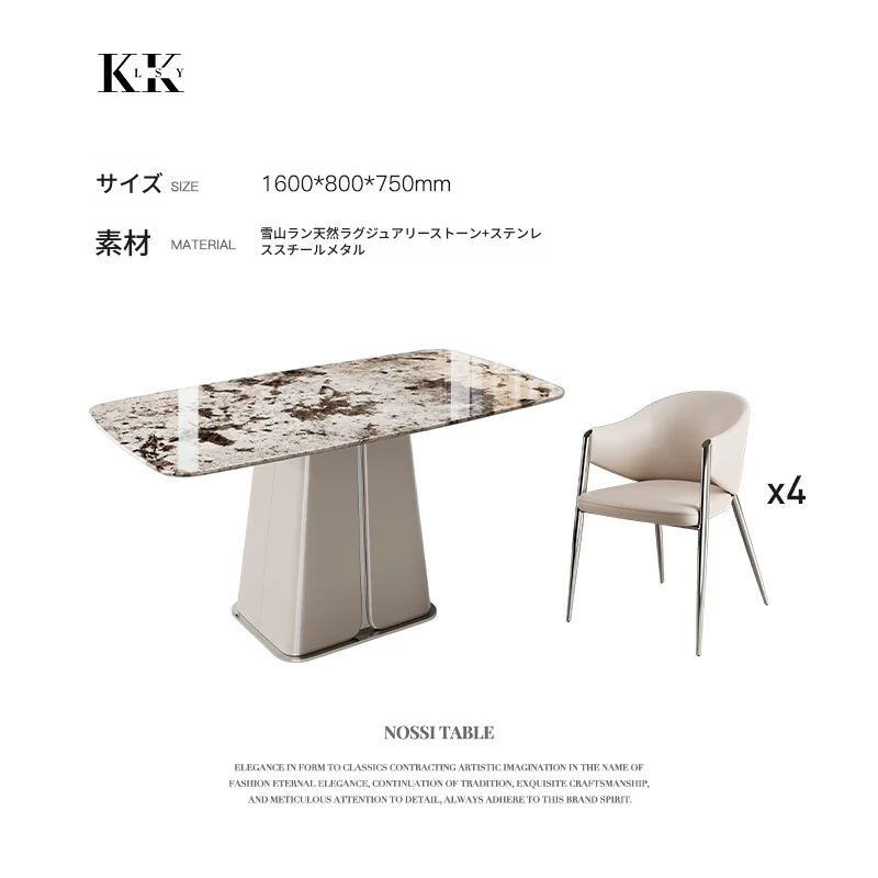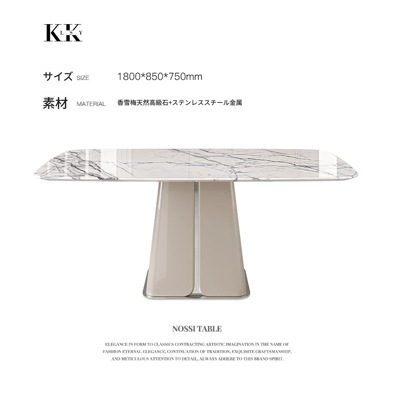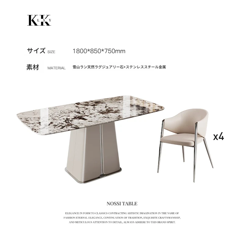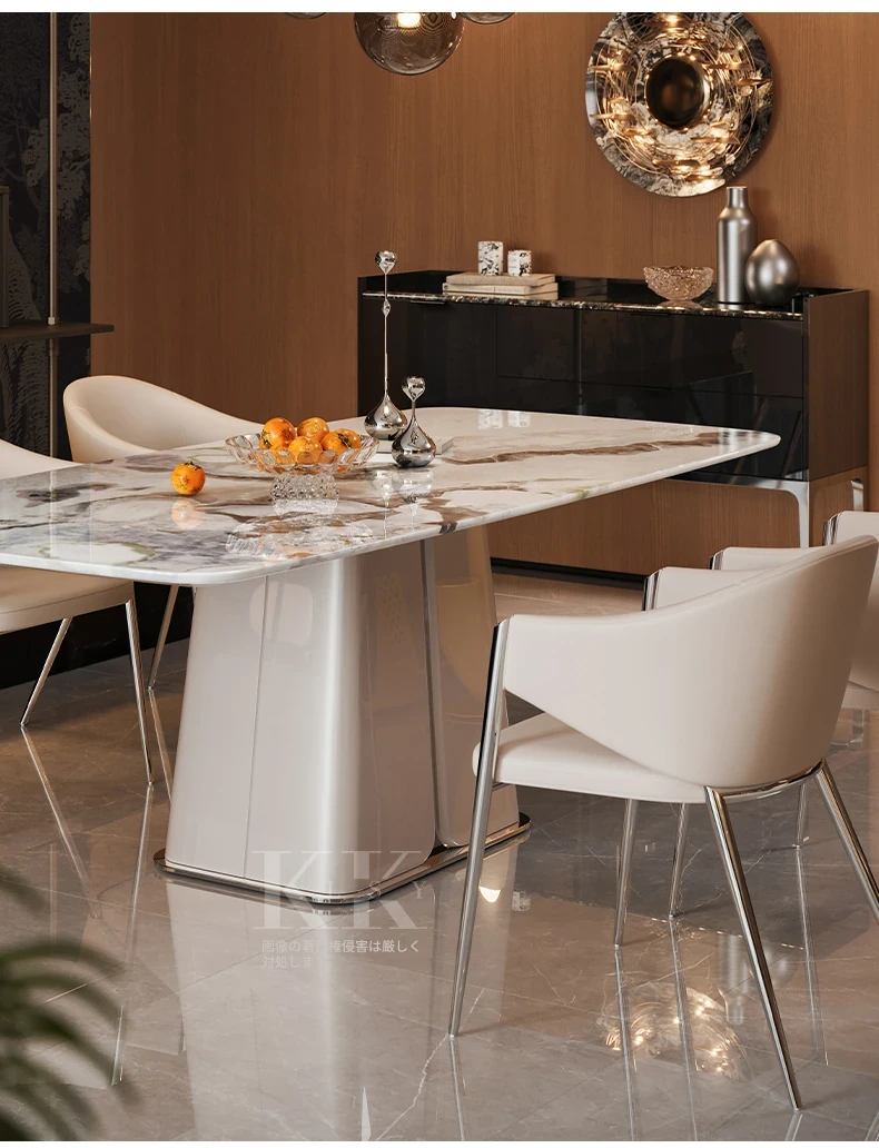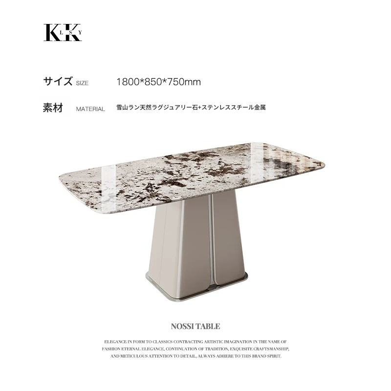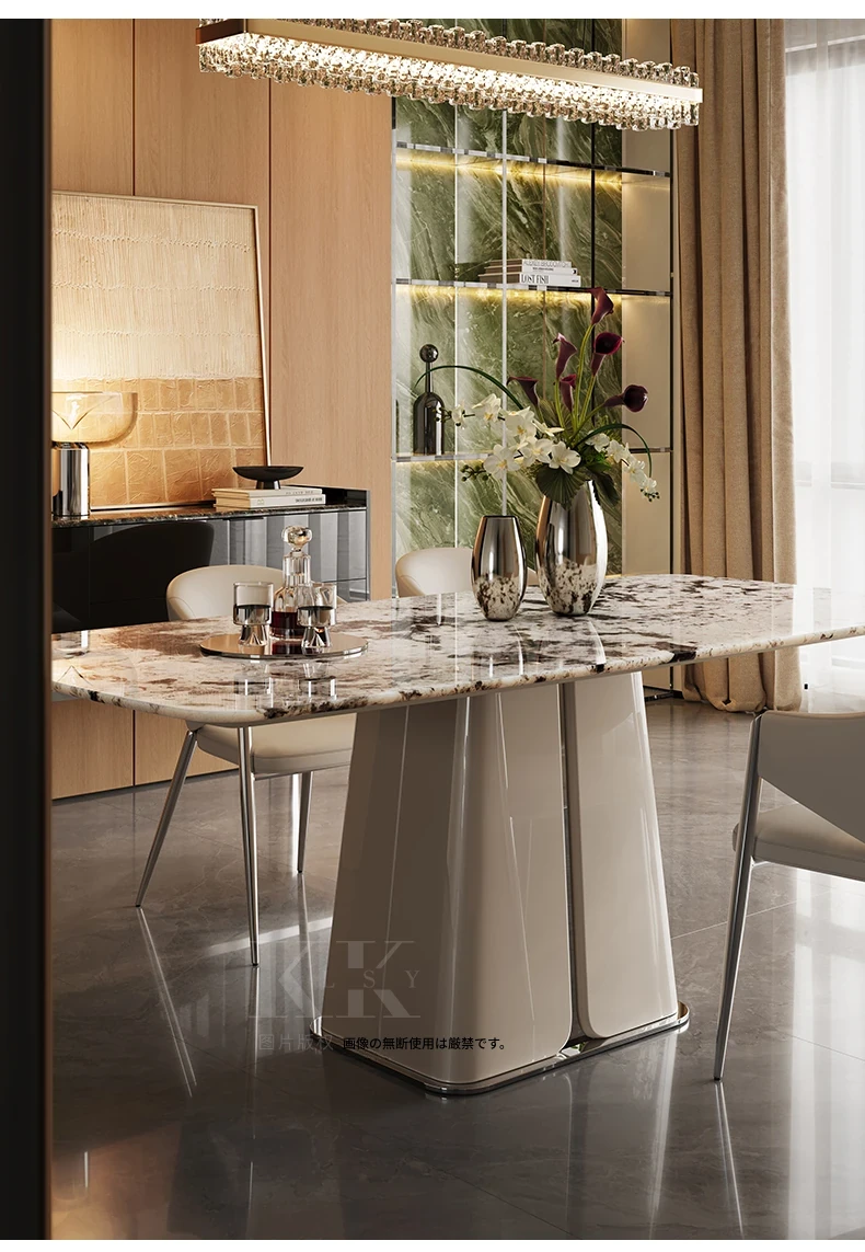 ケリー・モーメント イタリアンラグジュアリー 雪山ランブルー 天然大理石の高級感溢れる長方形ダイニングテーブル 香雪梅デザインでおしゃれな空間を演出!