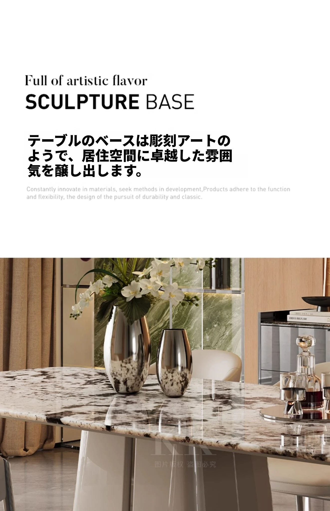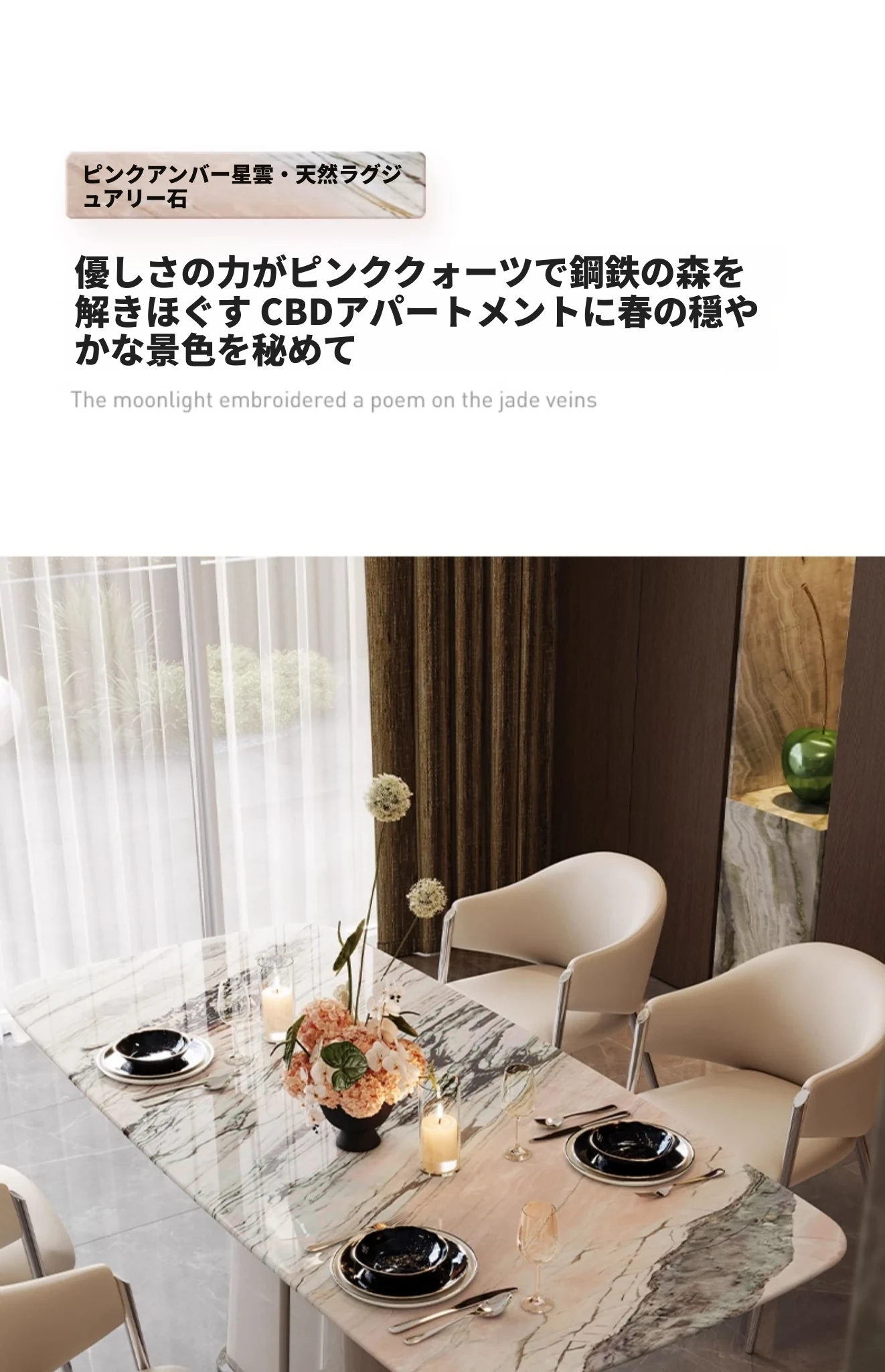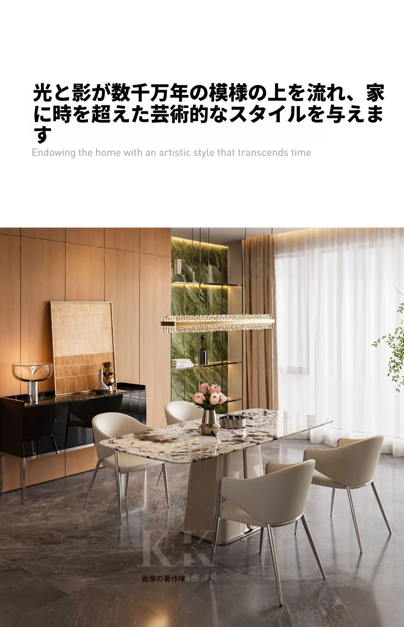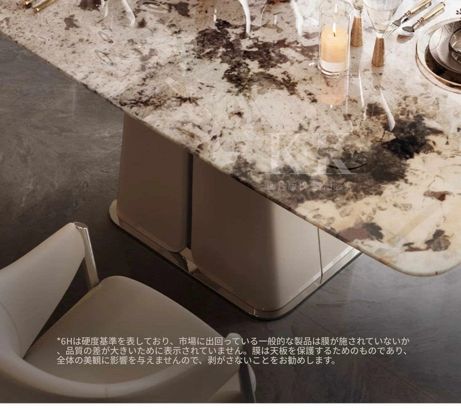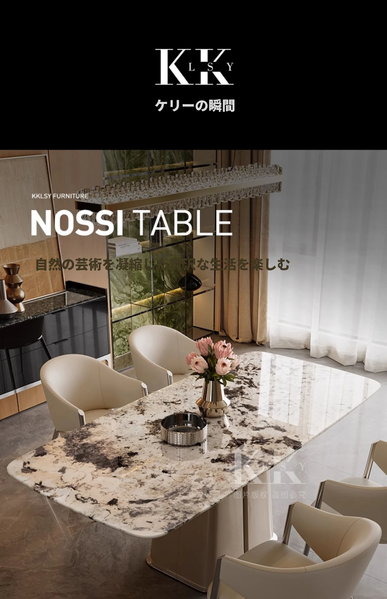 ケリー・モーメント イタリアンラグジュアリー 雪山ランブルー 天然大理石の高級感溢れる長方形ダイニングテーブル 香雪梅デザインでおしゃれな空間を演出!