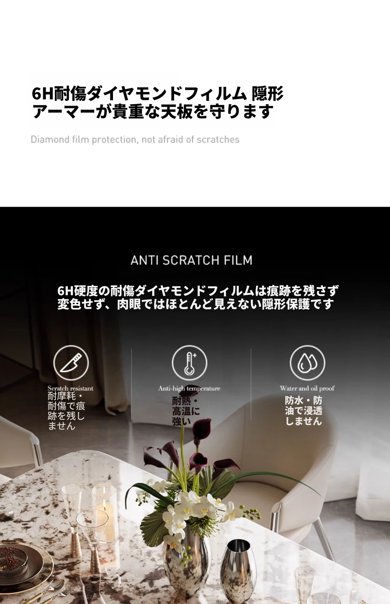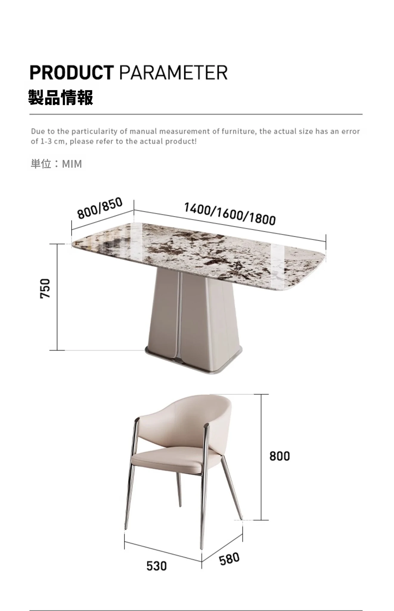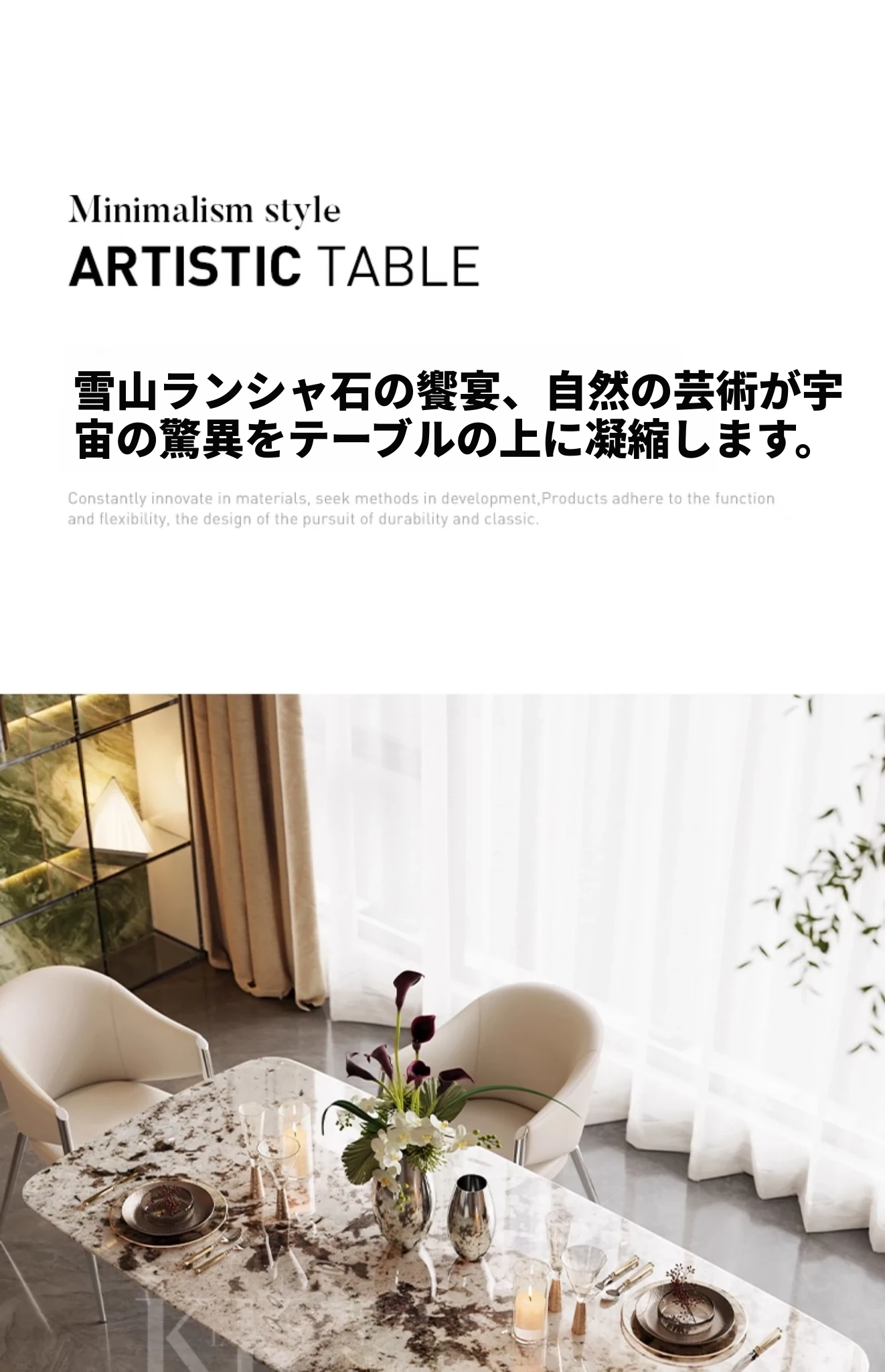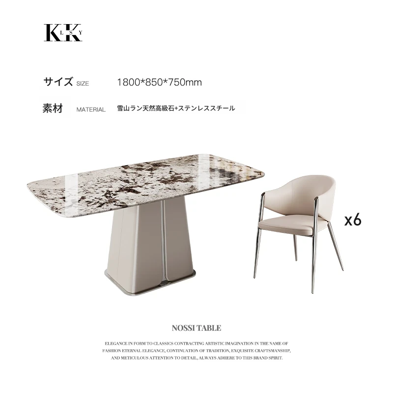 1.8メートル雪山蘭奢石+ベルリンダイニングチェア*6
