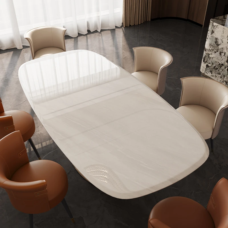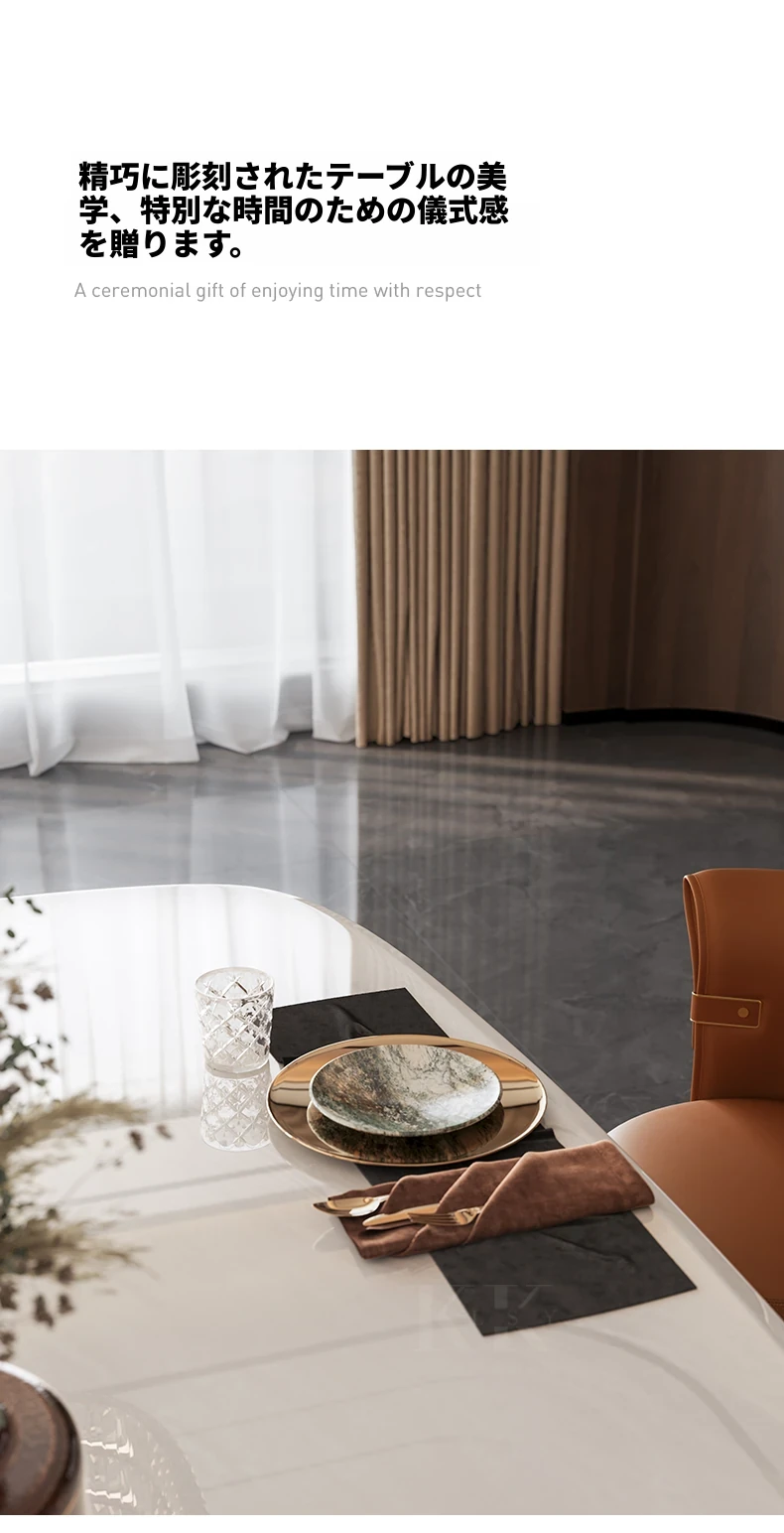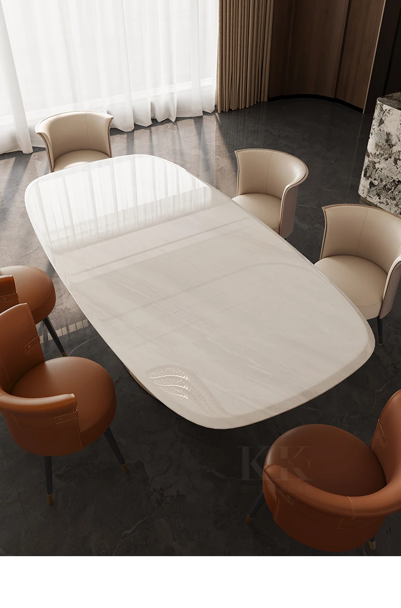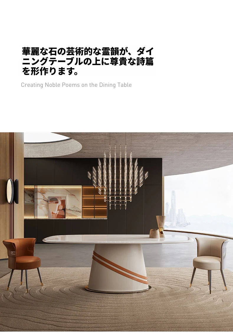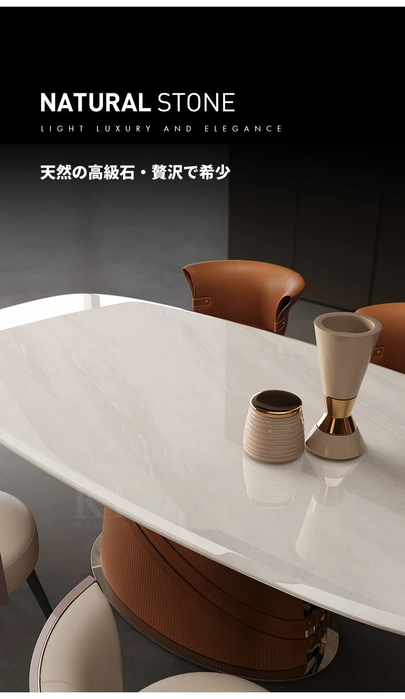 ケリー・モーメント イタリアンナチュラルラグジュアリーストーン ダイニングテーブル 長方形 軽やかでシンプルなデザイン 大型家庭向け デザイナー製品