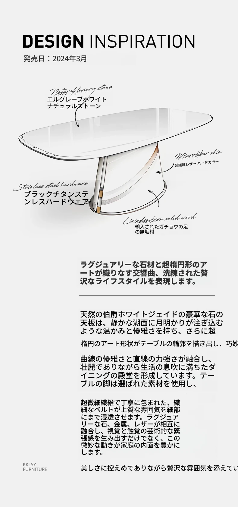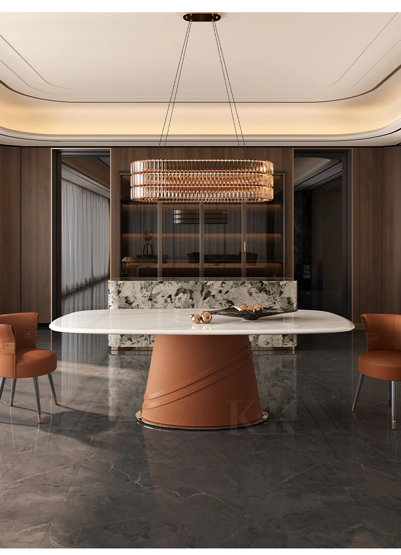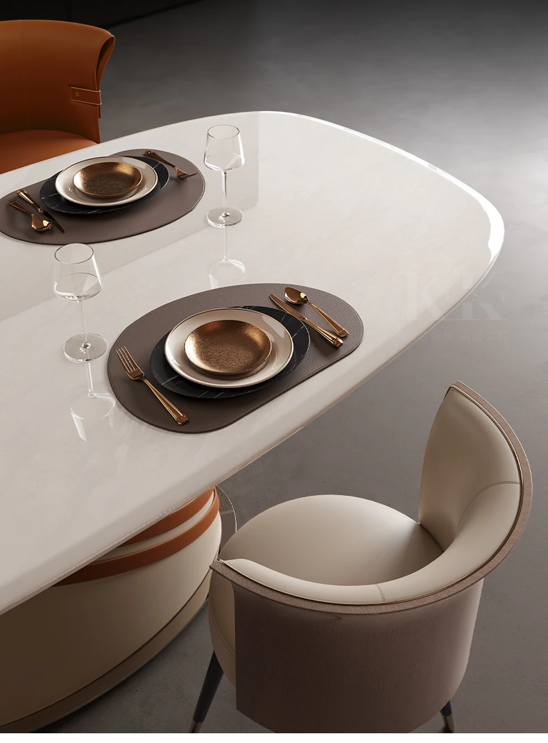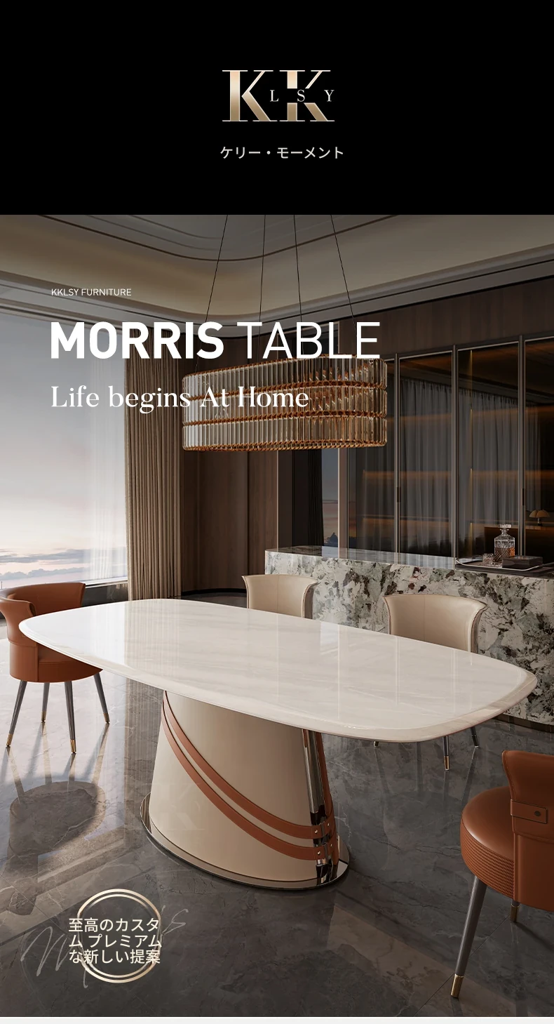 ケリー・モーメント イタリアンナチュラルラグジュアリーストーン ダイニングテーブル 長方形 軽やかでシンプルなデザイン 大型家庭向け デザイナー製品