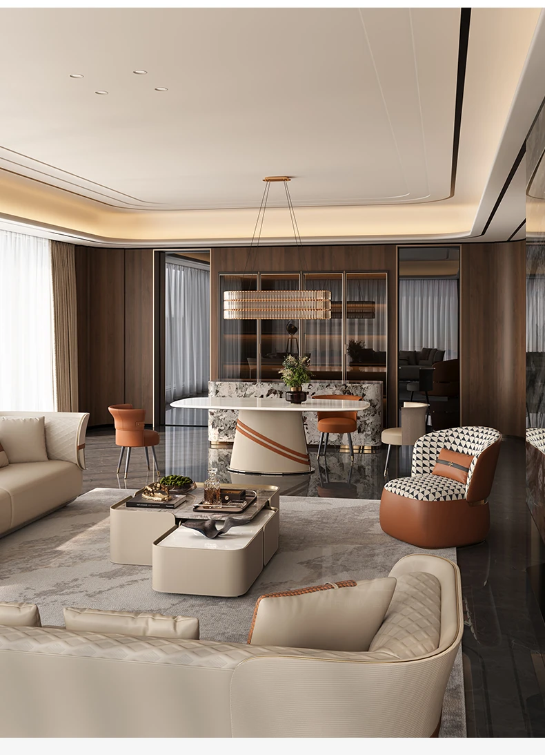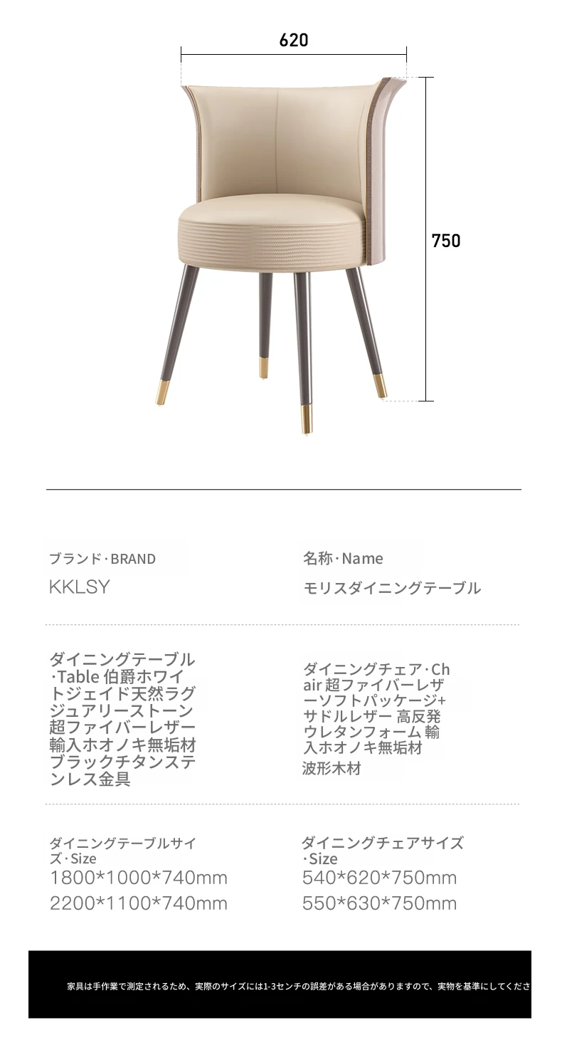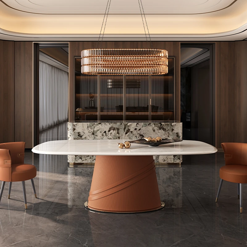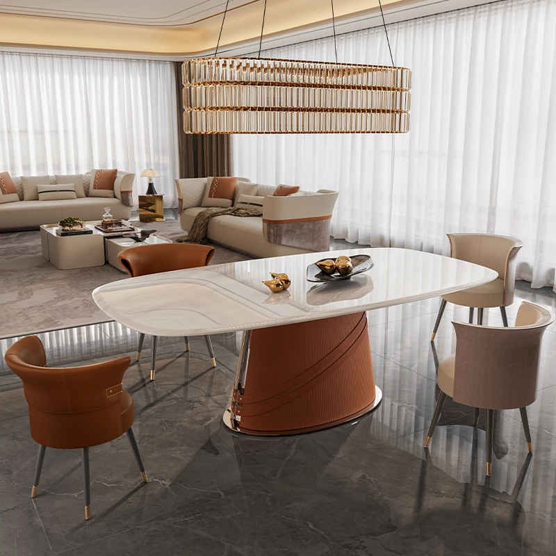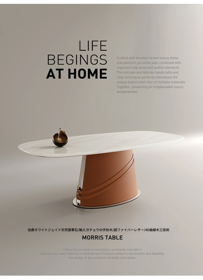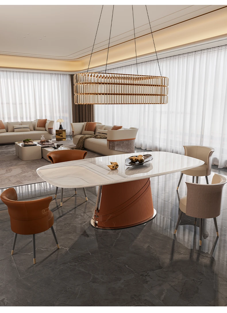 ケリー・モーメント イタリアンナチュラルラグジュアリーストーン ダイニングテーブル 長方形 軽やかでシンプルなデザイン 大型家庭向け デザイナー製品