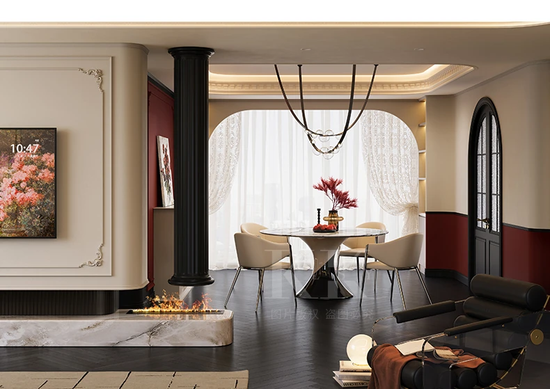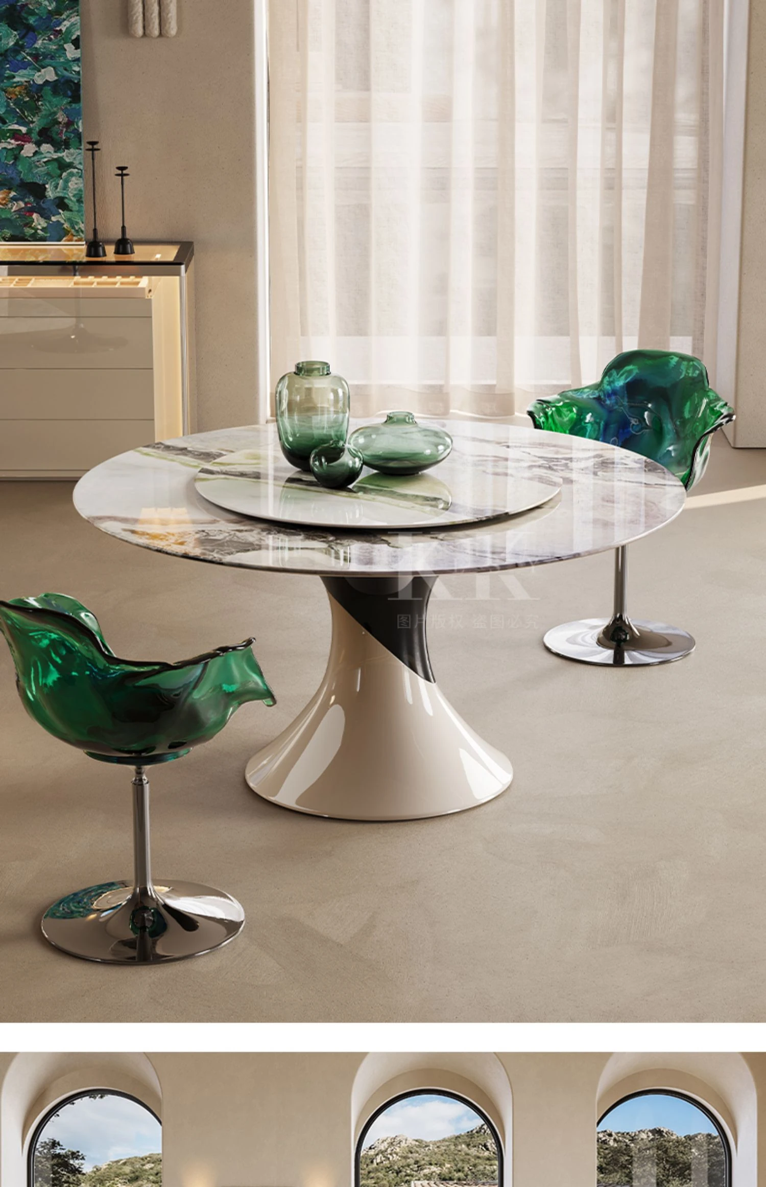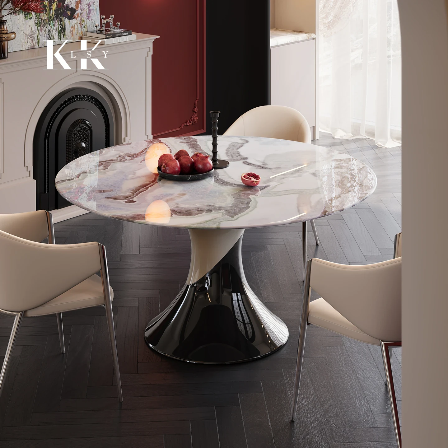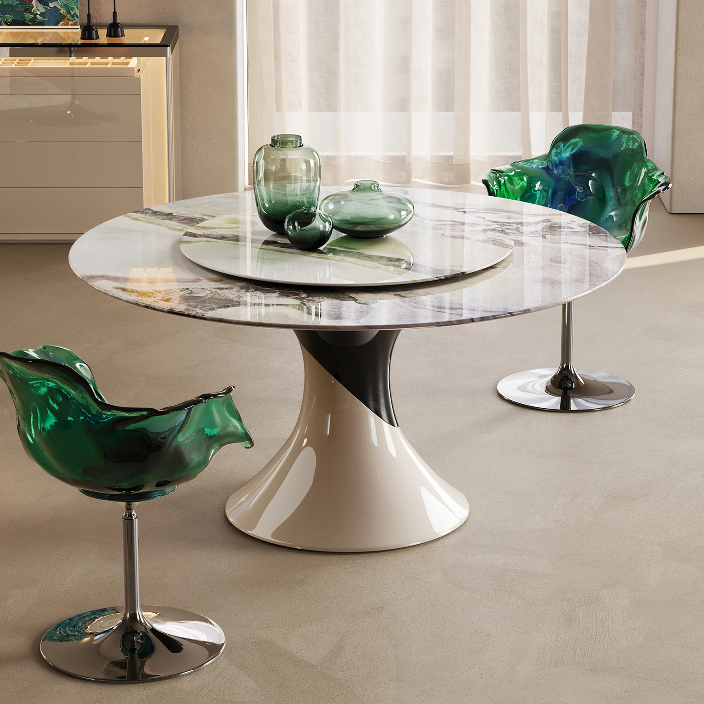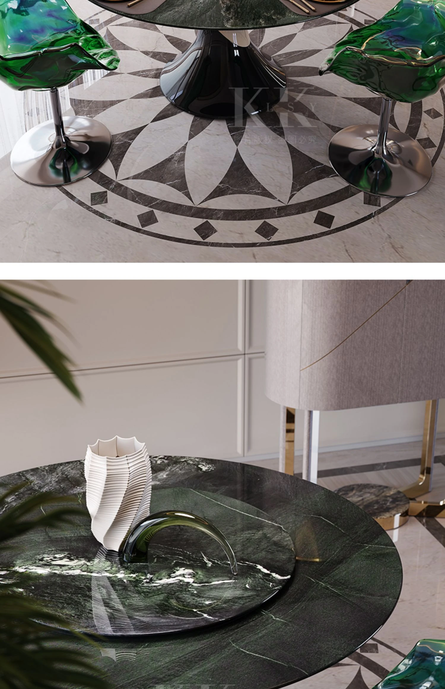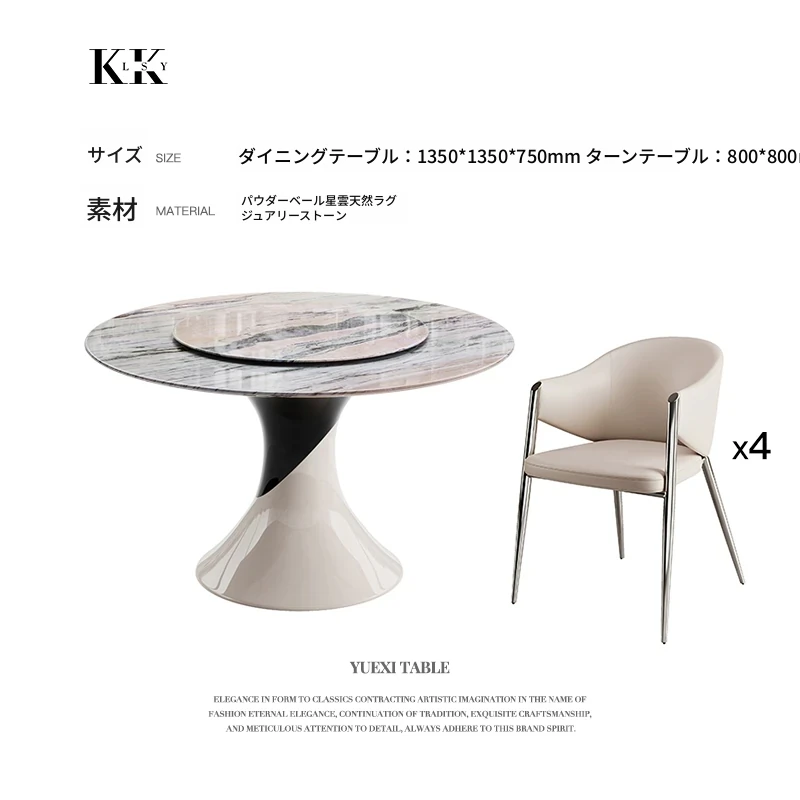 ケリーの瞬間 天然大理石パウダー使用のアンバー星雲デザイン ラウンドダイニングテーブル用ターンテーブル 豪華な石材で高級感あふれる別荘スタイルのレストランにぴったり!