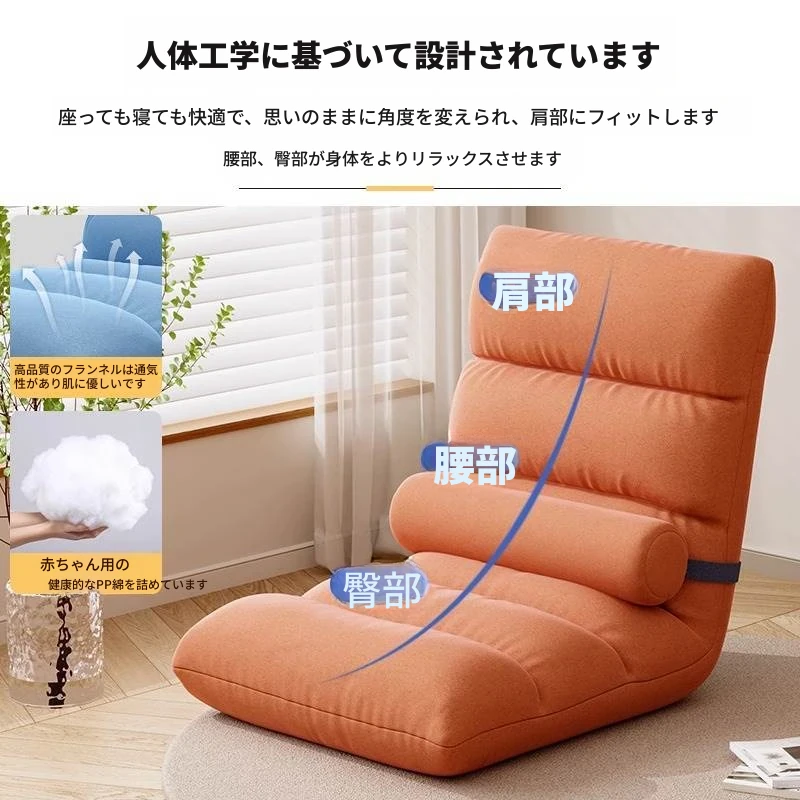 リラックスできる一人用ソファ、畳スタイルの折りたたみ式ベッド。寝転んでも座っても快適!寝室や学生寮の窓際にぴったりな、背もたれ付きの便利なクッションソファ。快適なひとときをお楽しみください!