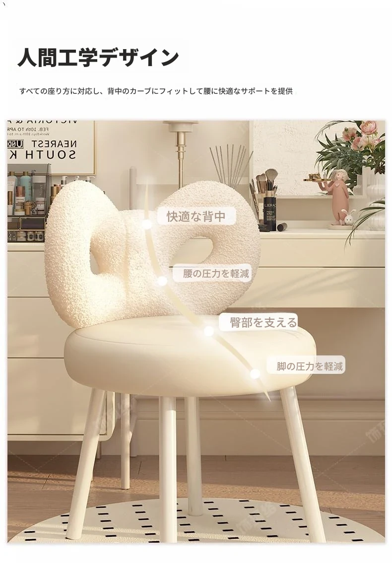 おしゃれな回転式化粧椅子 - 高級感あふれるバタフライスツール!女子の寝室にぴったりなネット人気の背もたれ付き、リッチなネイルチェアで自分だけの特別な空間を演出!