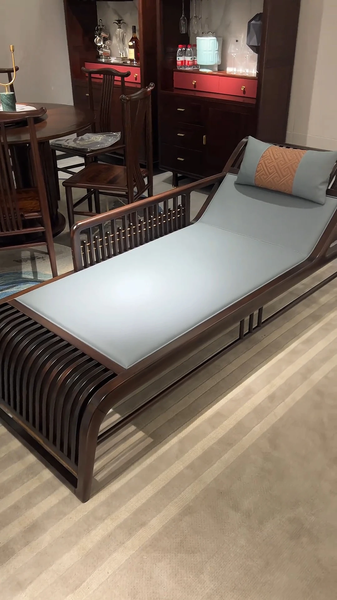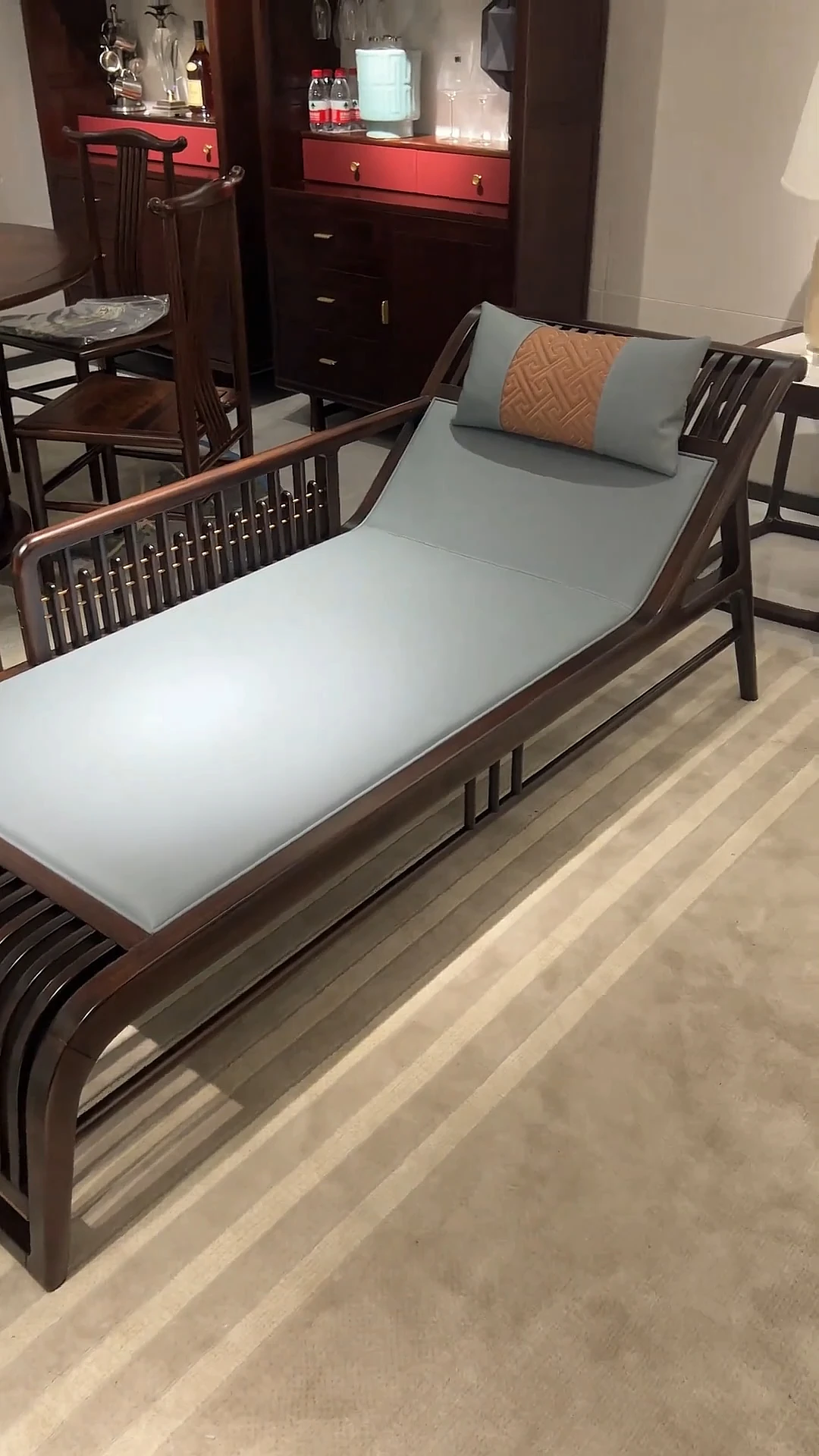 新中式ウッドウィンター・クイーンチェア モダンシンプルな禅の雰囲気 機能的な無垢材のリラックスチェア リビング・ベッドルーム・バルコニーに最適な優雅な貴妃榻!