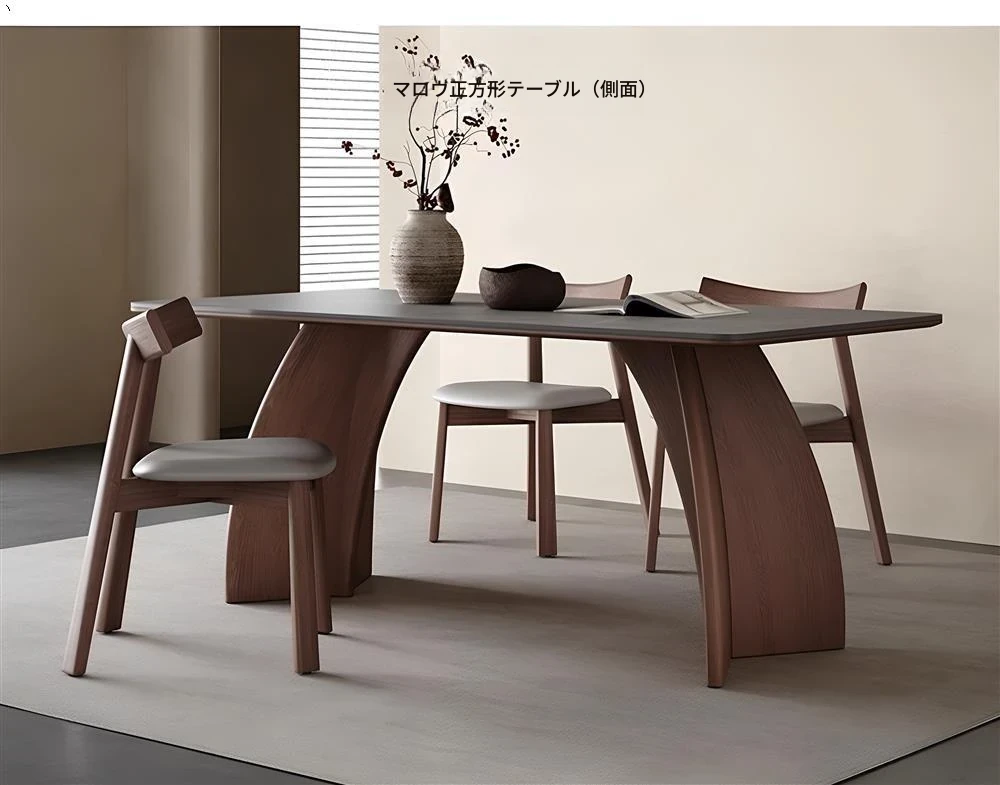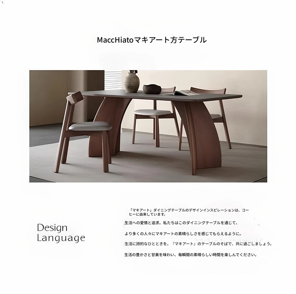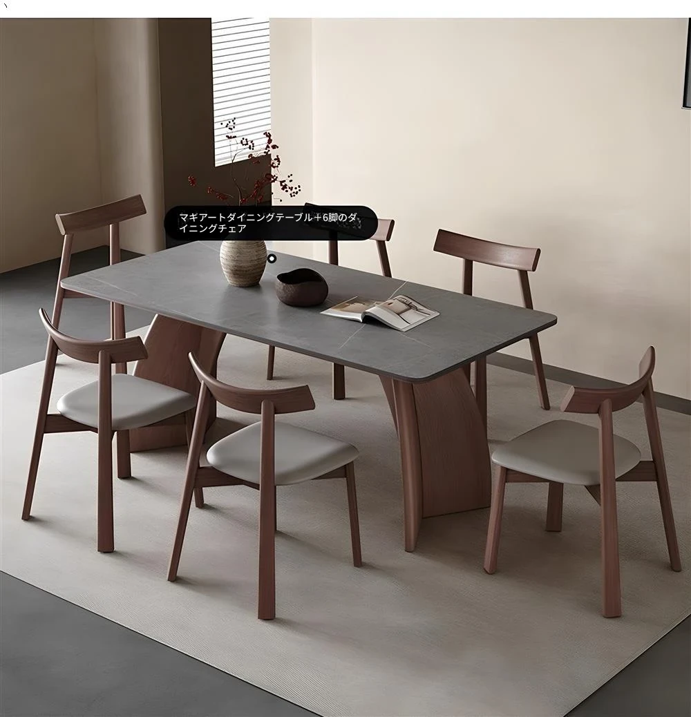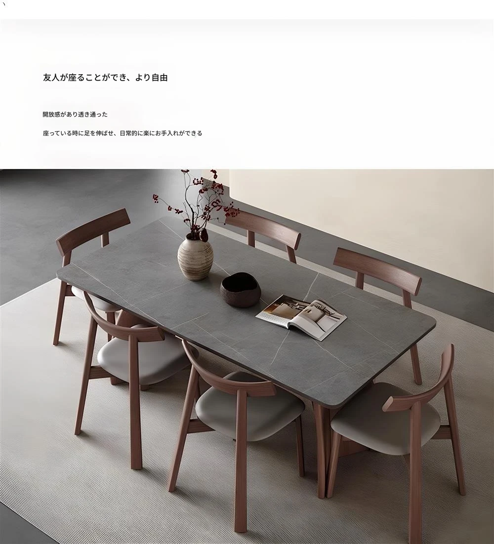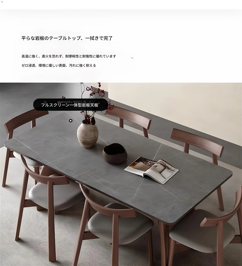 モダンシンプルな無垢材のロック板ダイニングテーブル - ウォールナット色、家庭用イタリアンミニマルデザイン、グレーの長方形ロック板テーブル。洗練されたスタイルで、食事のひとときをより特別に演出します!