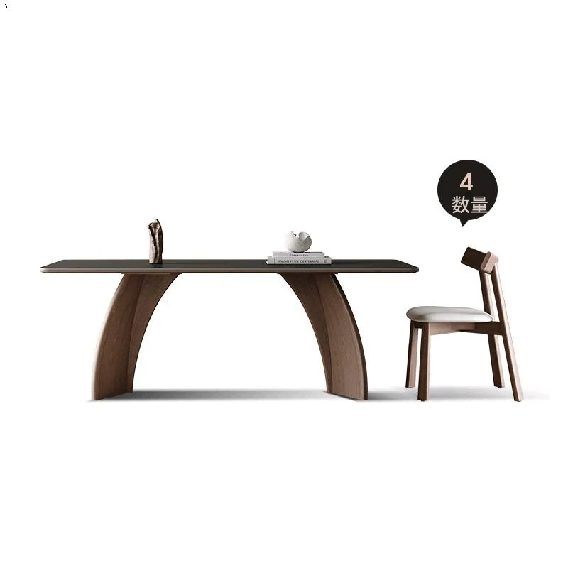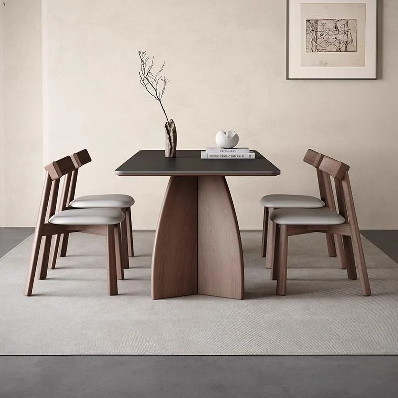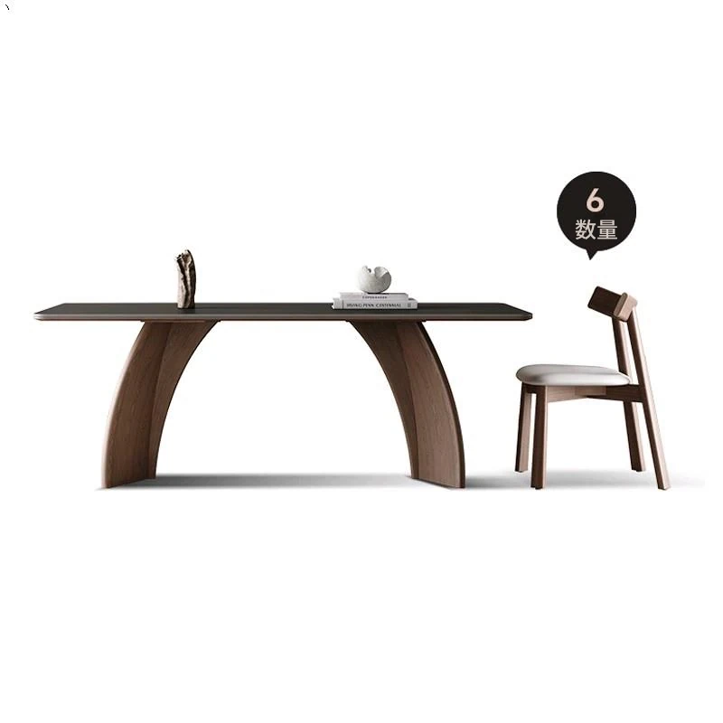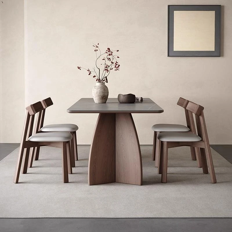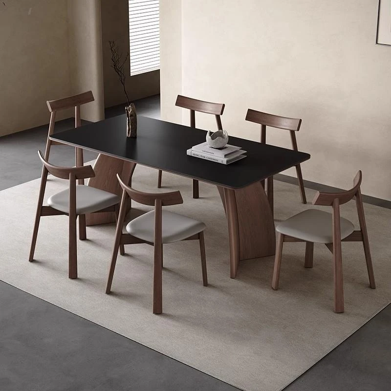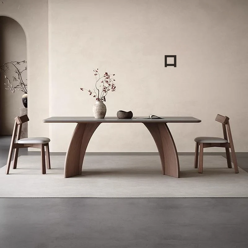 モダンシンプルな無垢材のロック板ダイニングテーブル - ウォールナット色、家庭用イタリアンミニマルデザイン、グレーの長方形ロック板テーブル。洗練されたスタイルで、食事のひとときをより特別に演出します!