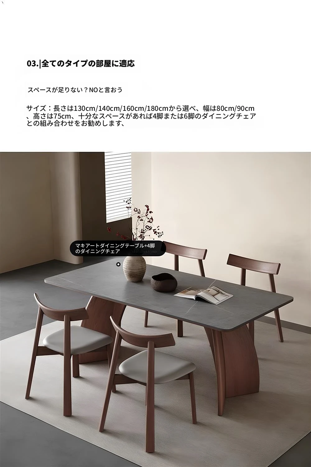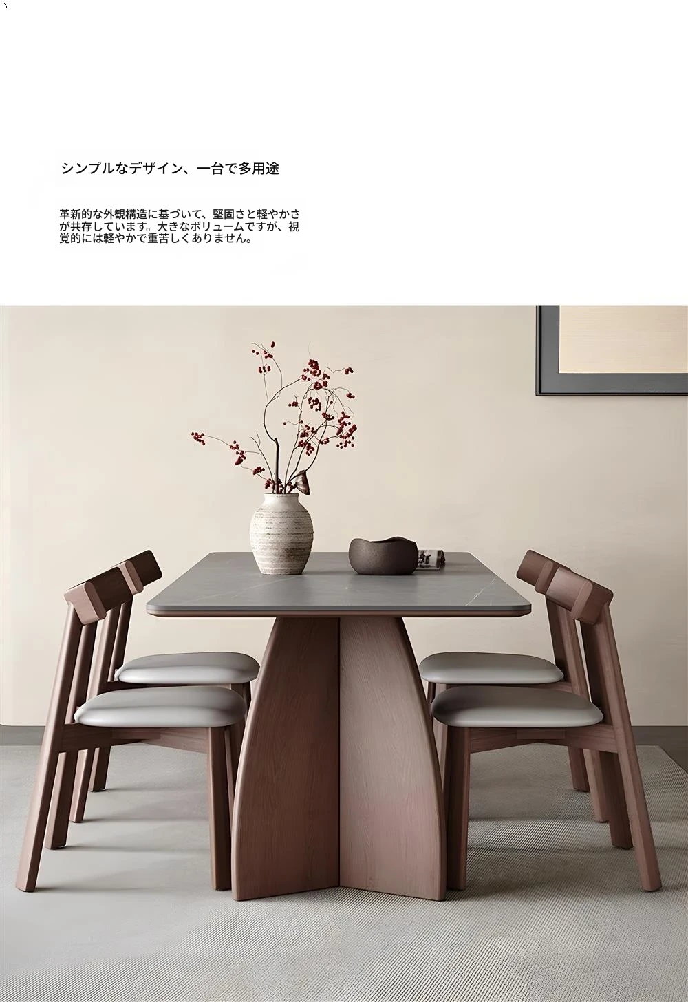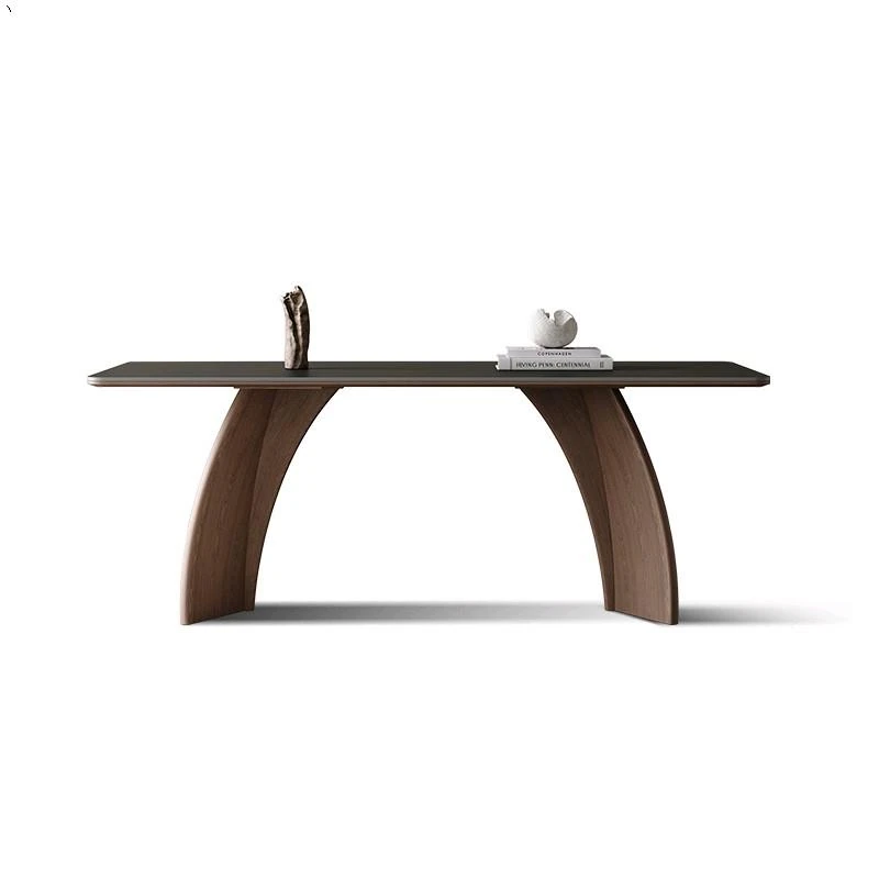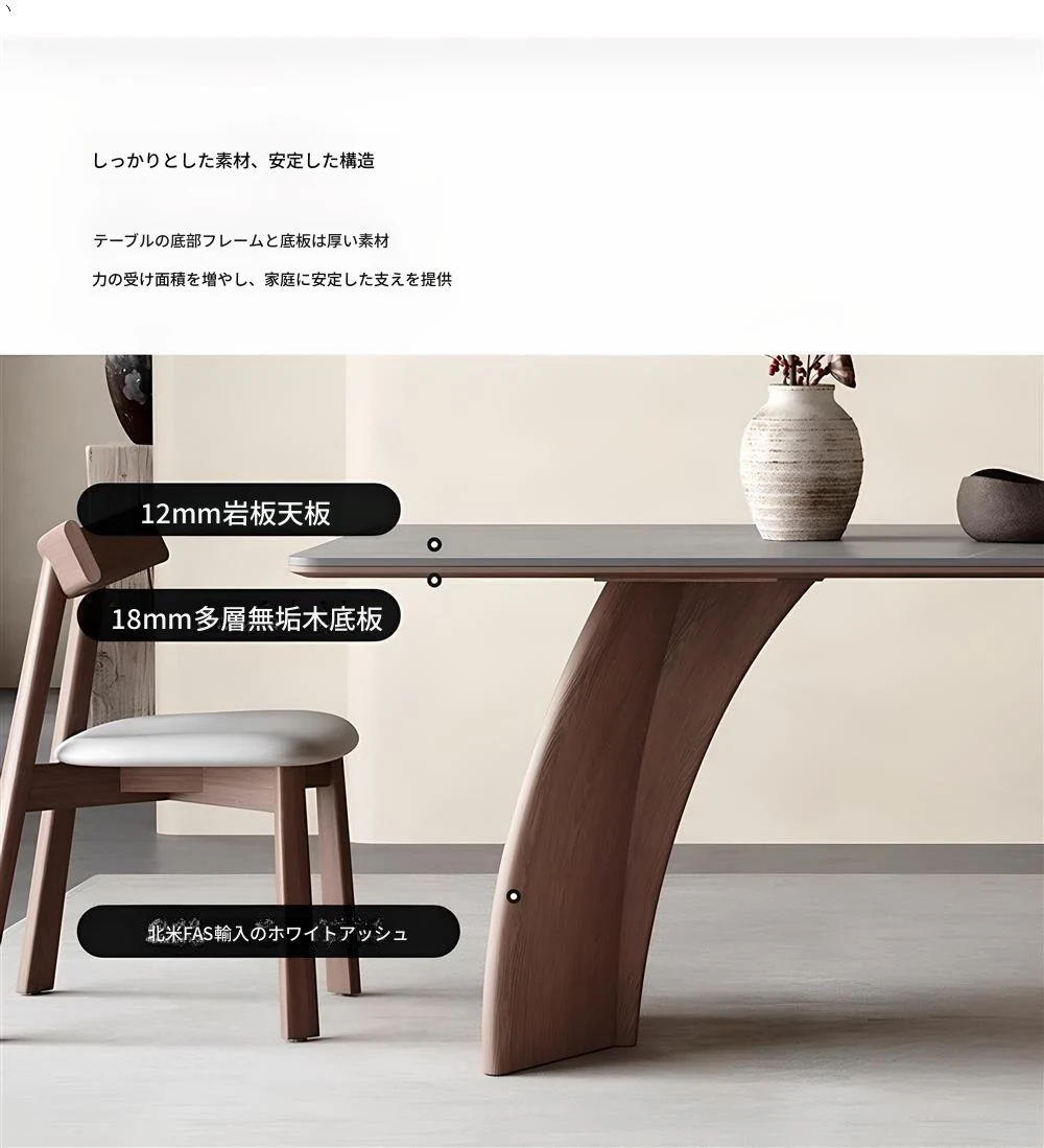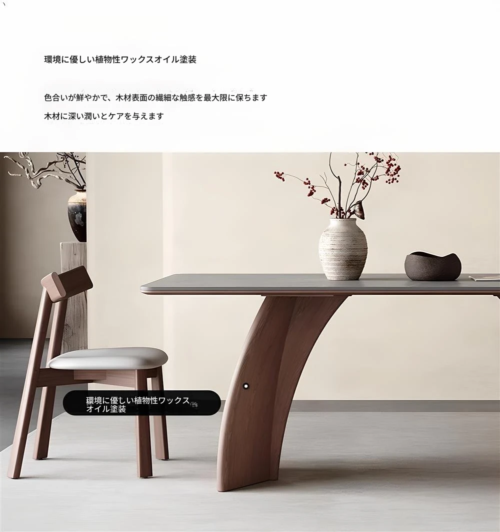 モダンシンプルな無垢材のロック板ダイニングテーブル - ウォールナット色、家庭用イタリアンミニマルデザイン、グレーの長方形ロック板テーブル。洗練されたスタイルで、食事のひとときをより特別に演出します!
