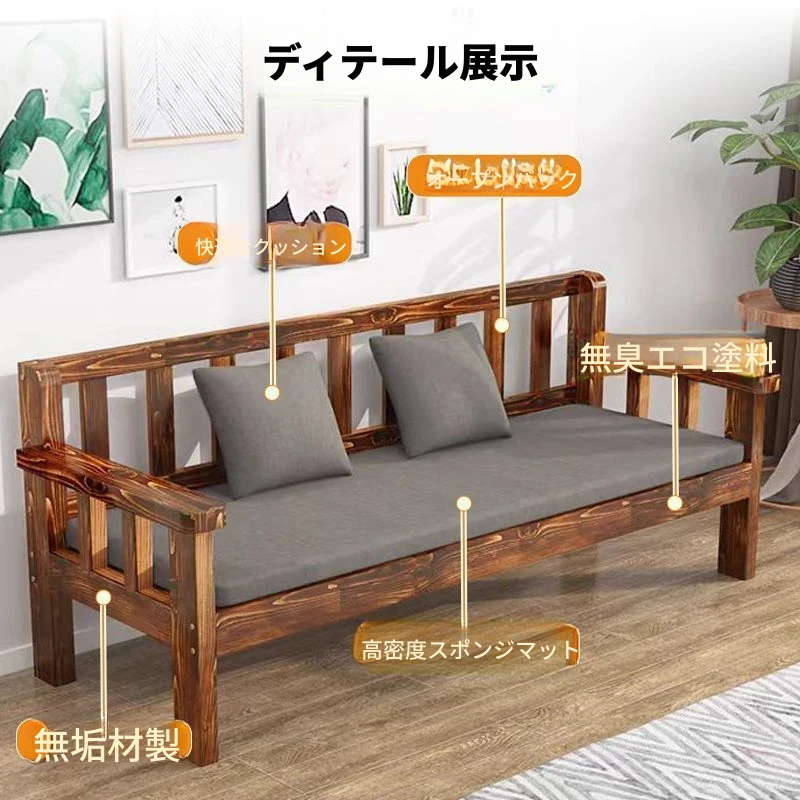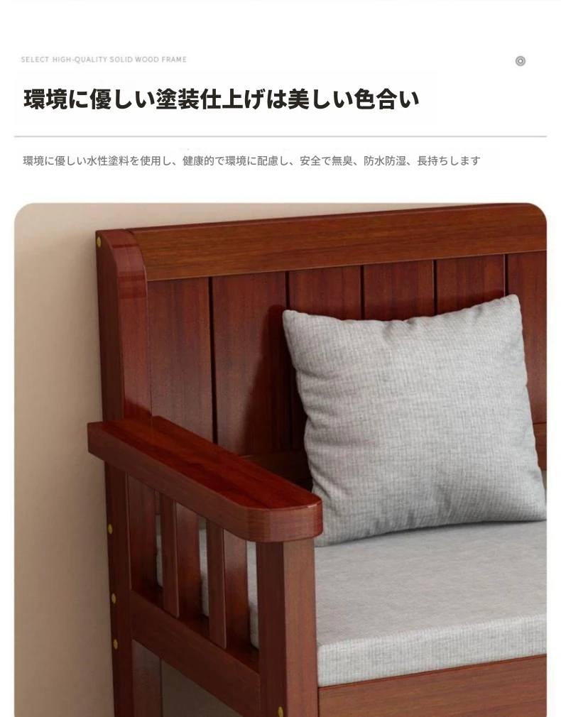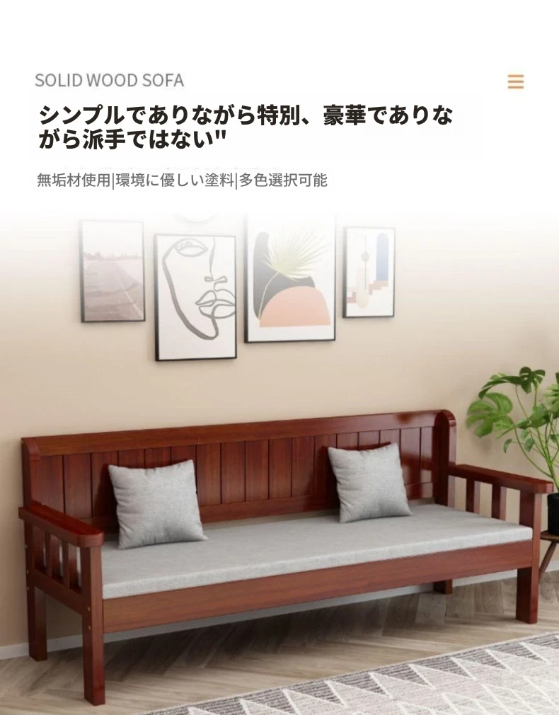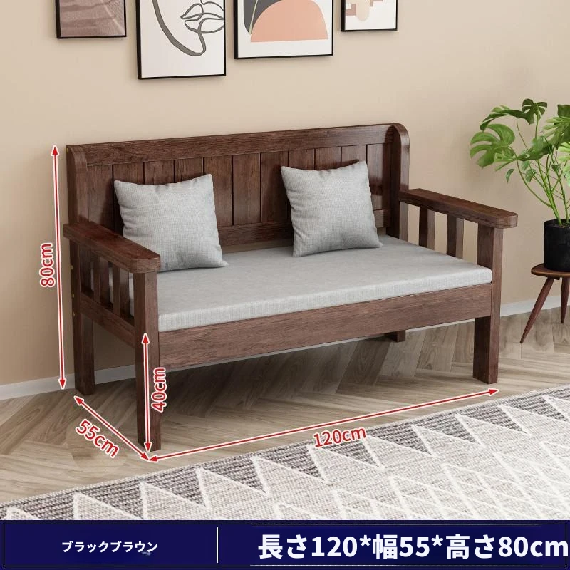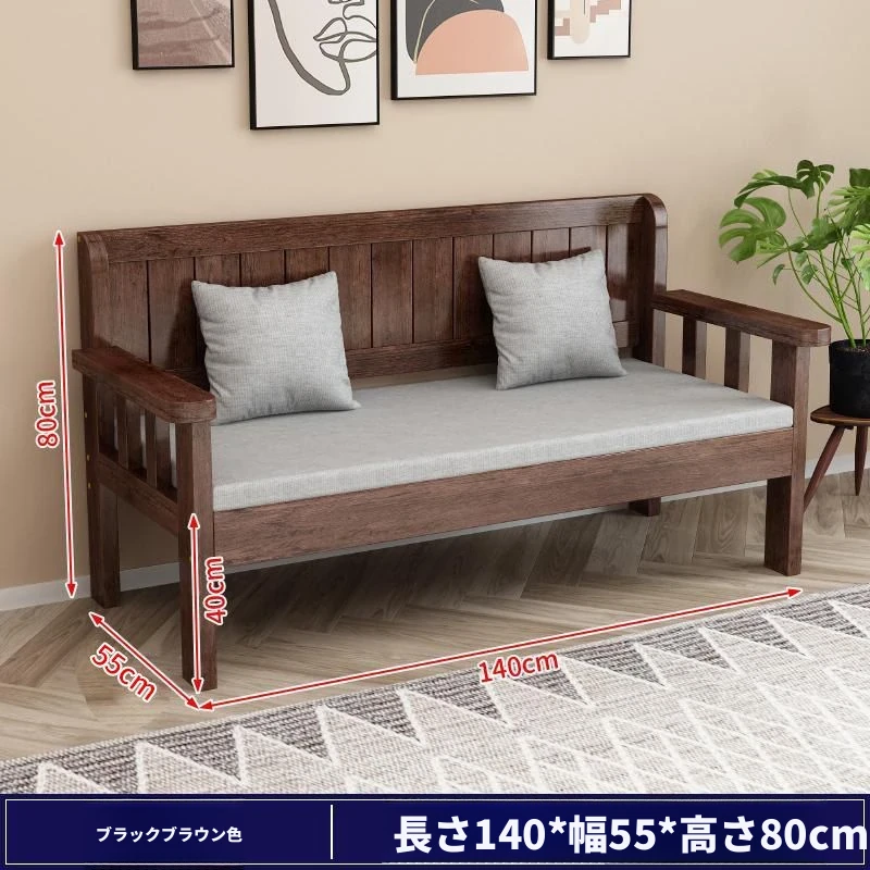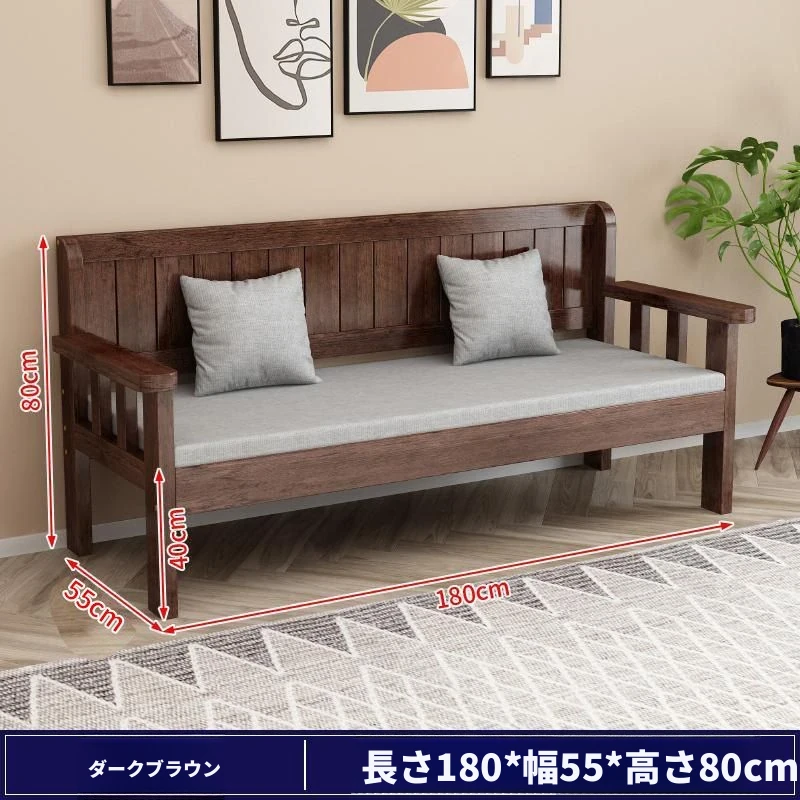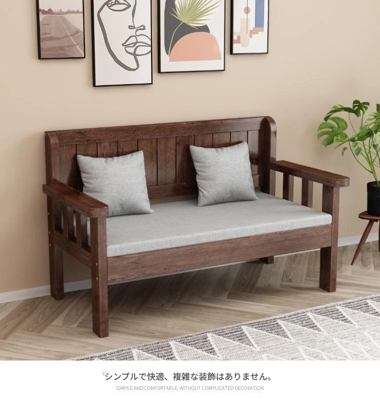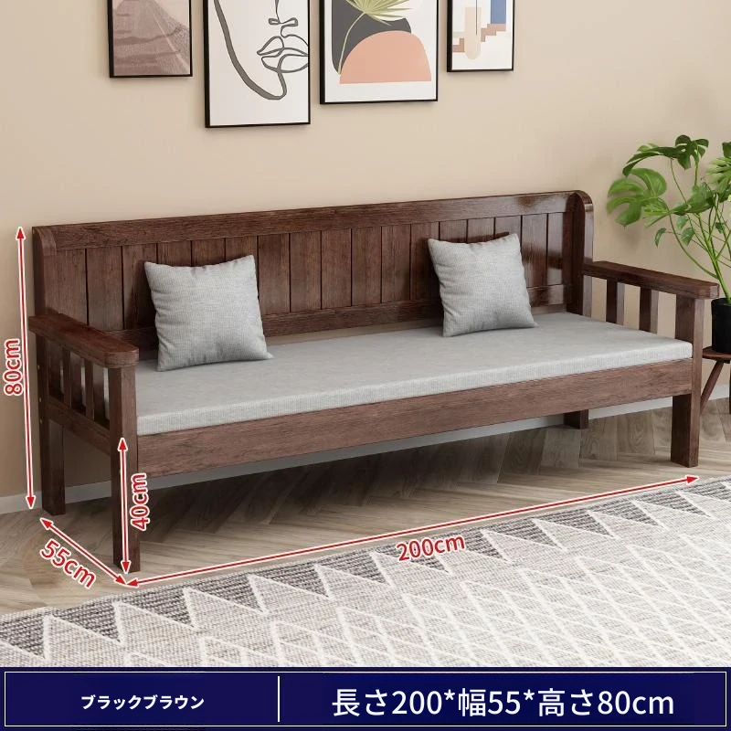 新中式デザインの無垢材ソファセット - シンプルでモダンなリビングに最適!3人掛け&バルコニー用の2人掛けロングベンチ、コンパクトな小型住宅にぴったり。快適な背もたれ付きで、くつろぎのひとときをお届けします。