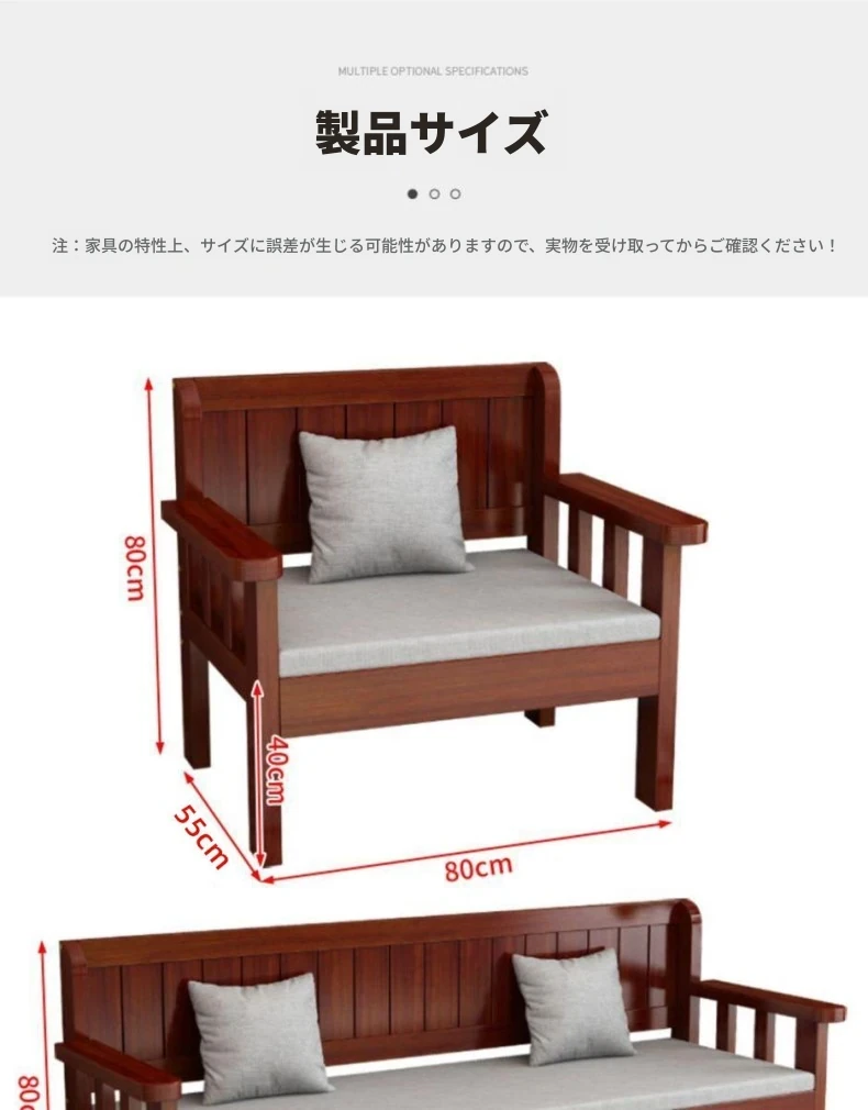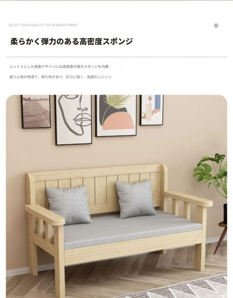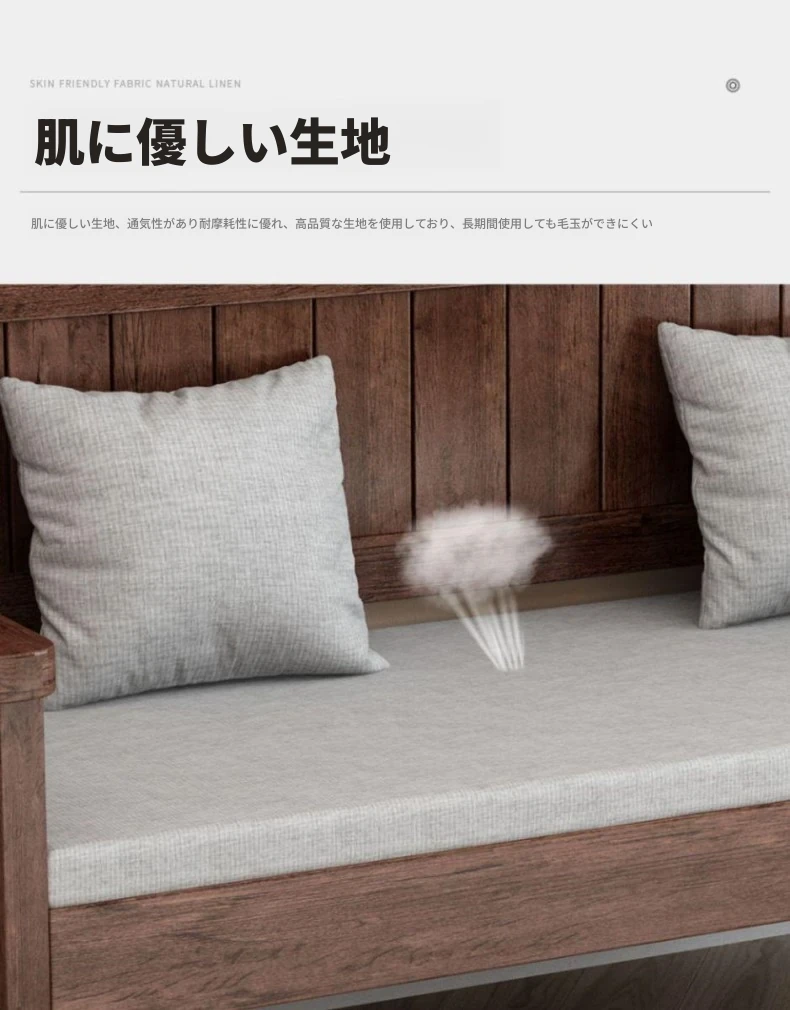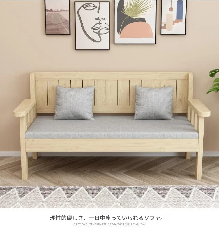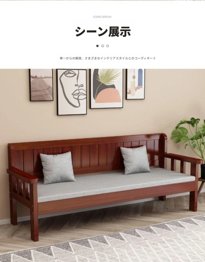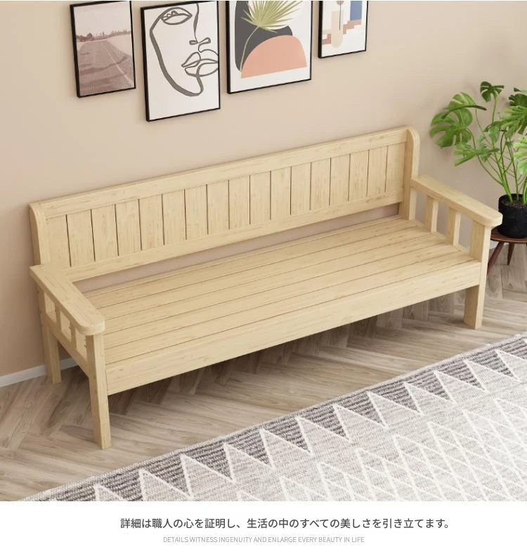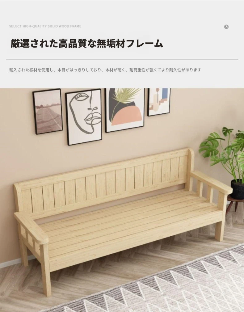 新中式デザインの無垢材ソファセット - シンプルでモダンなリビングに最適!3人掛け&バルコニー用の2人掛けロングベンチ、コンパクトな小型住宅にぴったり。快適な背もたれ付きで、くつろぎのひとときをお届けします。