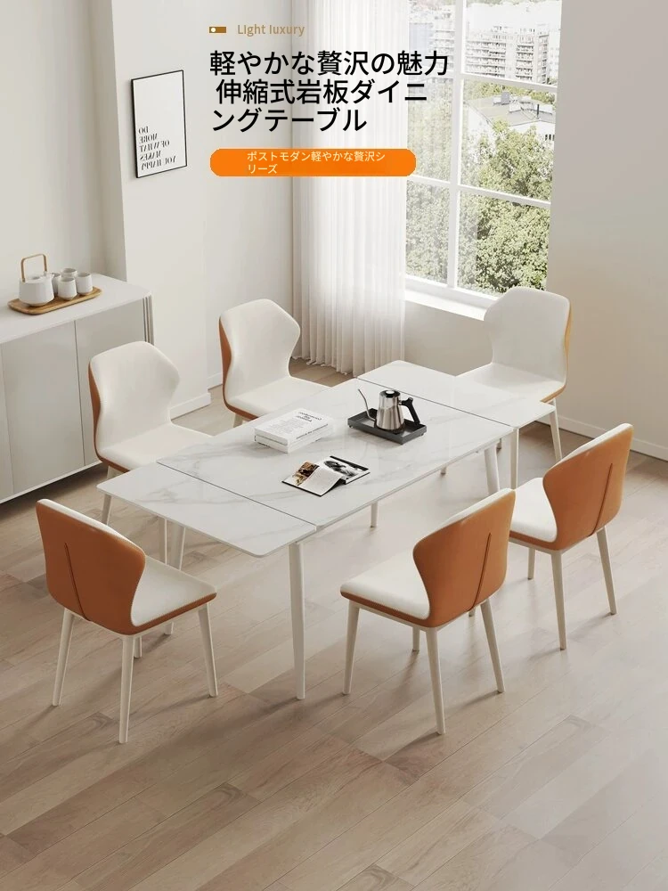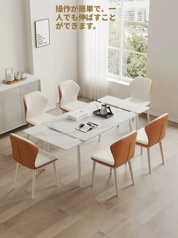 伸縮式ダイニングテーブル【1mから1.4mのテーブル+6脚】イーノブランドの岩板