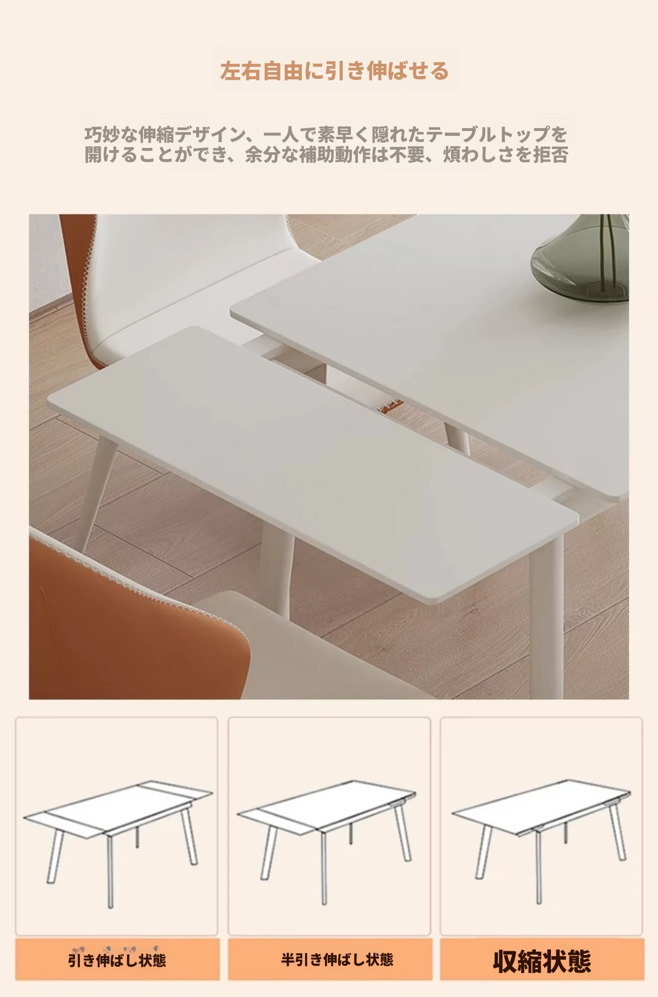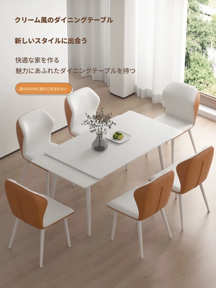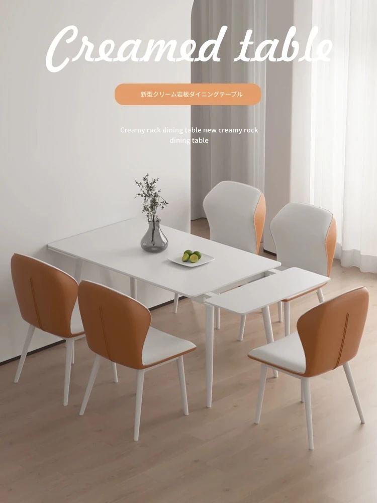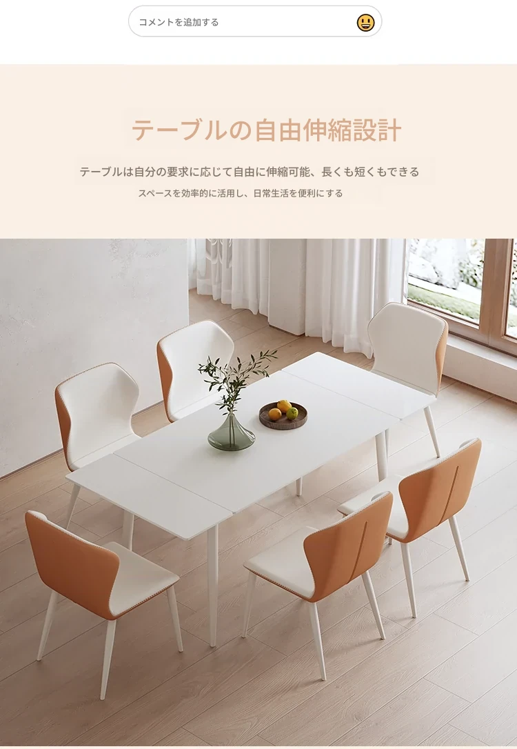 北欧風モダンシンプルな伸縮折りたたみダイニングテーブル&チェアセット - 小さなスペースに最適な長方形クリームカラーの食卓で、家族や友人との特別な時間を演出!
