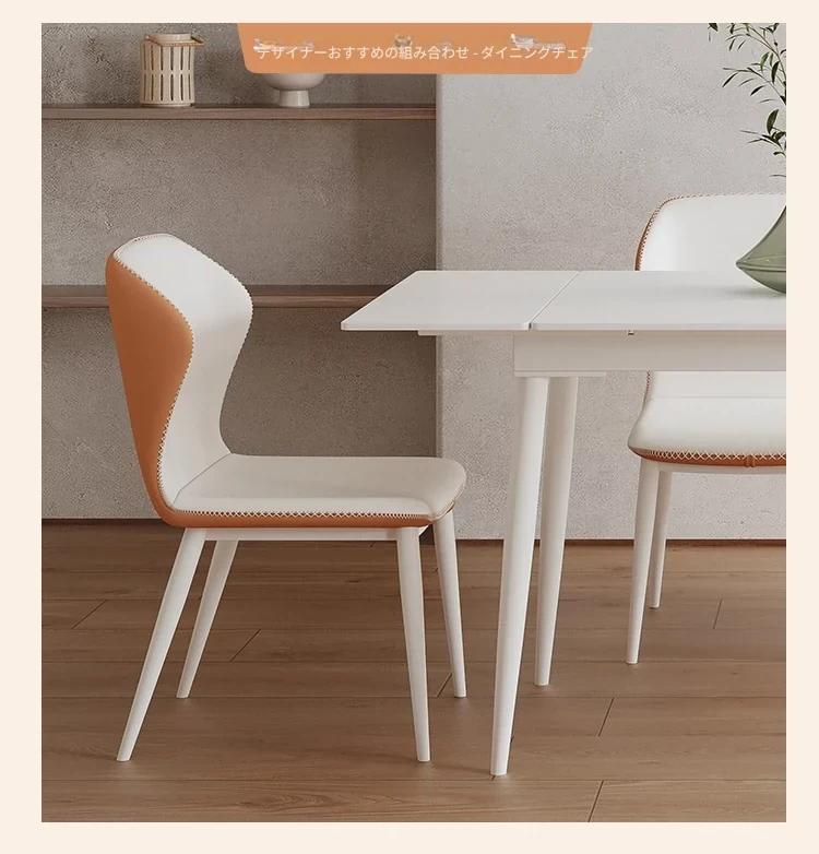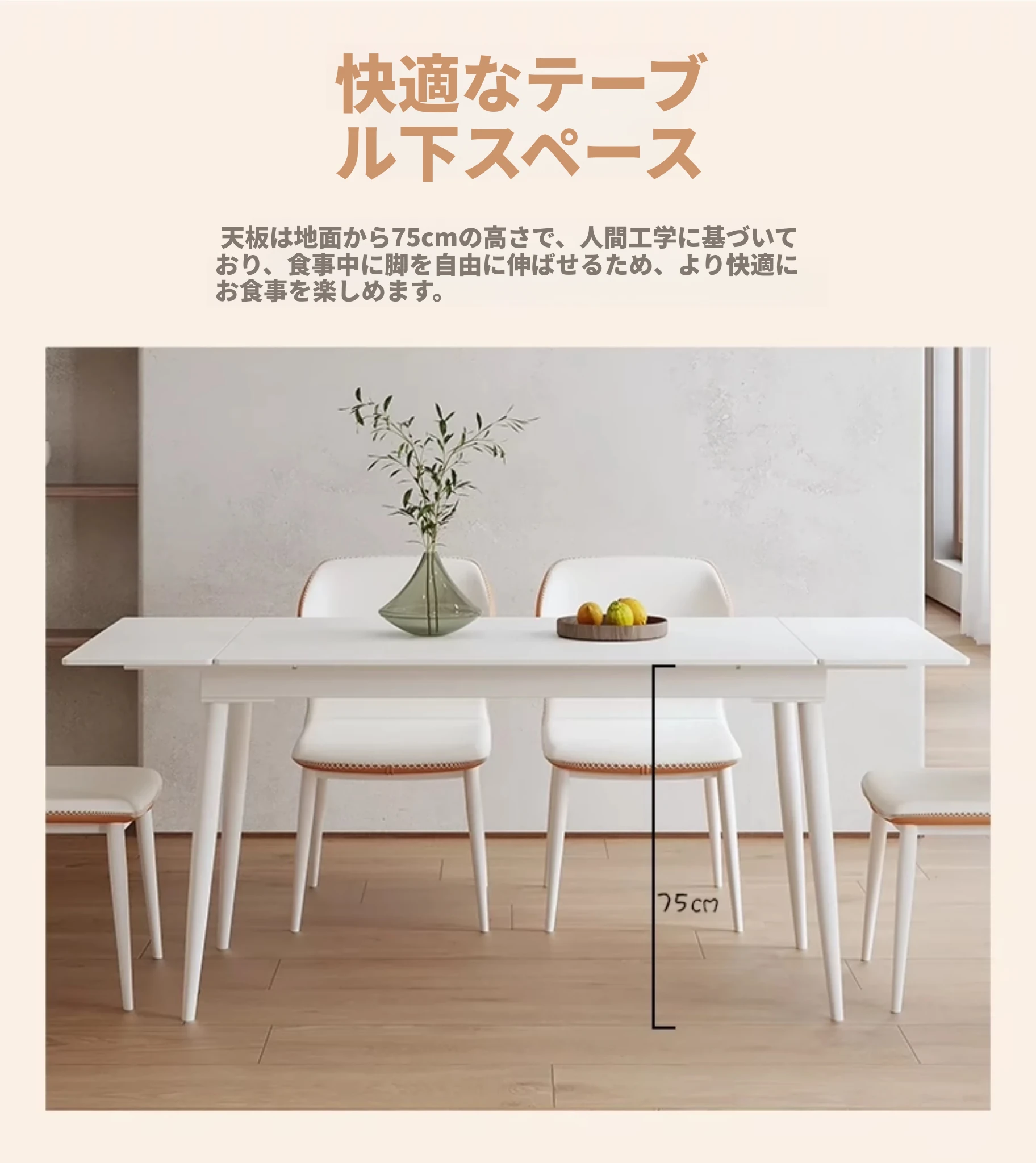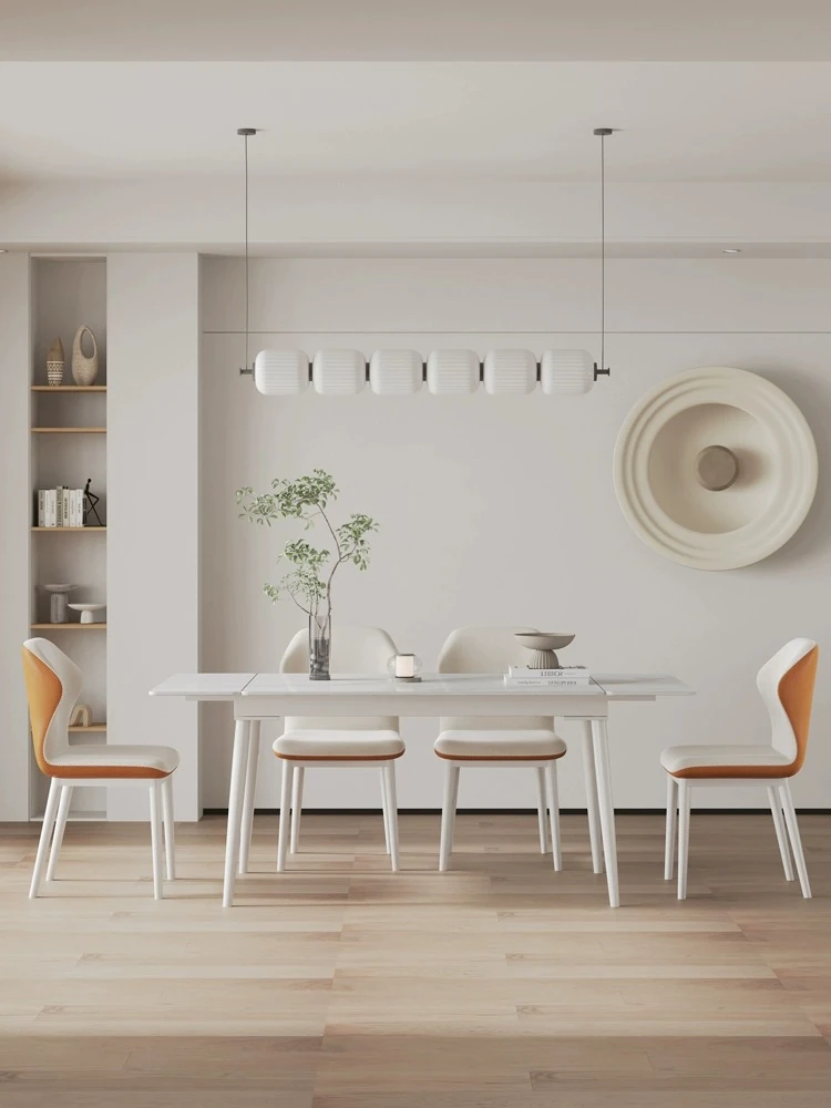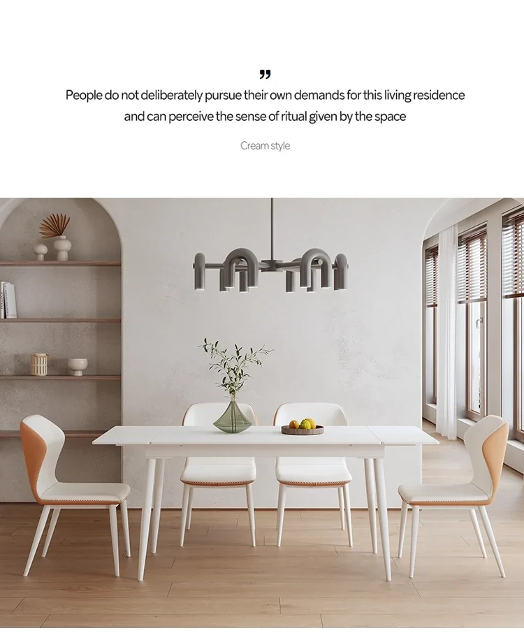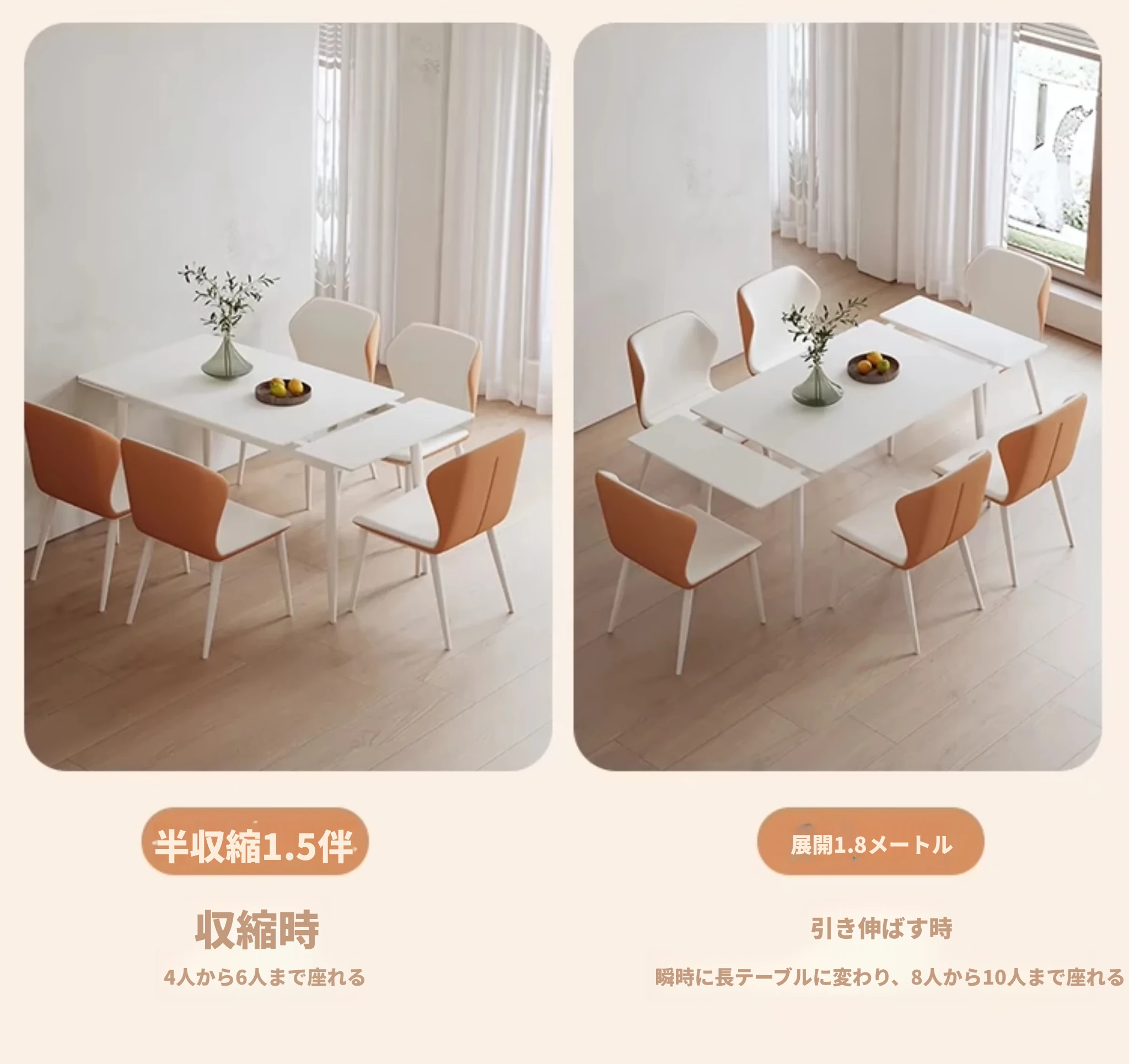 北欧風モダンシンプルな伸縮折りたたみダイニングテーブル&チェアセット - 小さなスペースに最適な長方形クリームカラーの食卓で、家族や友人との特別な時間を演出!