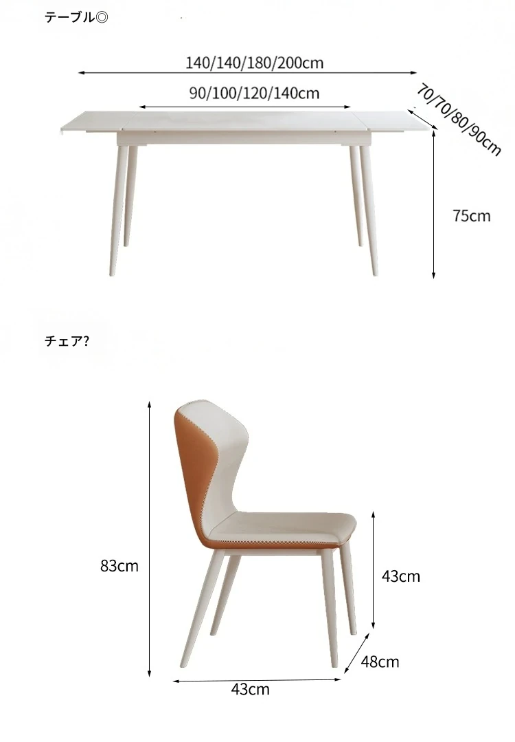伸縮式ダイニングテーブル【1.4mから2.0mのテーブル+6脚】イーノブランドの岩板