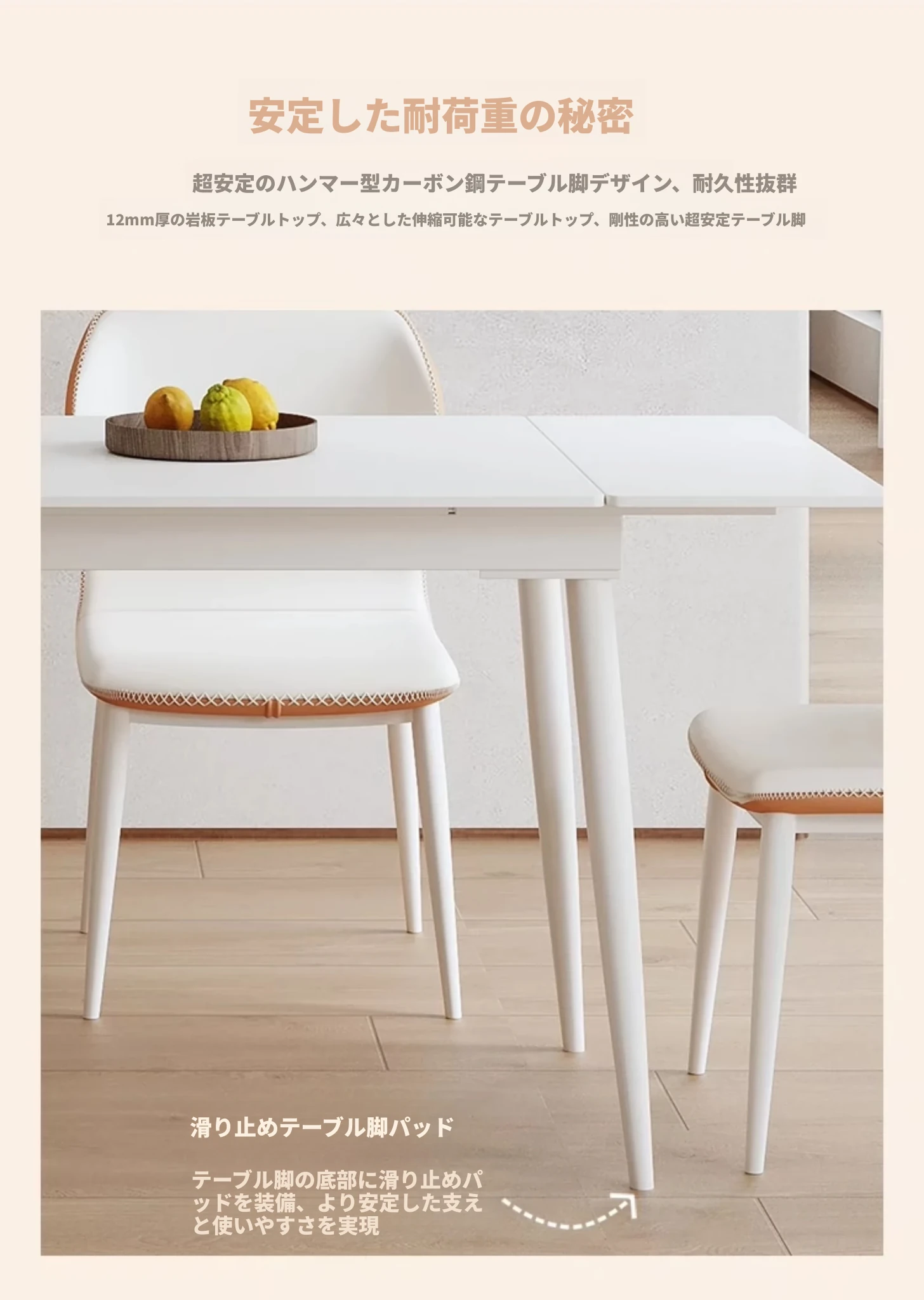 伸縮式ダイニングテーブル【1.2mから1.8mのテーブル】イーノブランドの岩板
