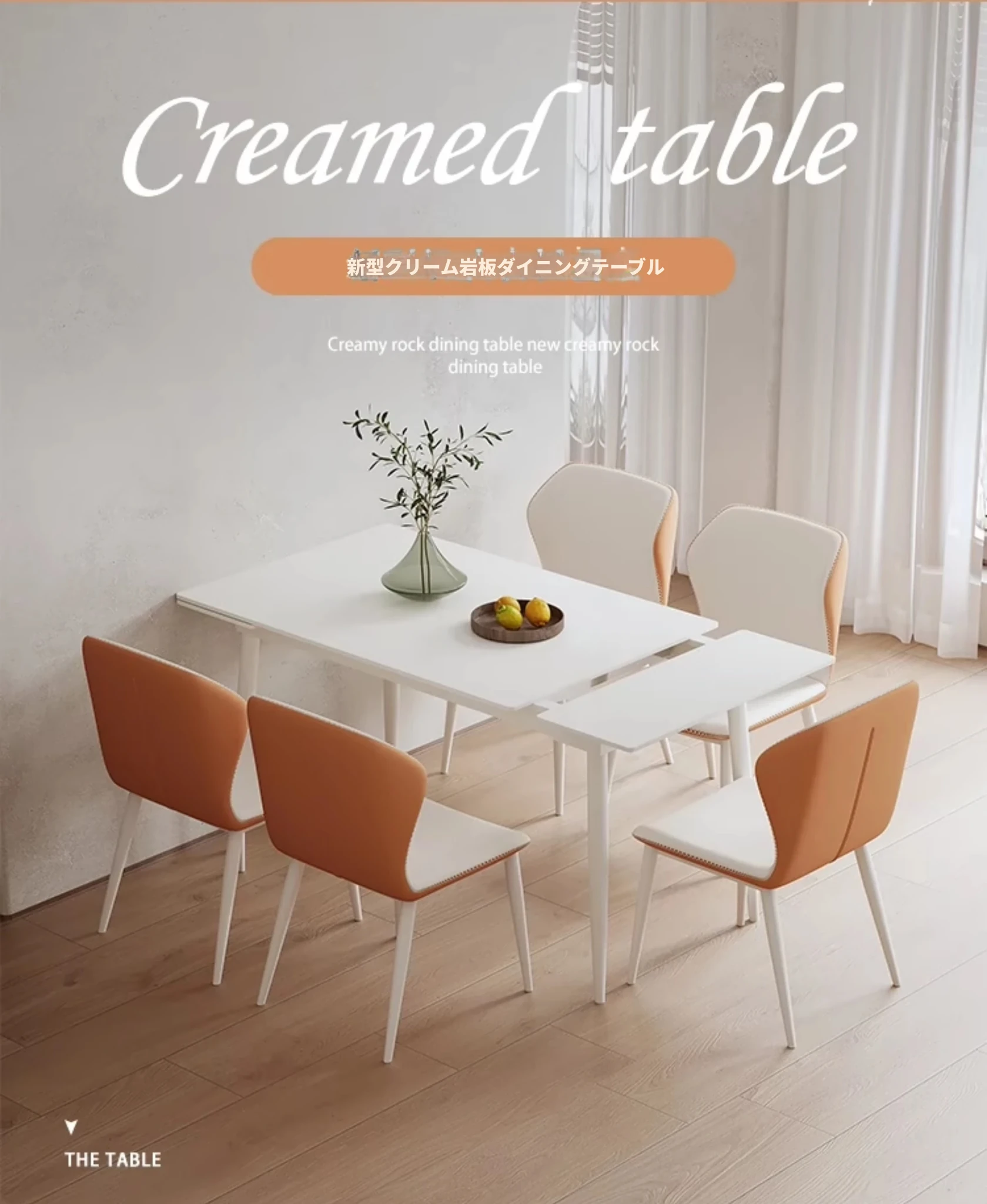 伸縮式ダイニングテーブル【1mから1.4mのテーブル+4脚】イーノブランドの岩板