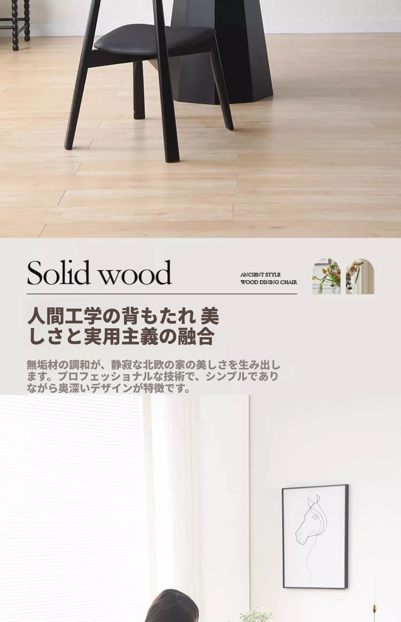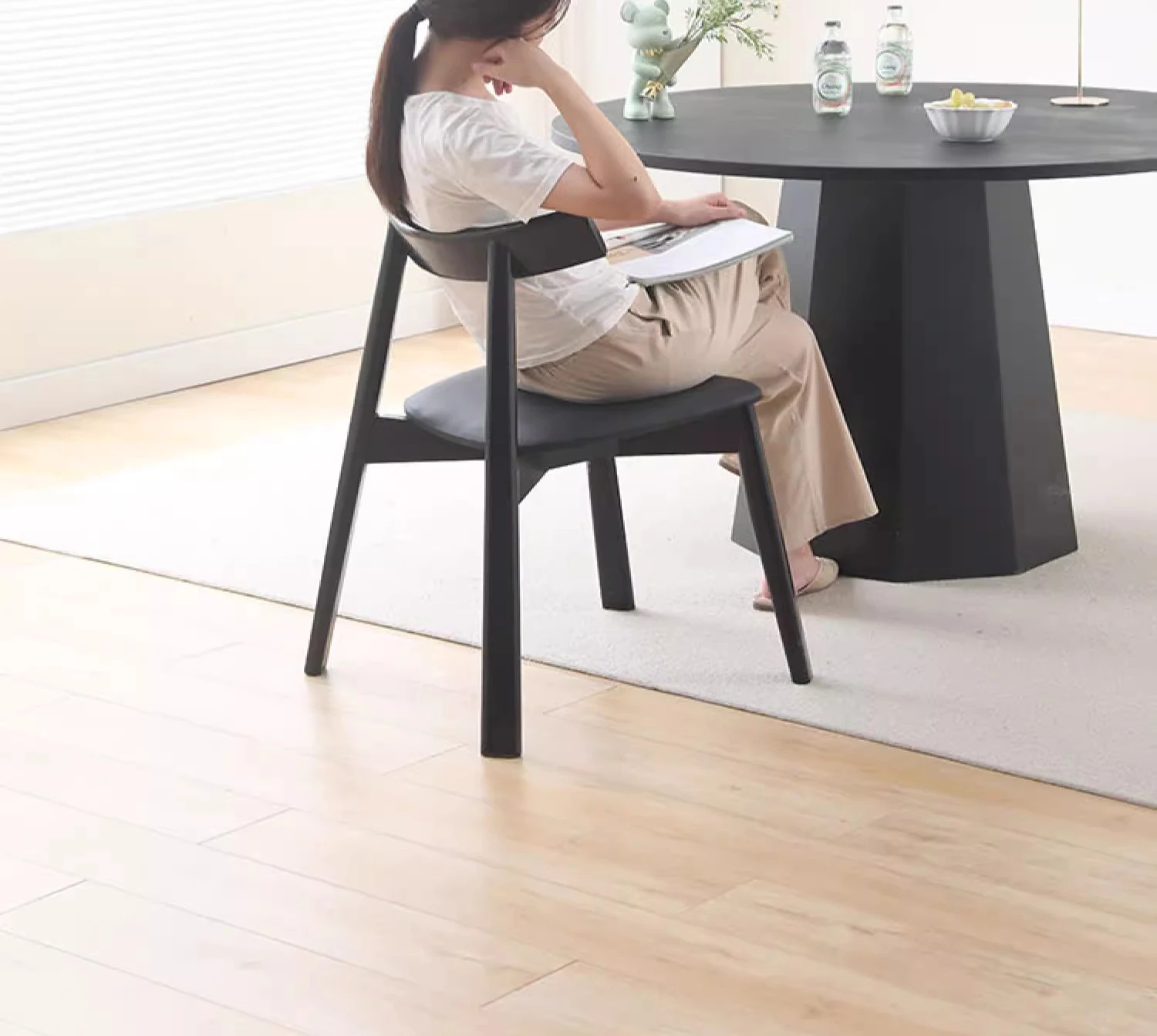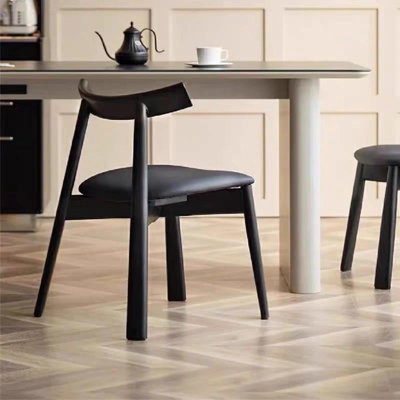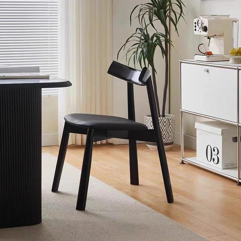 北欧スタイルの純パイン材ブラックダイニングチェア - モダンでシンプルなデザイン、軽やかなラグジュアリー感!リビングやダイニングにぴったりなソフトパッケージの家用チェア。快適さとスタイルを兼ね備えた一品です。