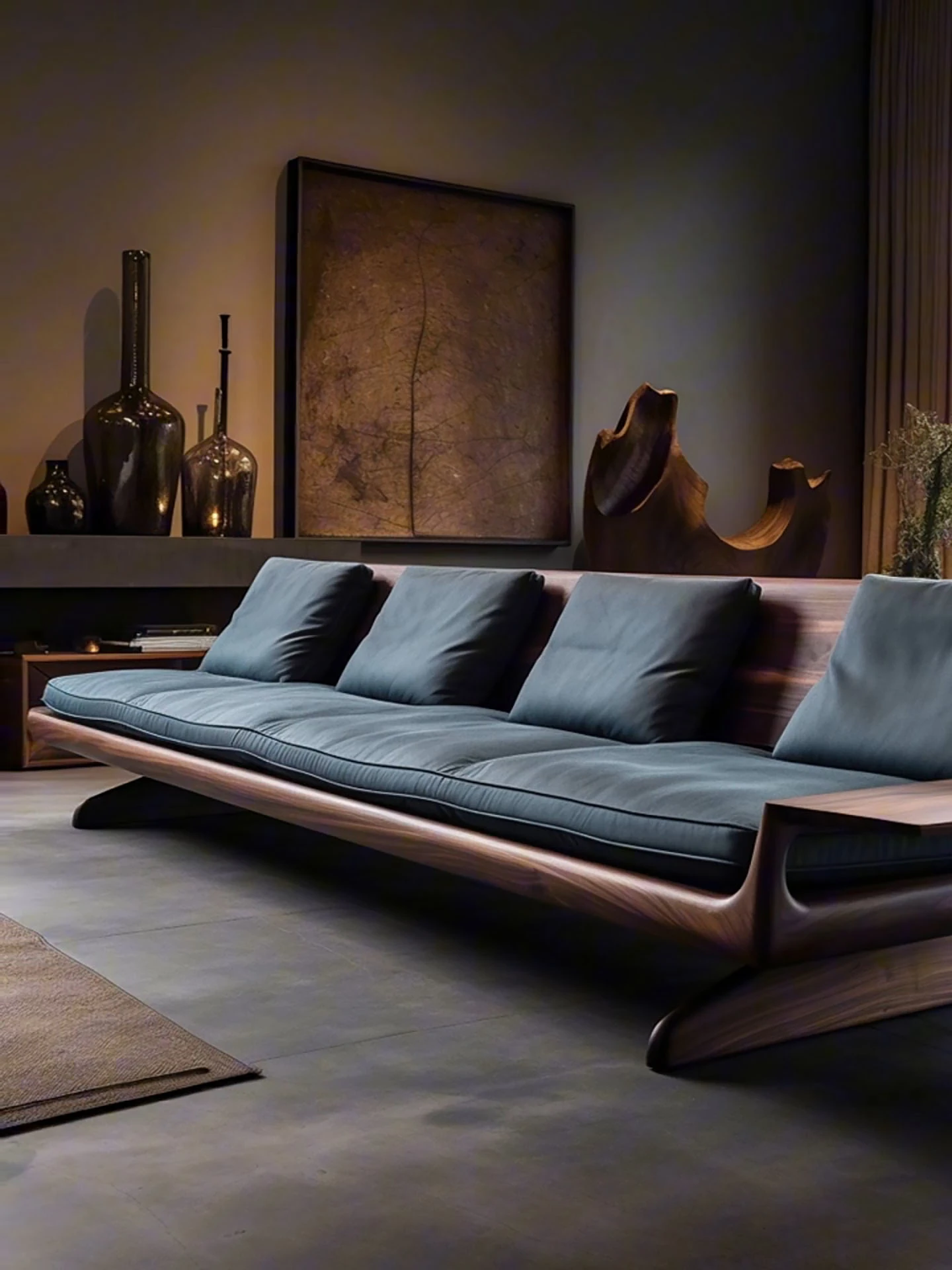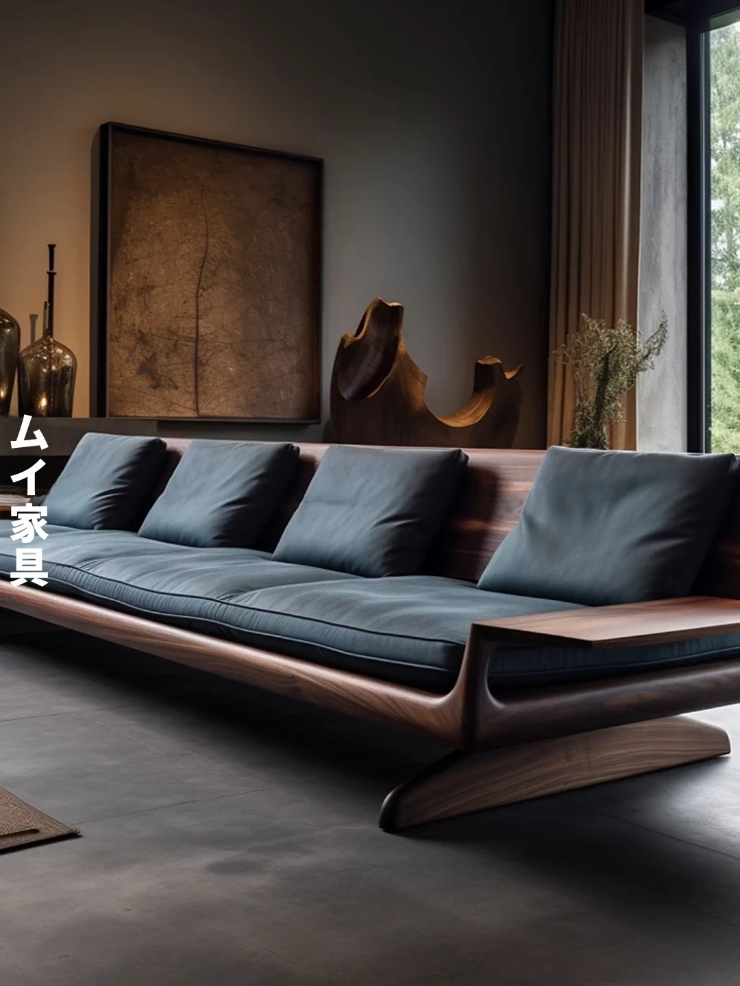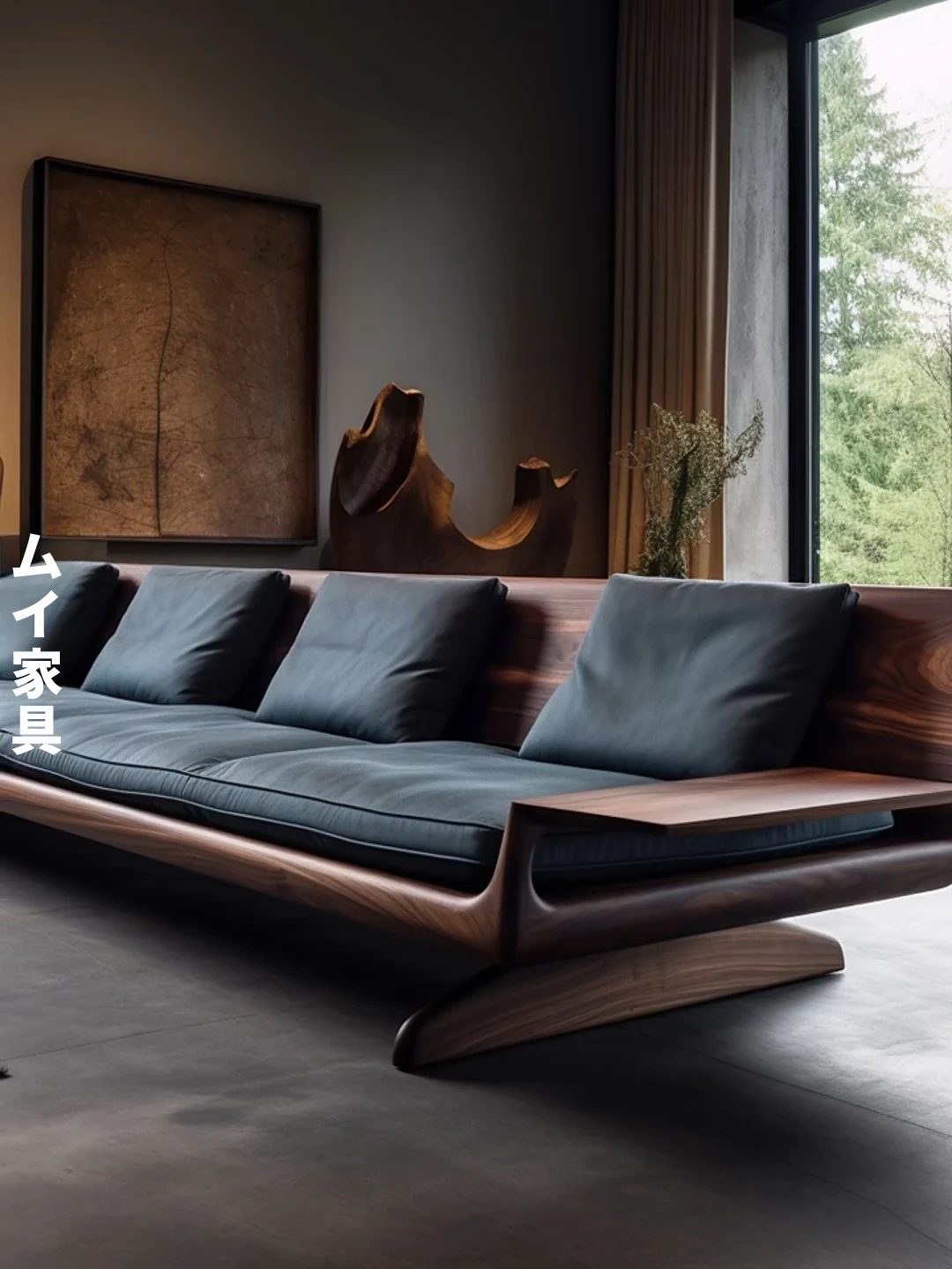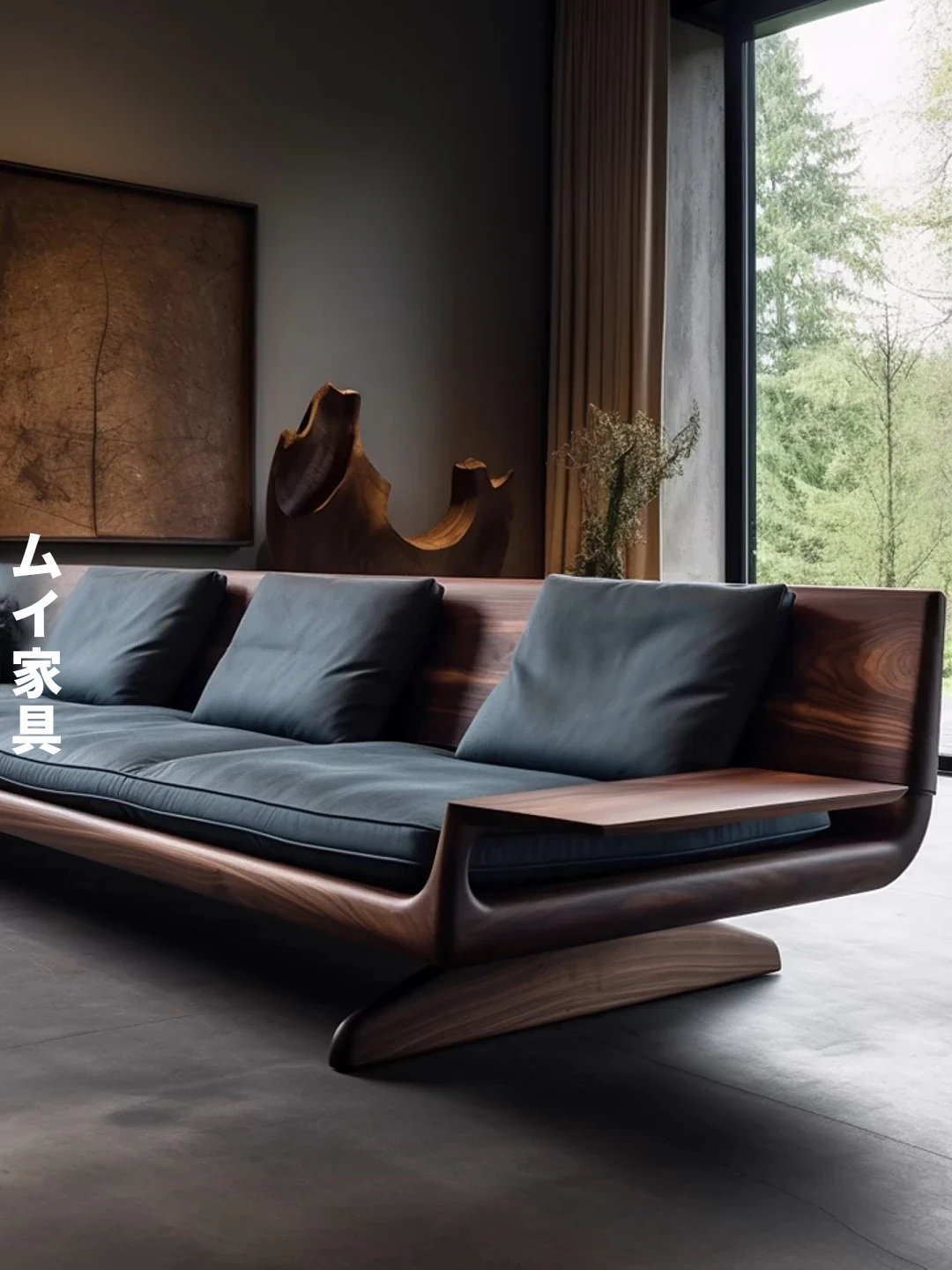 北米産ブラックウォールナットのミニマリスト布製ソファ|モダンでシンプル、ラグジュアリーなデザインの無垢材製3人掛けソファ|別荘やリビングにぴったりな洗練されたスタイル!