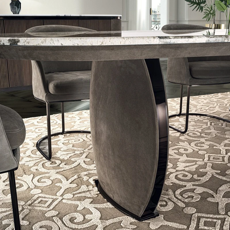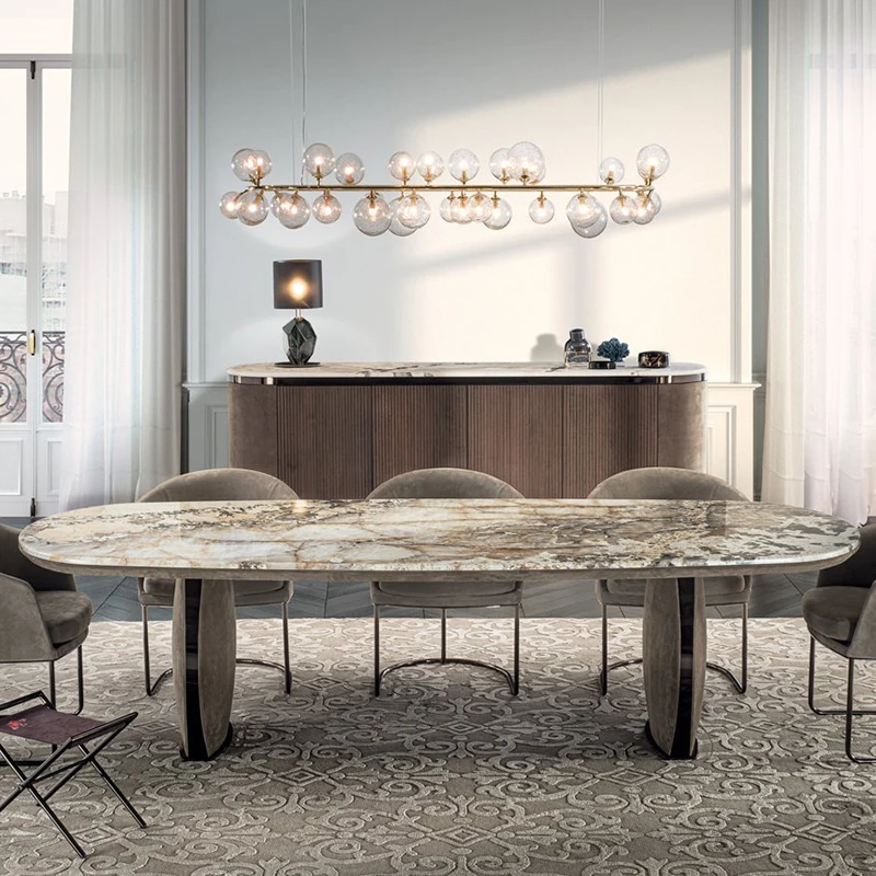 パンドラ大理石長方形ダイニングテーブル - 高級感溢れるイタリアンデザイン、洗練された家族の食卓に最適な軽奢テーブル&チェアセット!