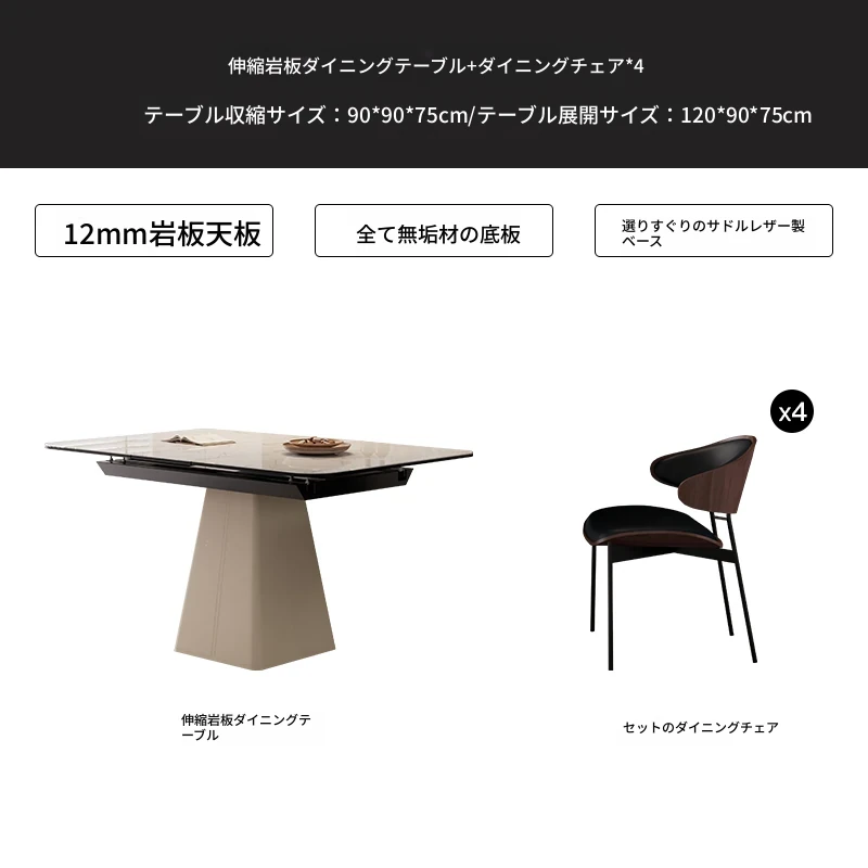 90cm伸縮110cmダイニングテーブル+4椅子(高級複合岩板)