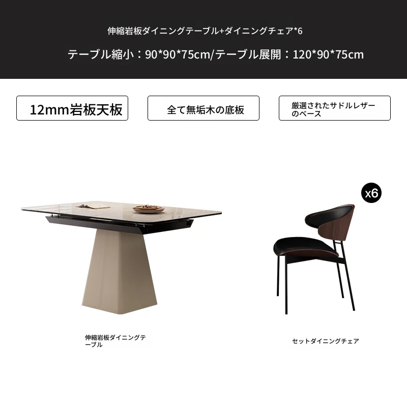 90cm伸縮110cmダイニングテーブル+6椅子(高級複合岩板)
