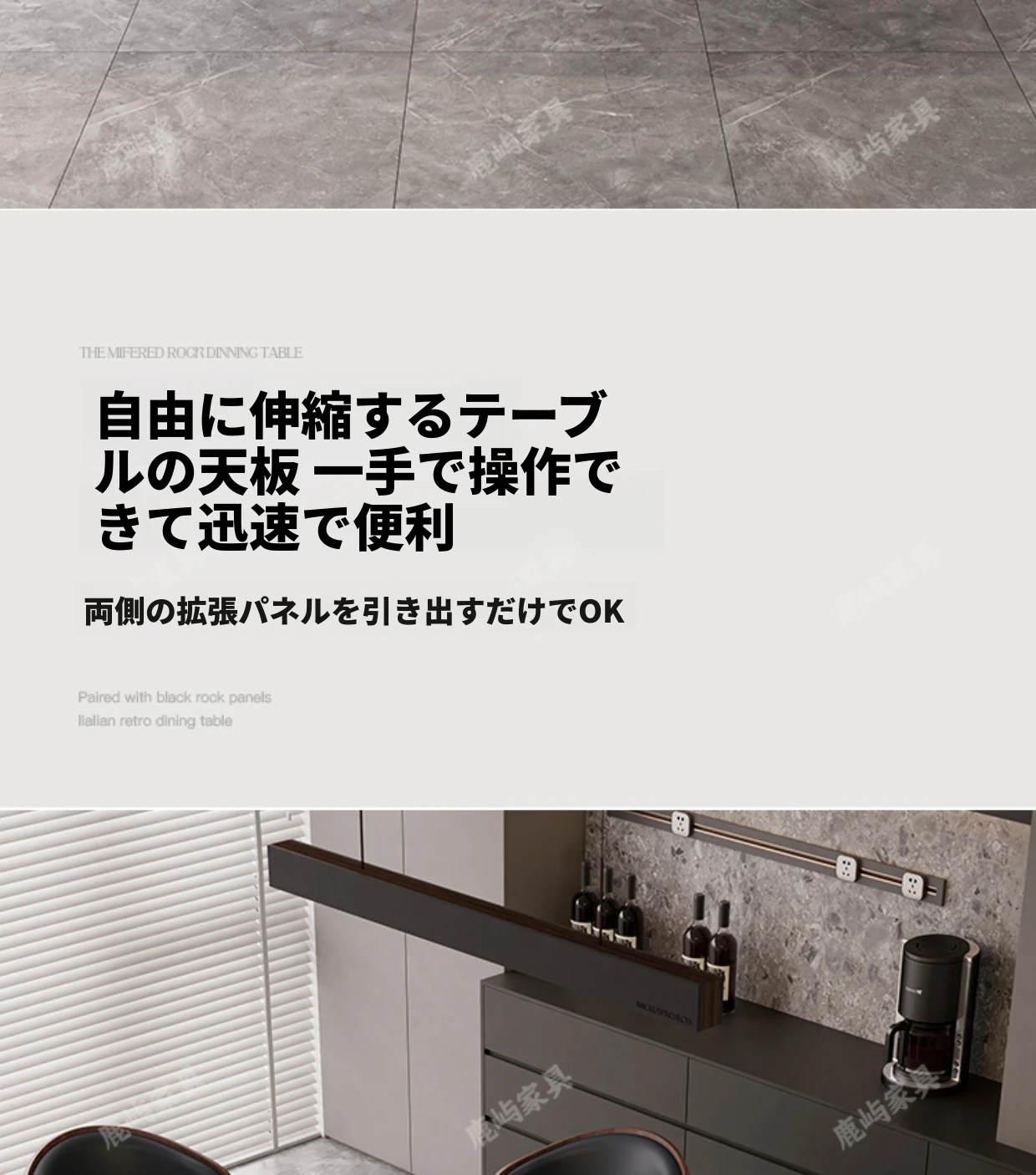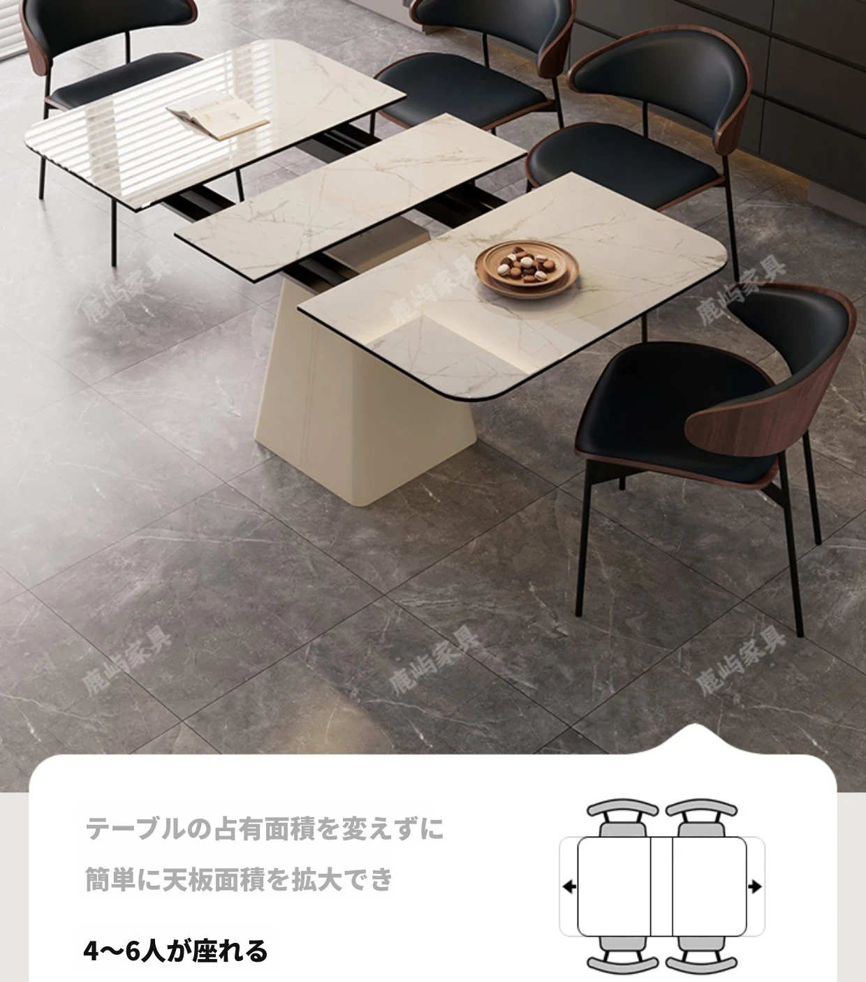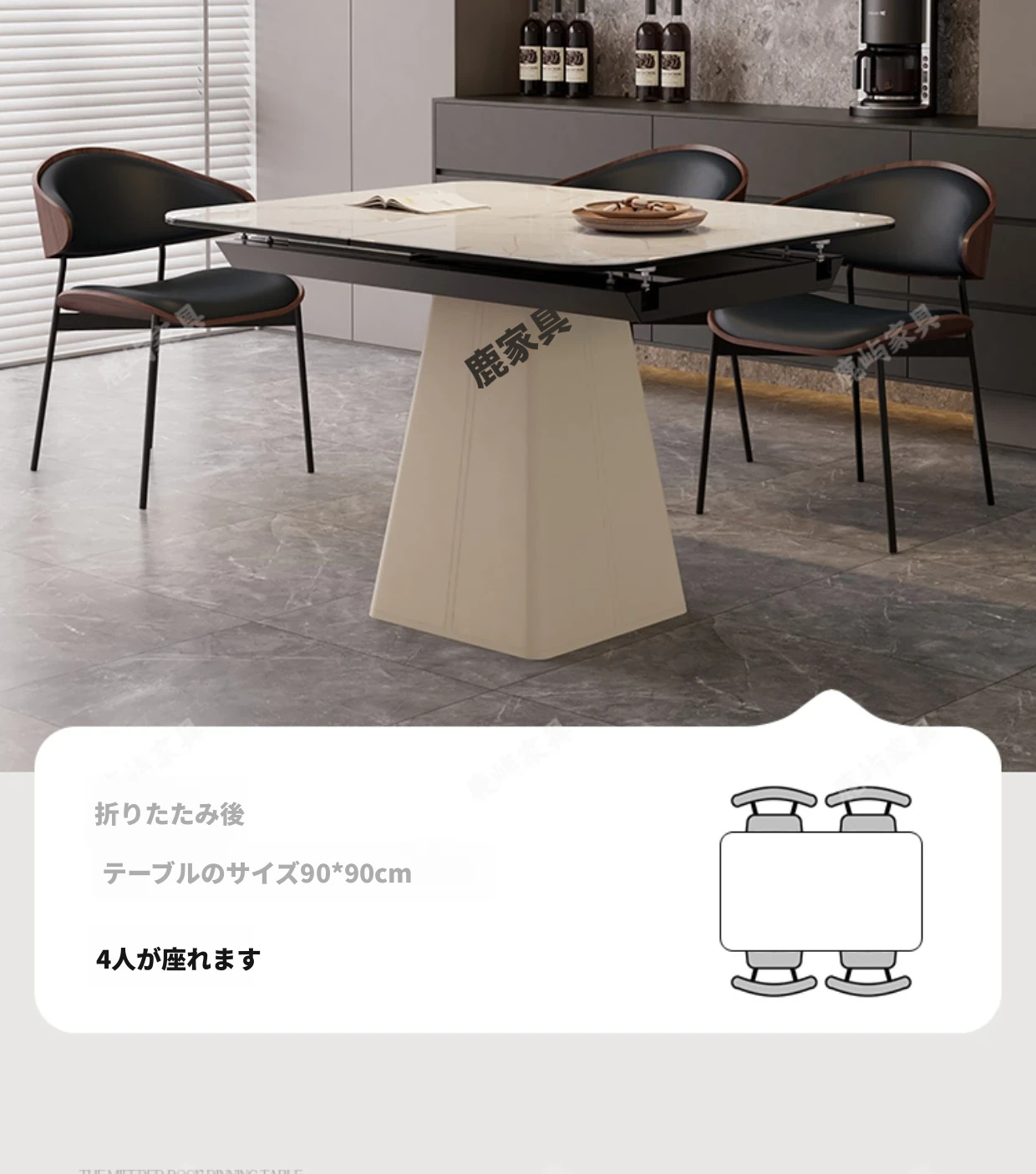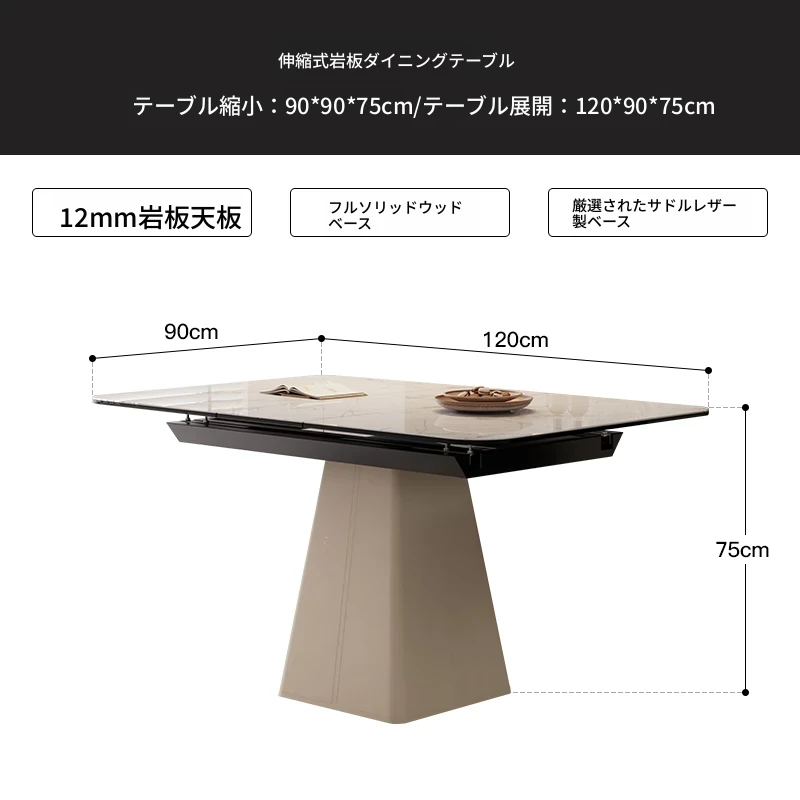 90cm伸縮110cmダイニングテーブル【輸入岩板+強化ガラス全托】