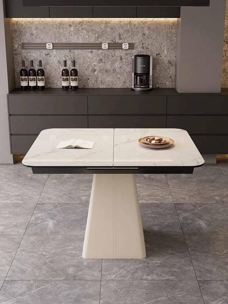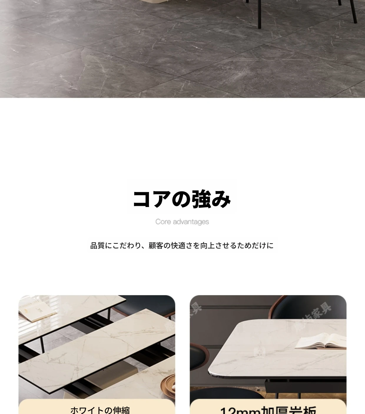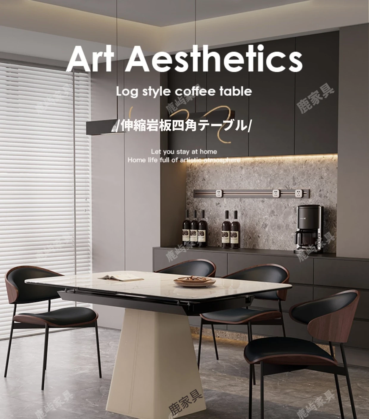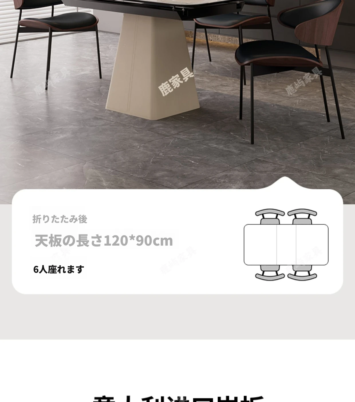 90cm伸縮110cmダイニングテーブル【輸入岩板+強化ガラス全托】