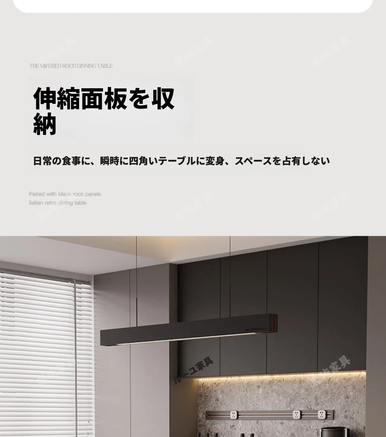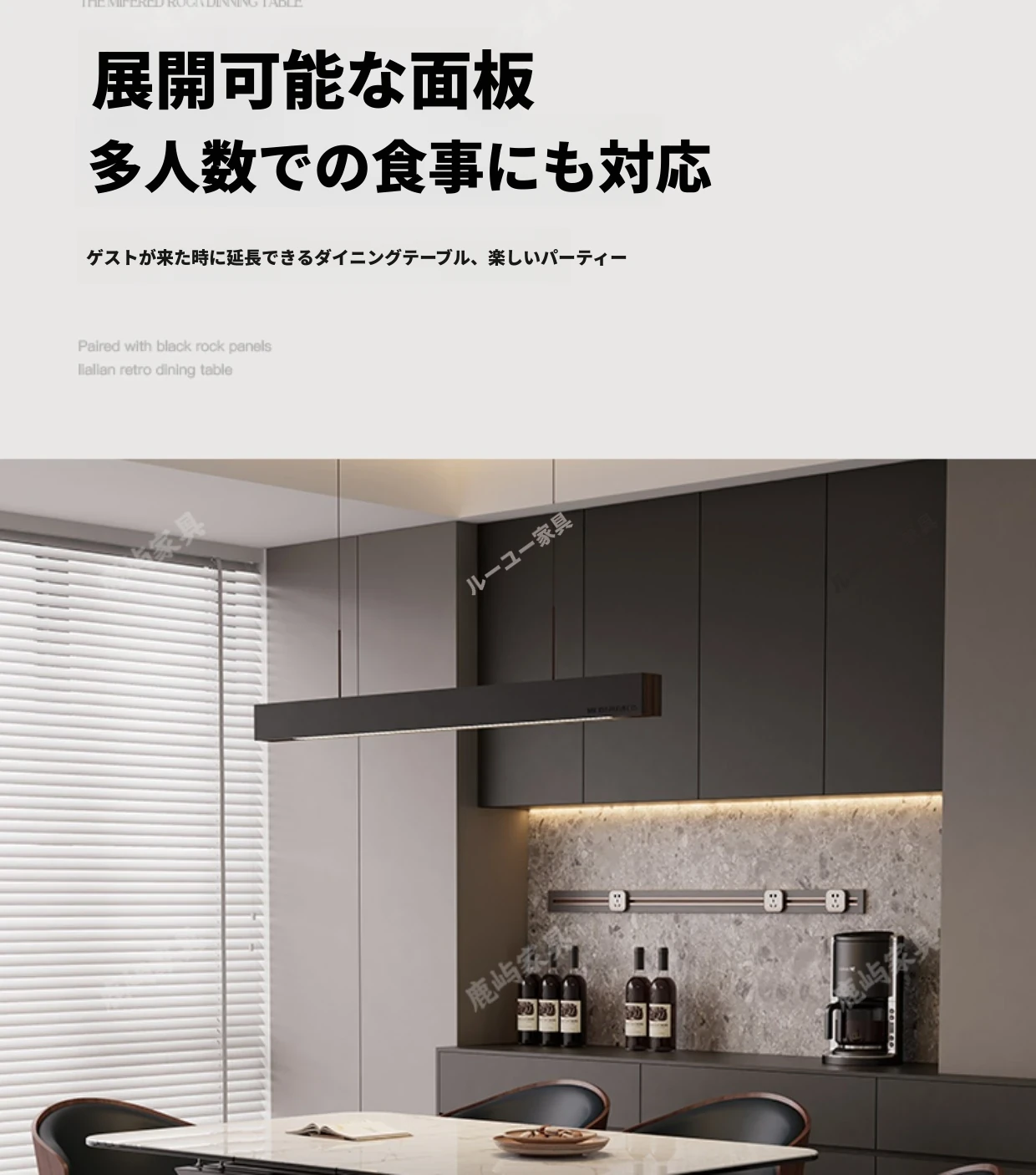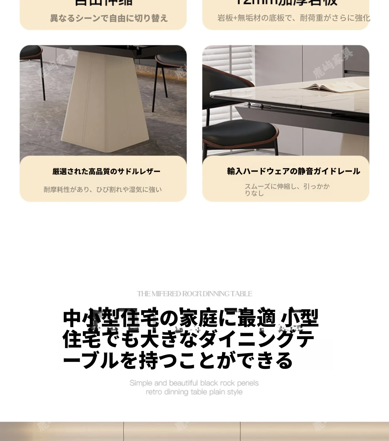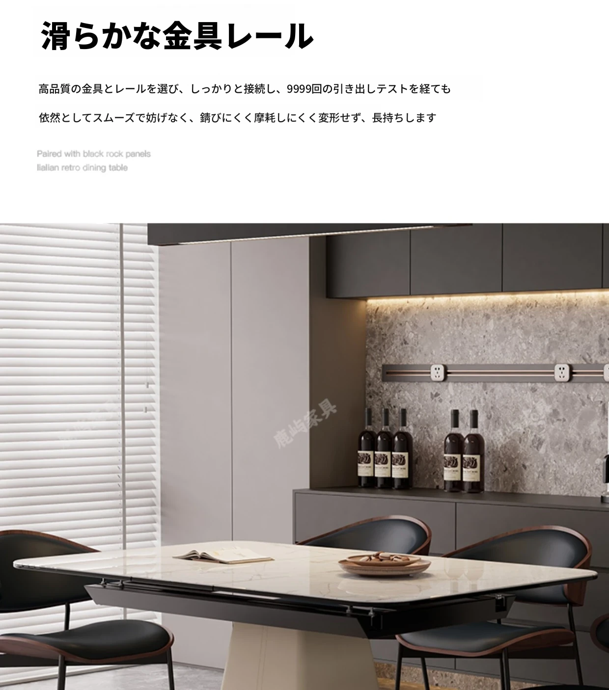 110cm伸縮140cmダイニングテーブル【輸入岩板+強化ガラス全托】