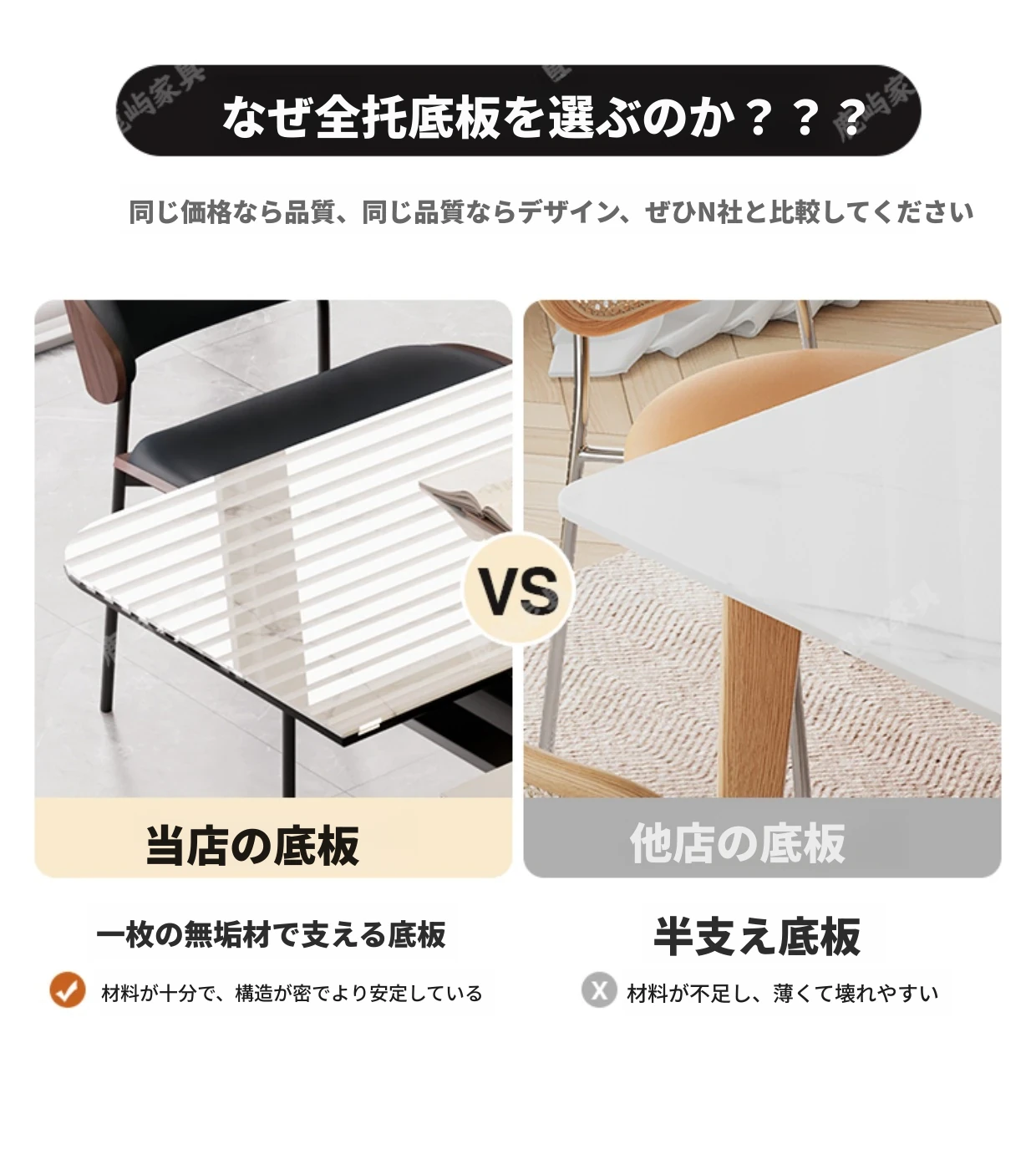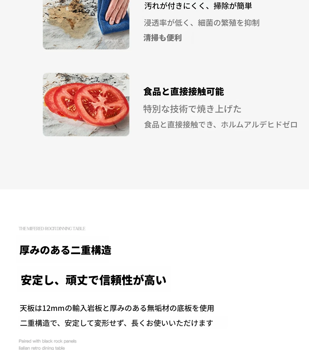 120cm-150cmダイニングテーブル【輸入岩板+強化ガラス全托】