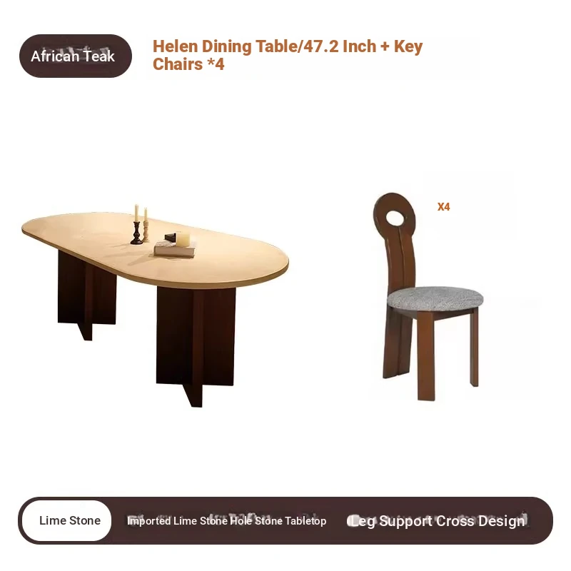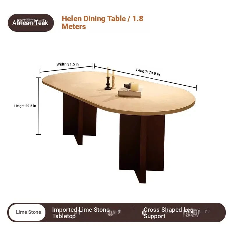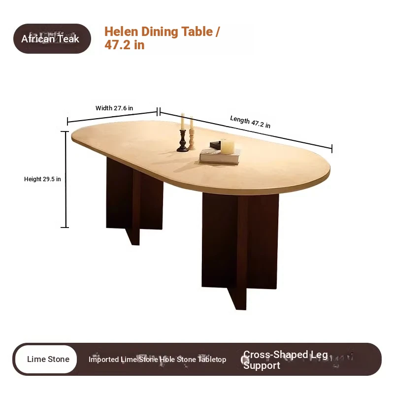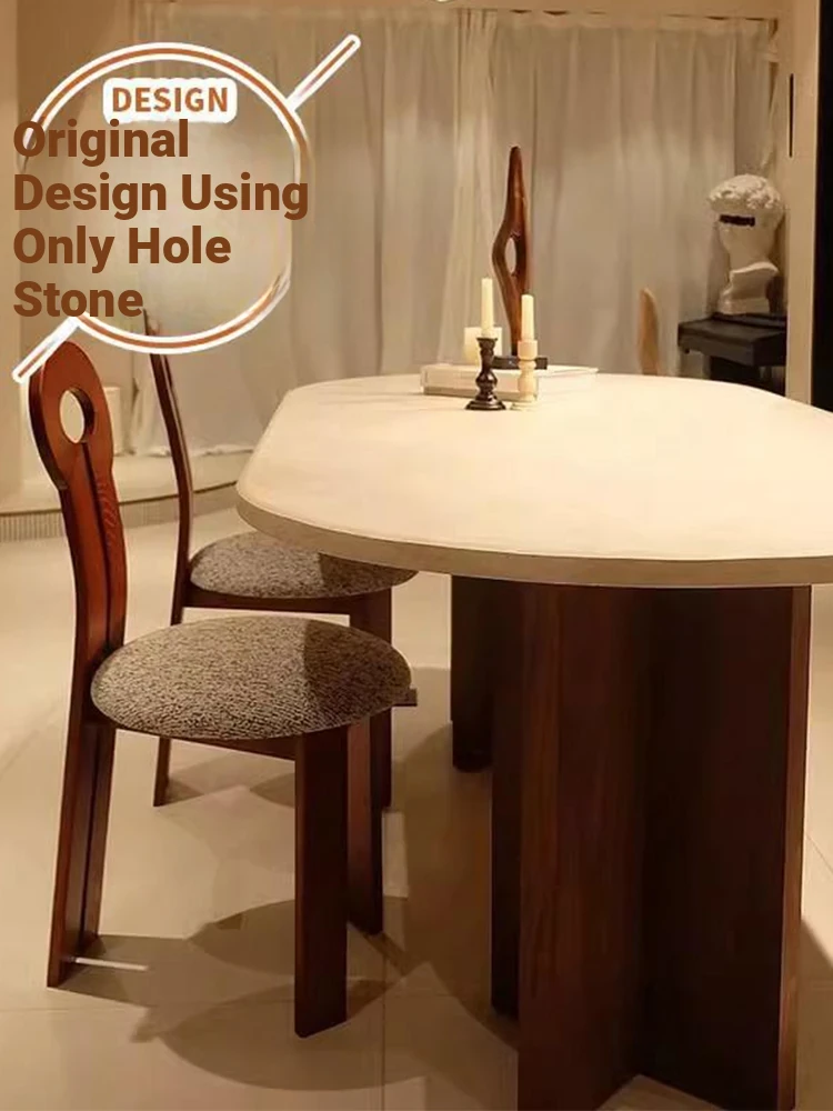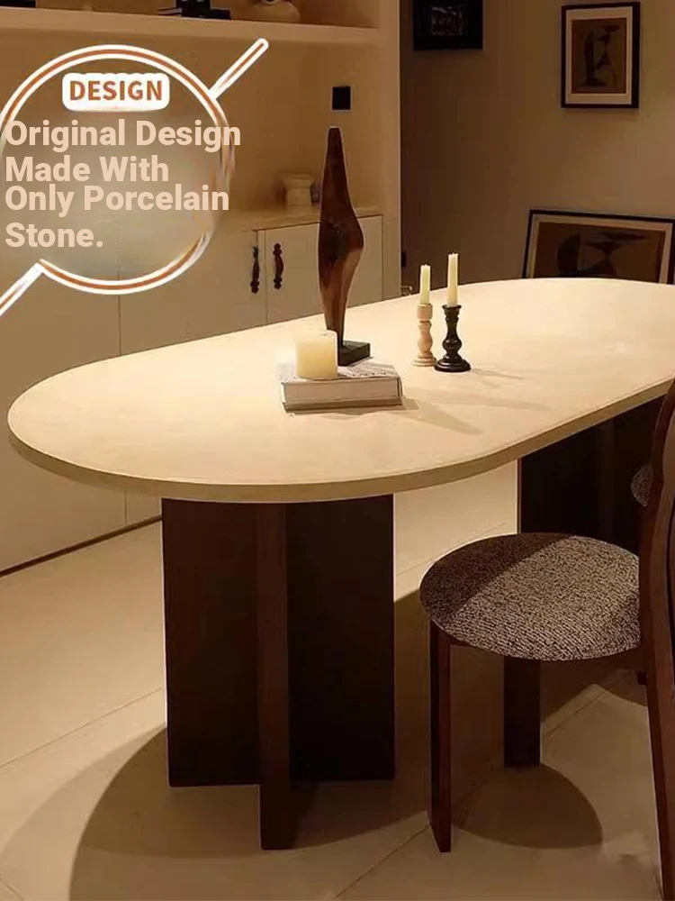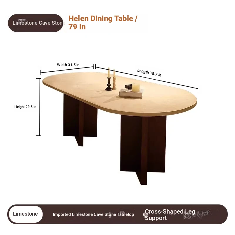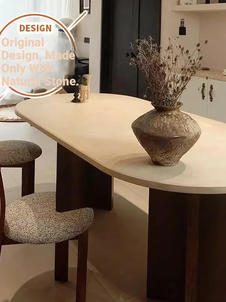 Vintage French Cream Style Solid Wood Oval Dining Table with Retro Aesthetic for Living Room - Elegant Limestone Finish for Luxurious Home Dining Experience