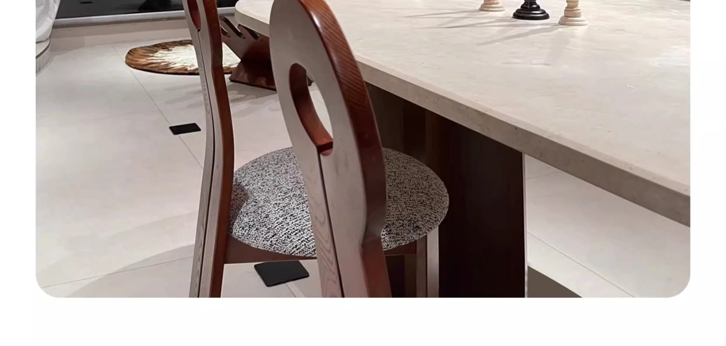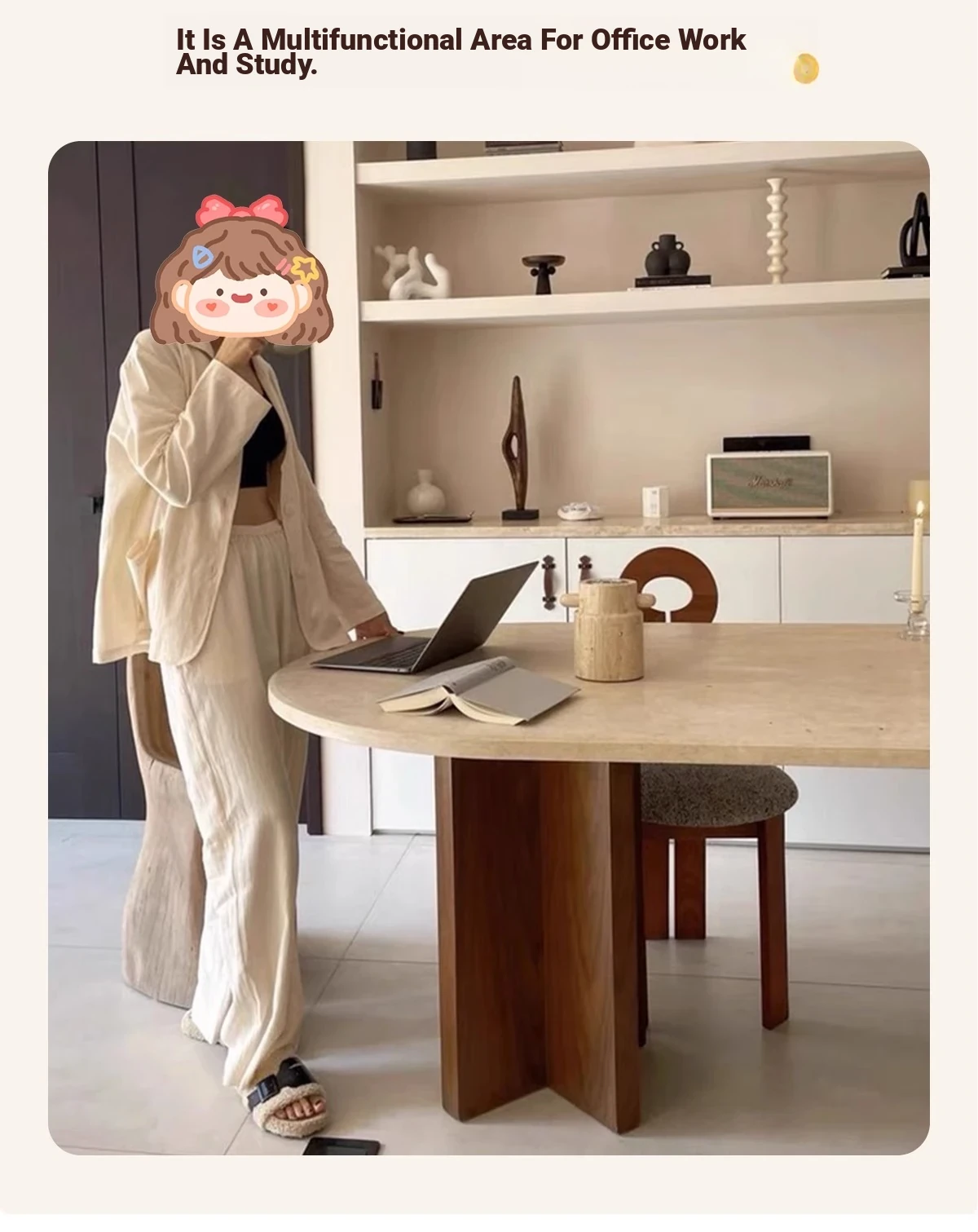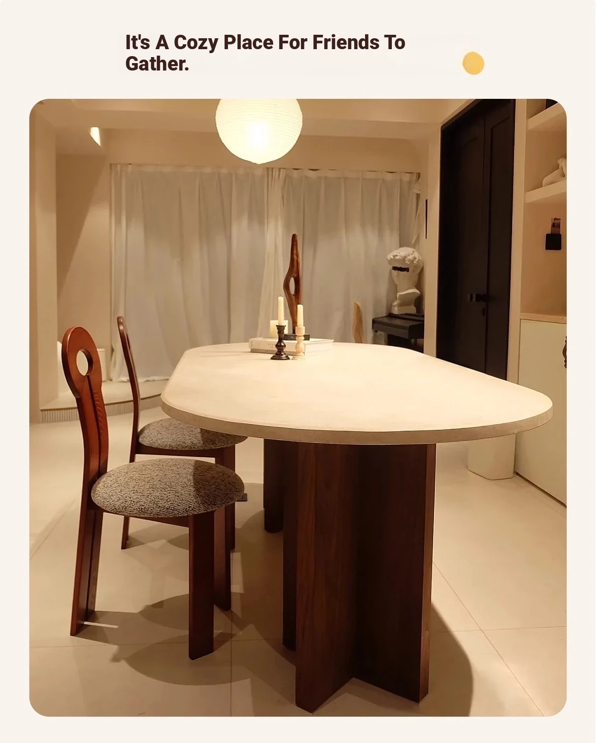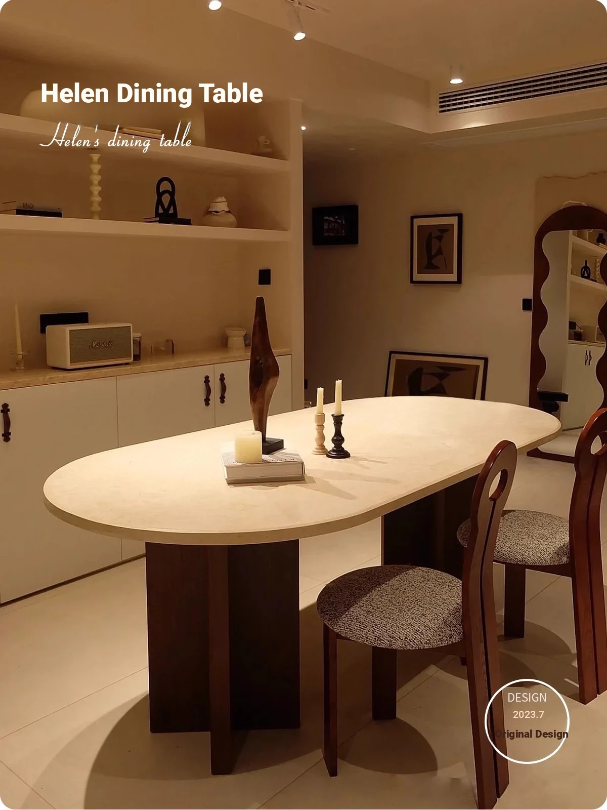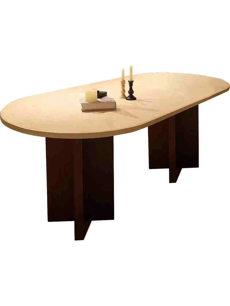 Vintage French Cream Style Solid Wood Oval Dining Table with Retro Aesthetic for Living Room - Elegant Limestone Finish for Luxurious Home Dining Experience