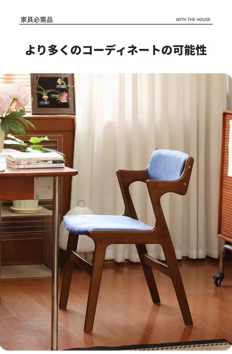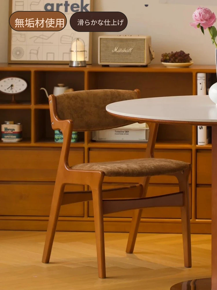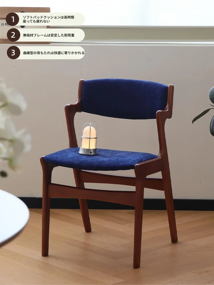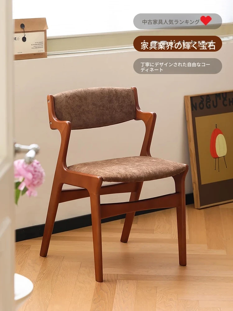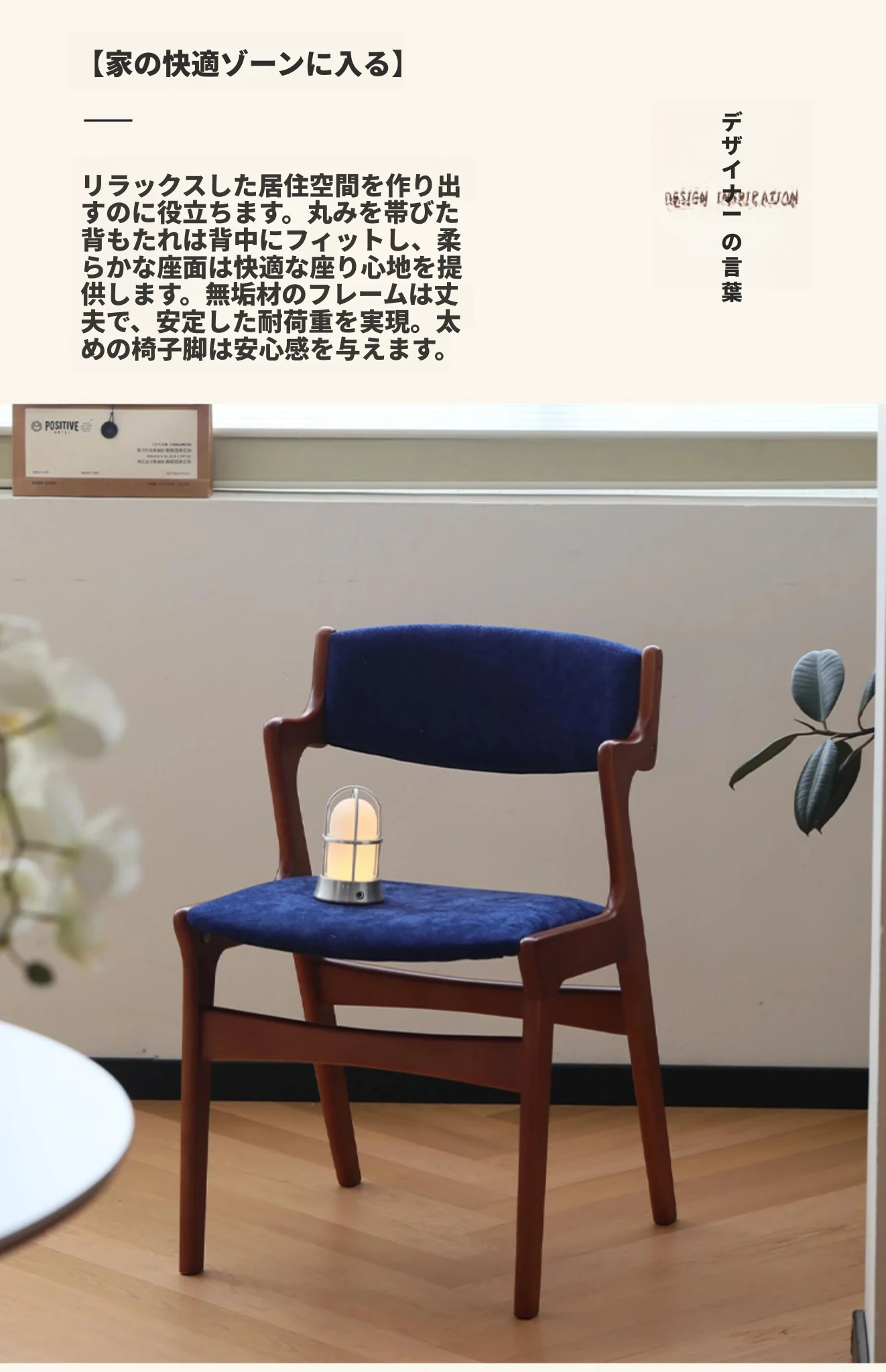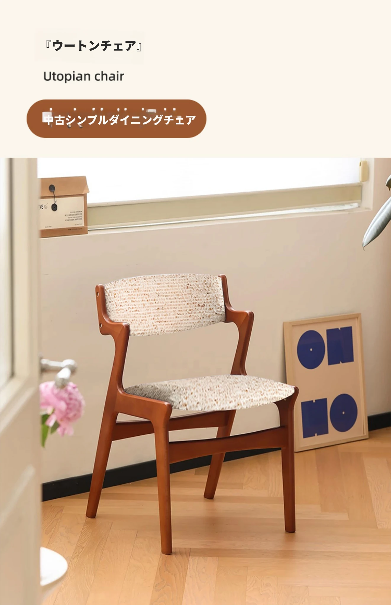 ヴィンテージ風デザインの北欧スタイル!中古の無垢材ダイニングチェア、リラックスできる高バックの一人掛け椅子。書斎やメイクアップにも最適な、オシャレで機能的なアイテムです。