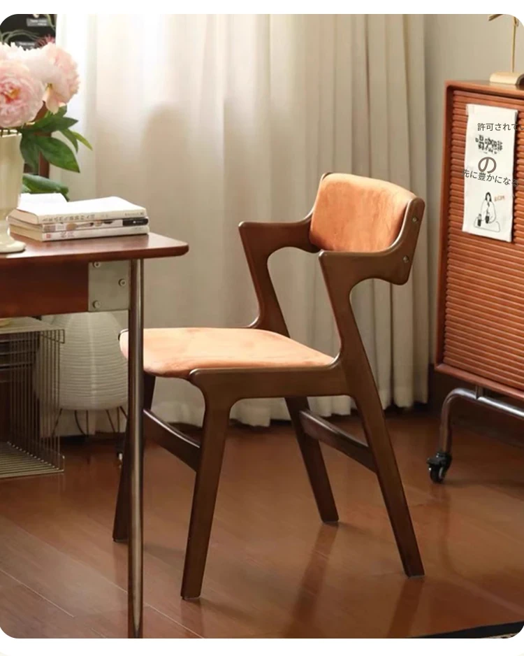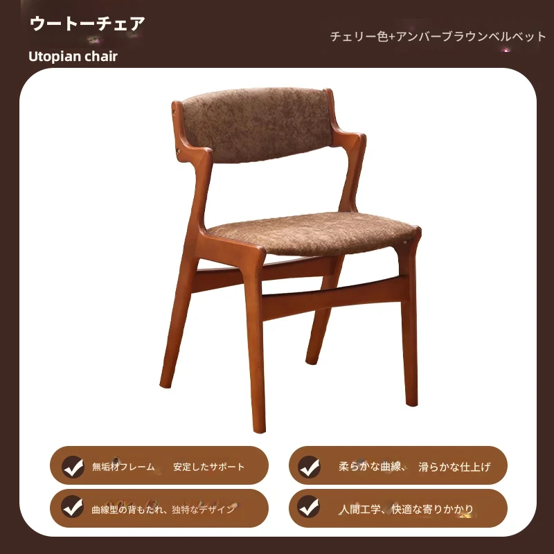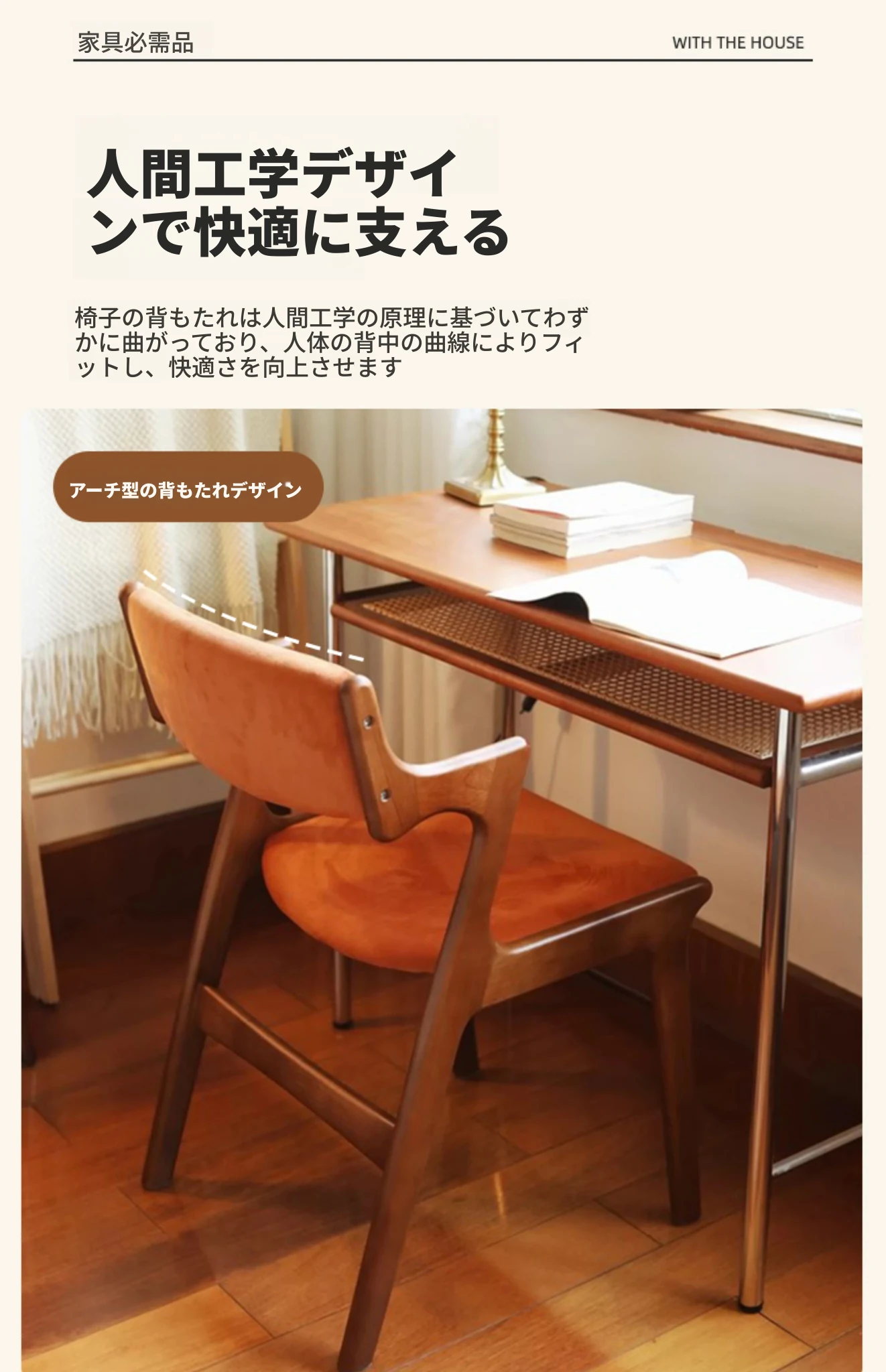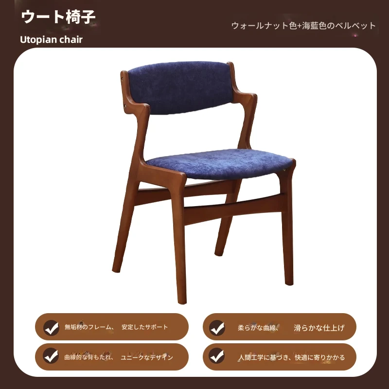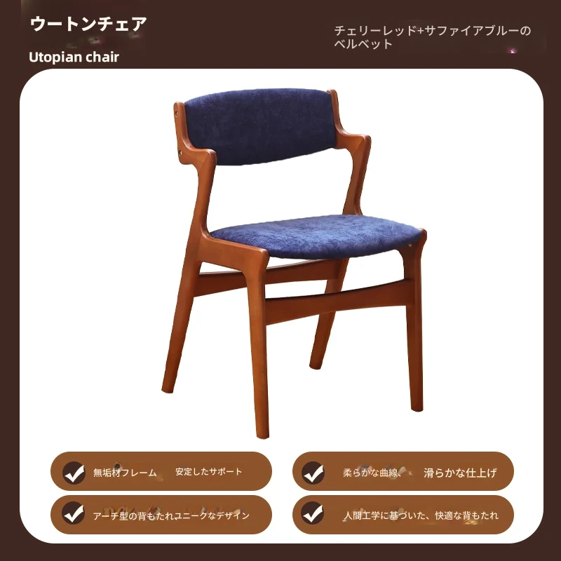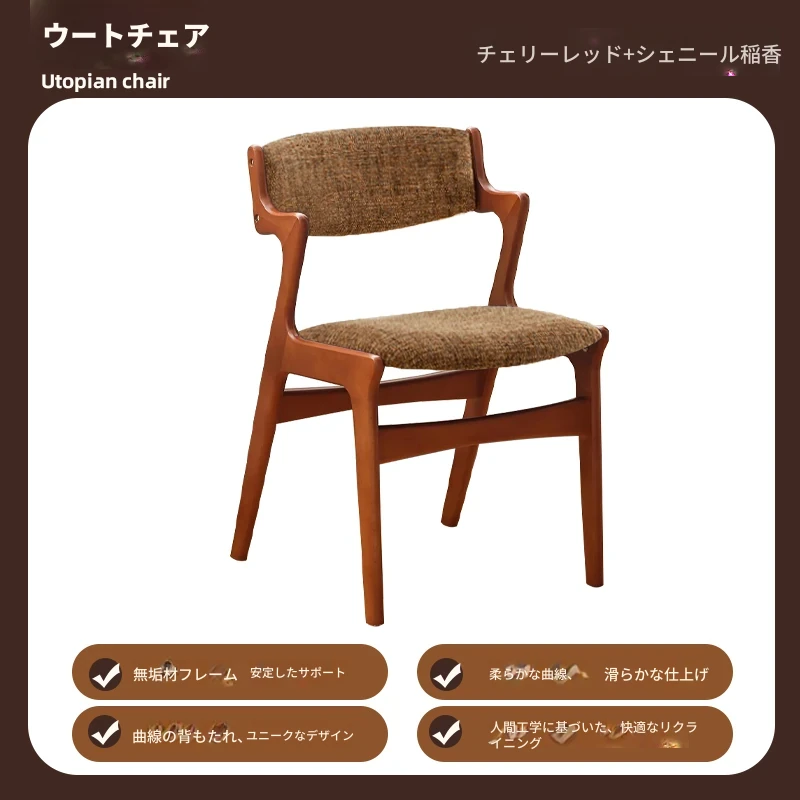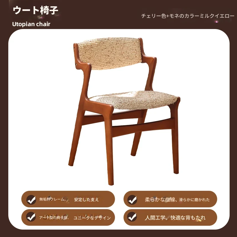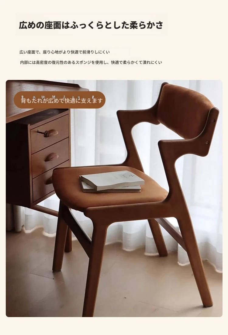 ヴィンテージ風デザインの北欧スタイル!中古の無垢材ダイニングチェア、リラックスできる高バックの一人掛け椅子。書斎やメイクアップにも最適な、オシャレで機能的なアイテムです。