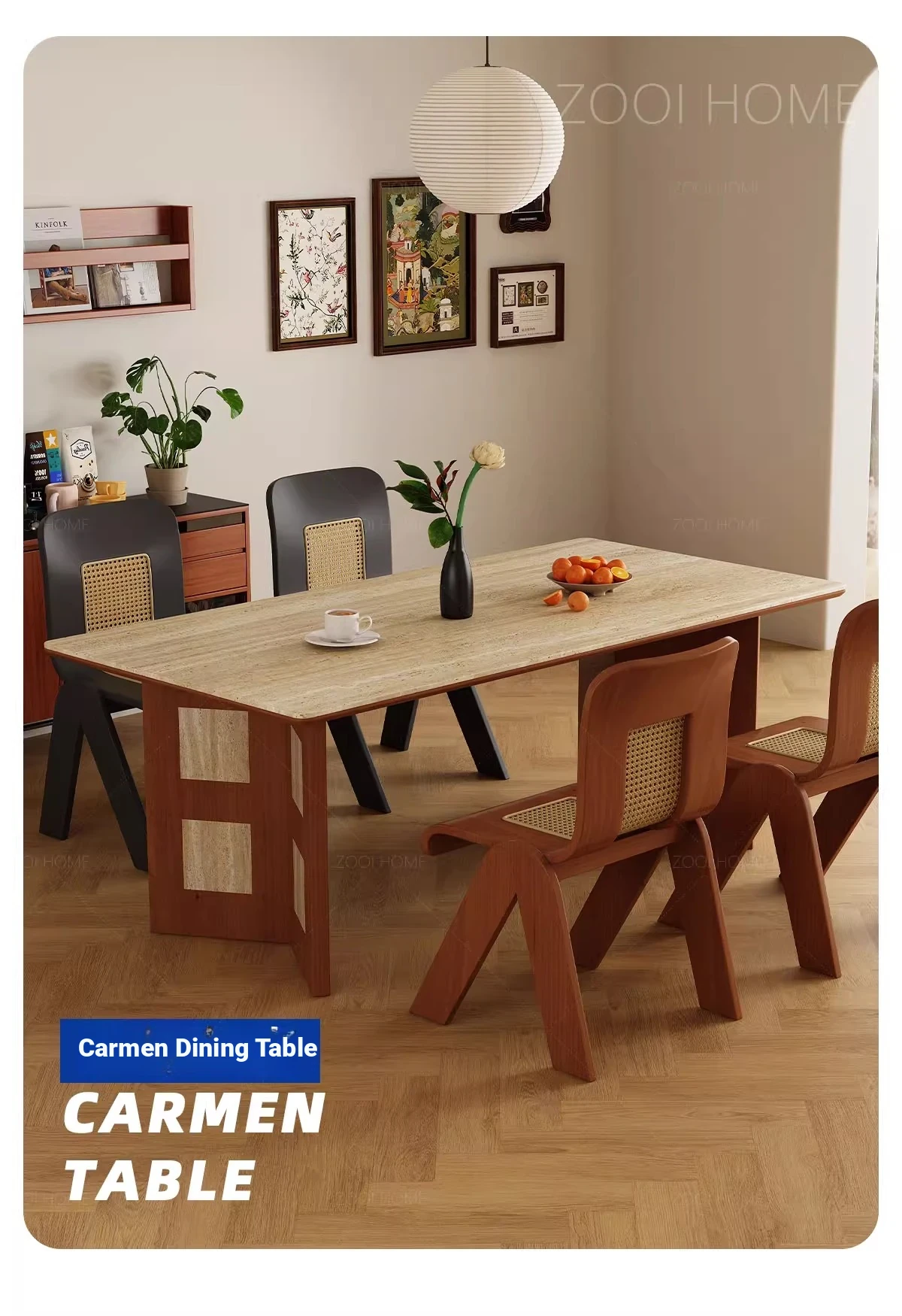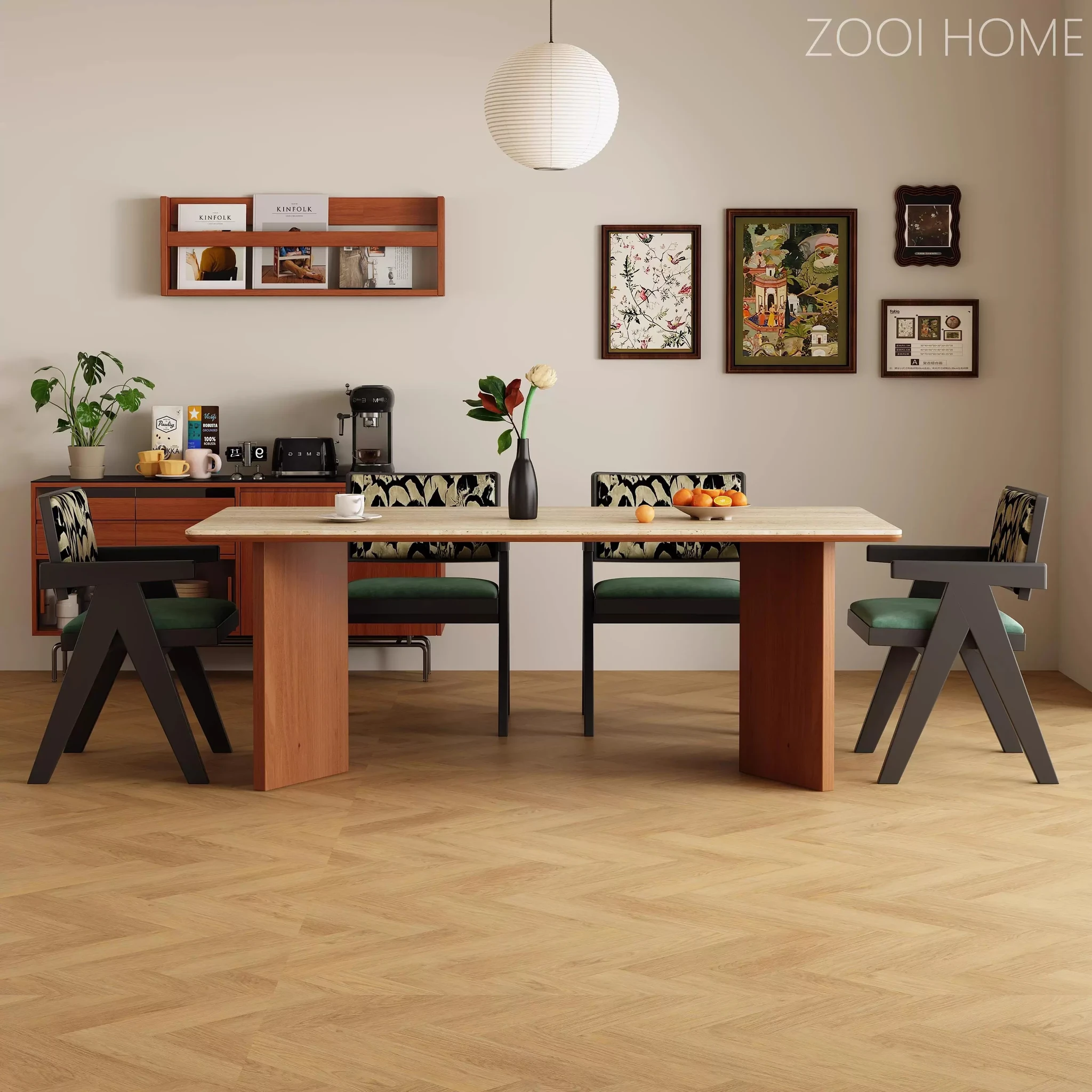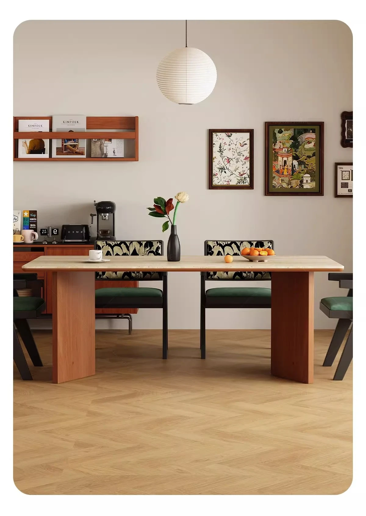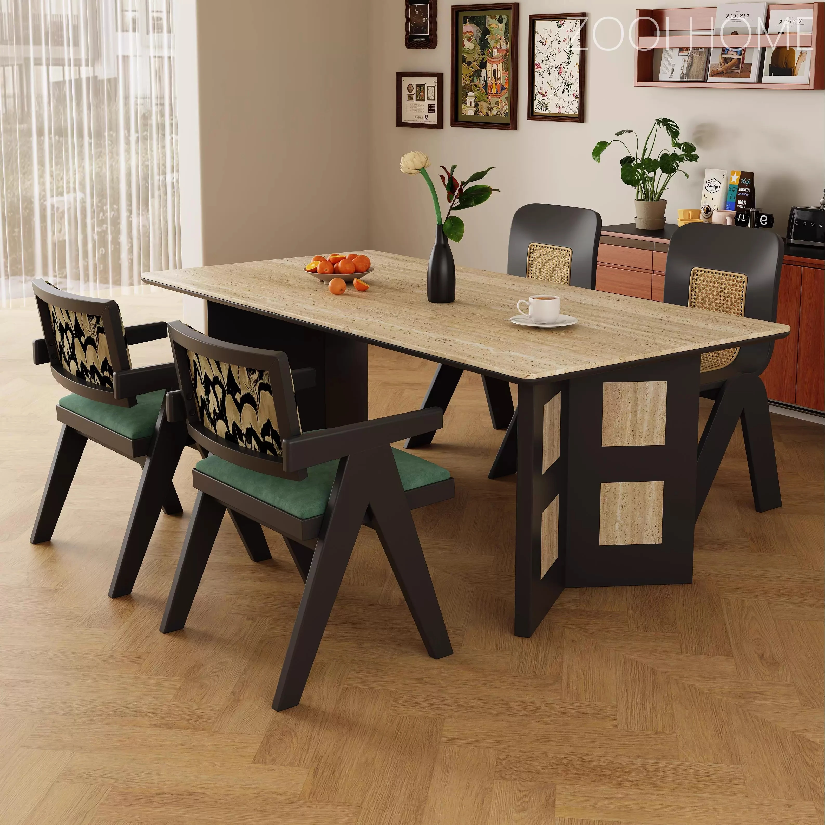 Vintage Style Stone Dining Table - Rectangular Ash Wood with Bauhaus Design by Kamen - Perfect for Home Use - Elegant Retro Furniture Set for Dining Room