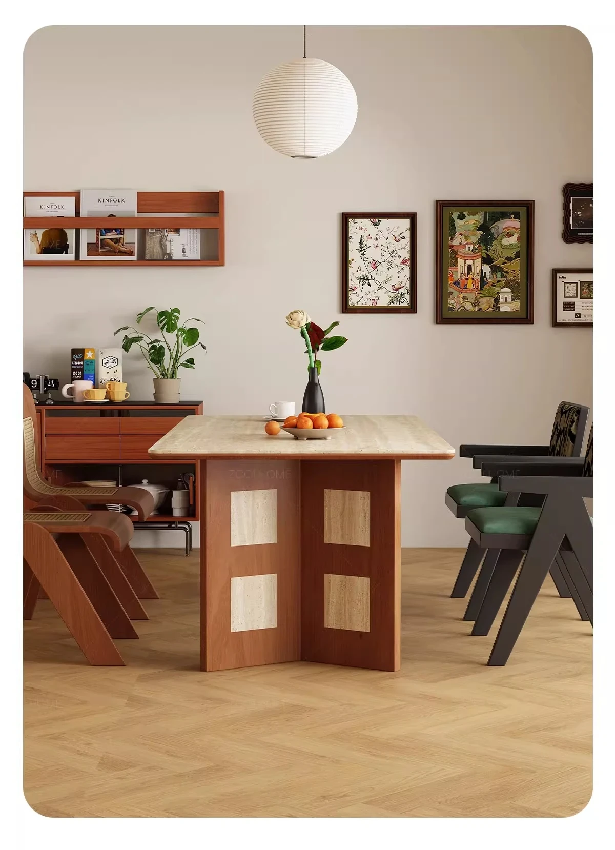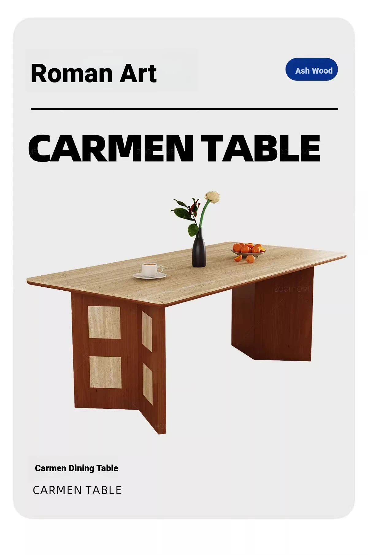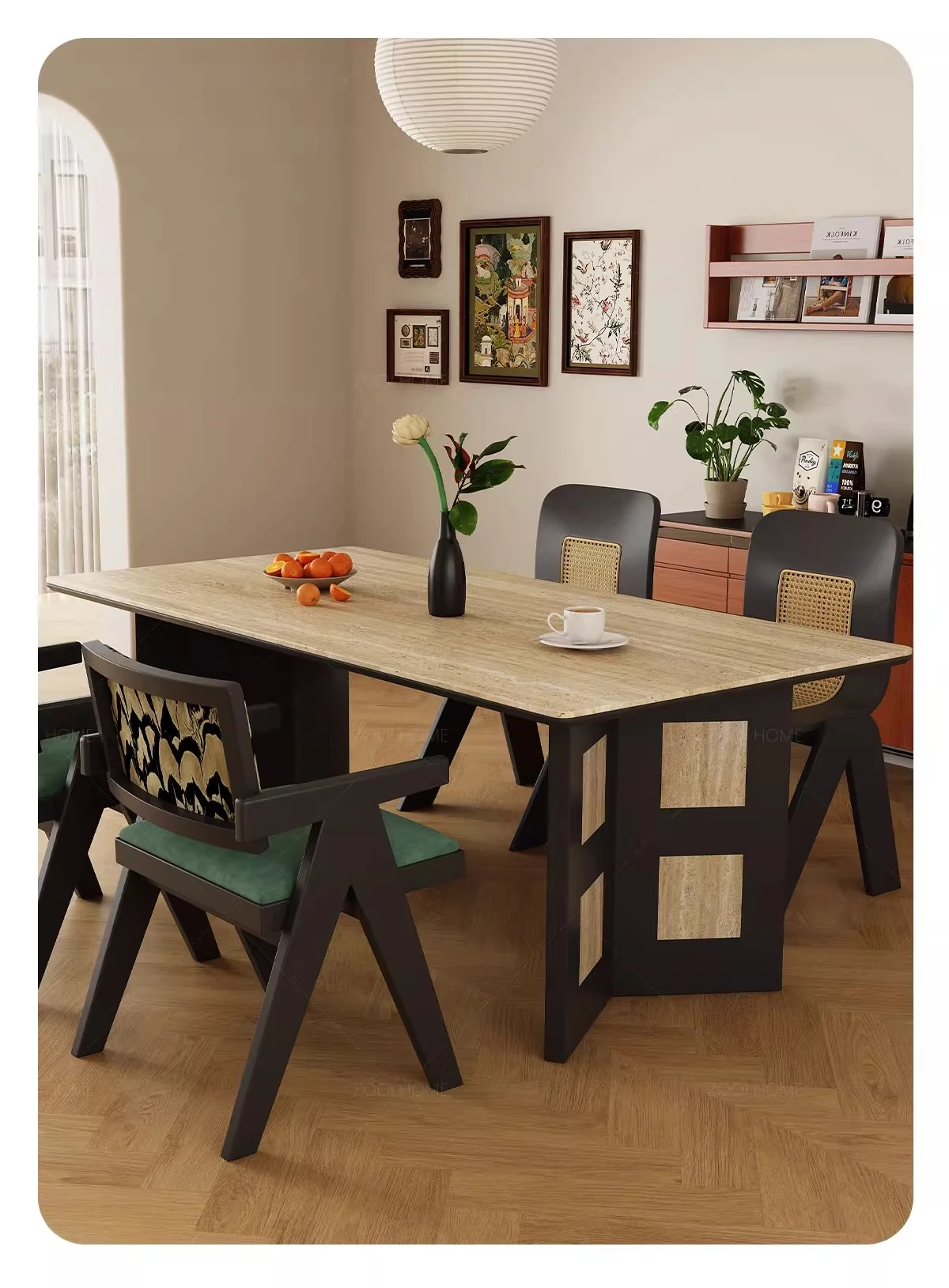 Vintage Style Stone Dining Table - Rectangular Ash Wood with Bauhaus Design by Kamen - Perfect for Home Use - Elegant Retro Furniture Set for Dining Room