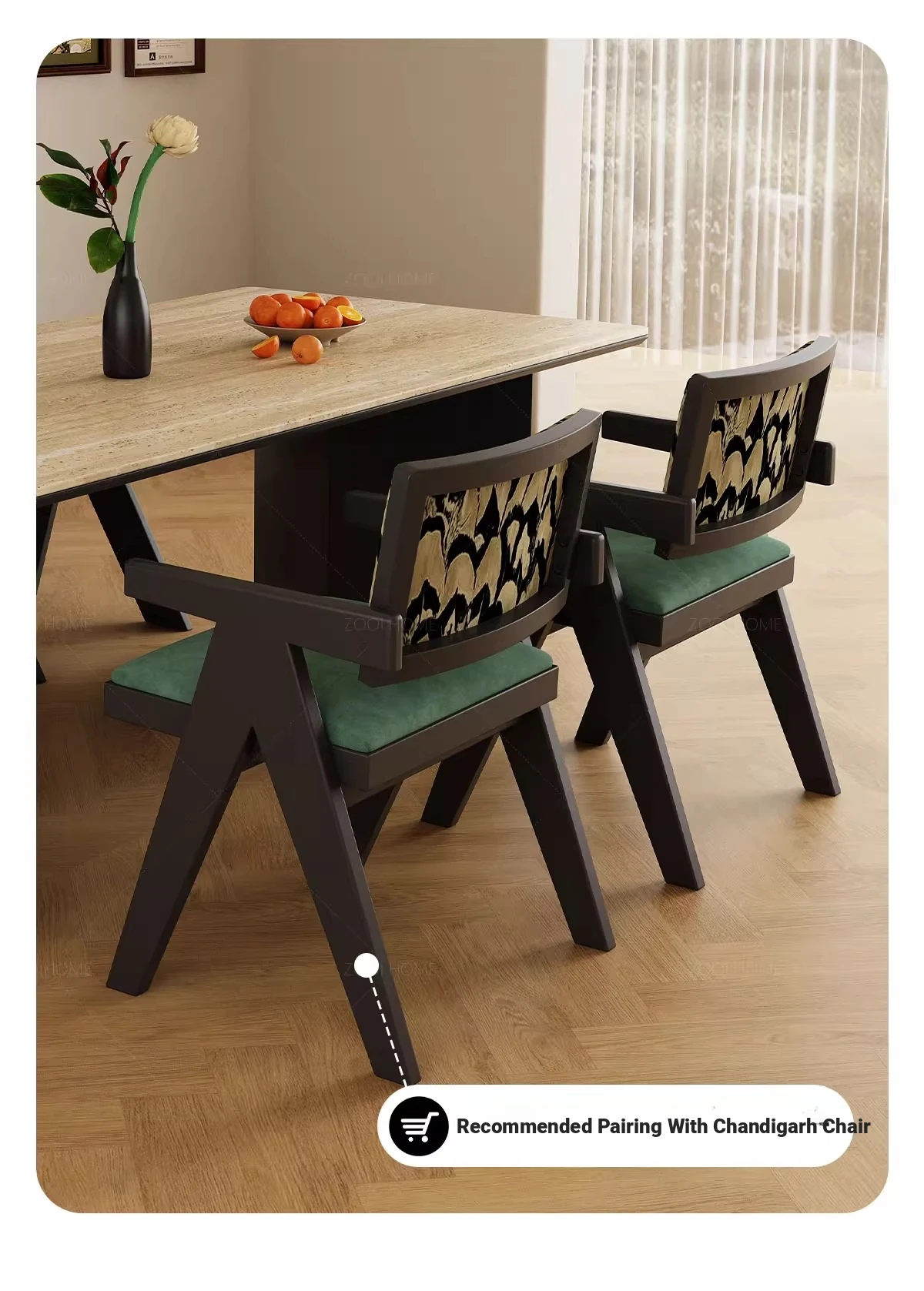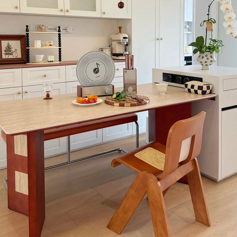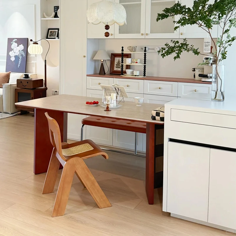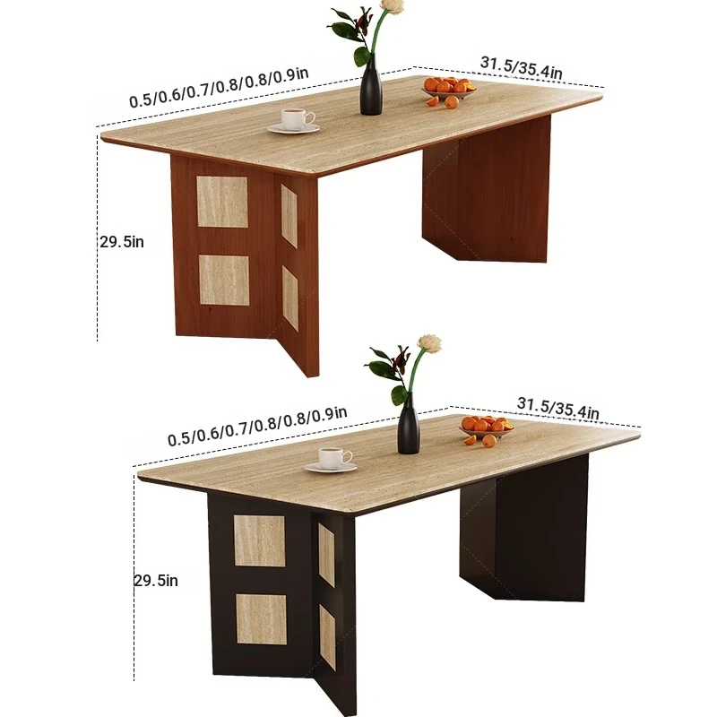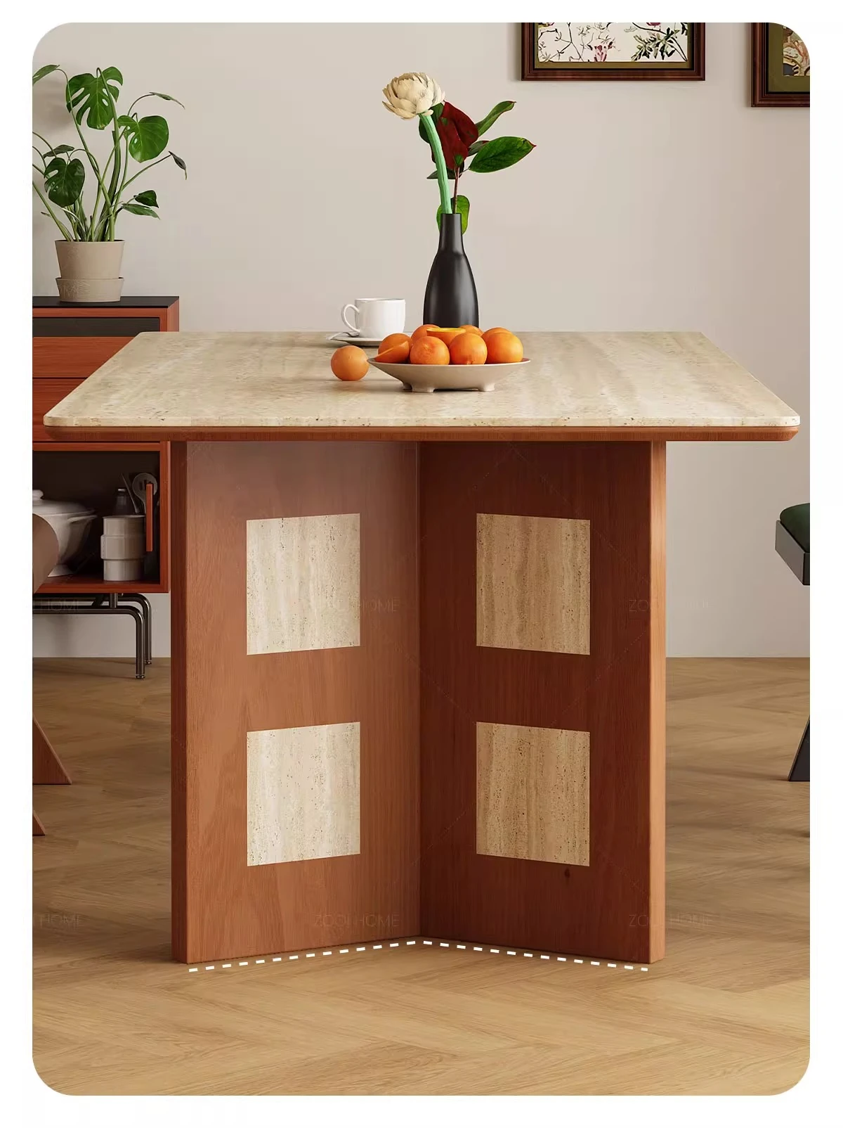 Vintage Style Stone Dining Table - Rectangular Ash Wood with Bauhaus Design by Kamen - Perfect for Home Use - Elegant Retro Furniture Set for Dining Room