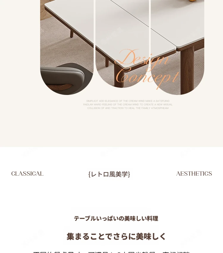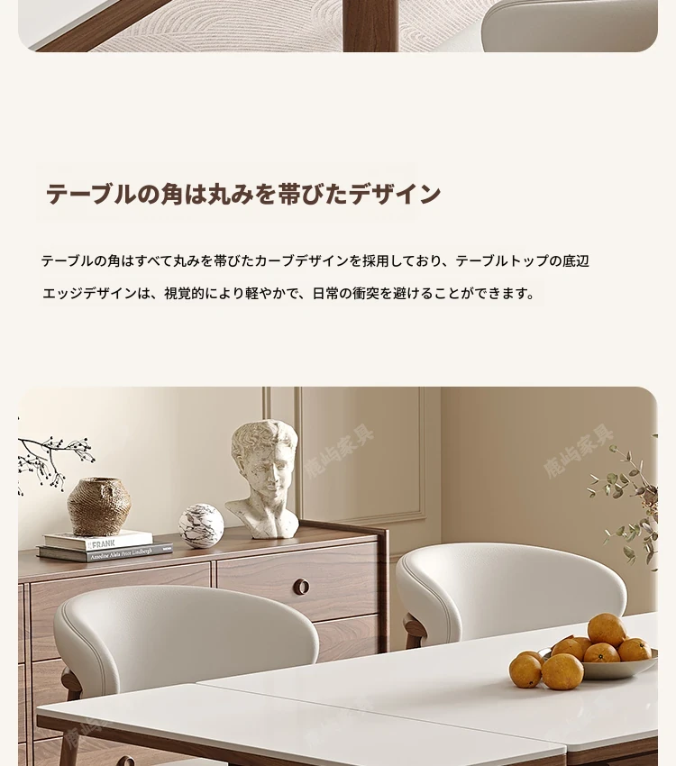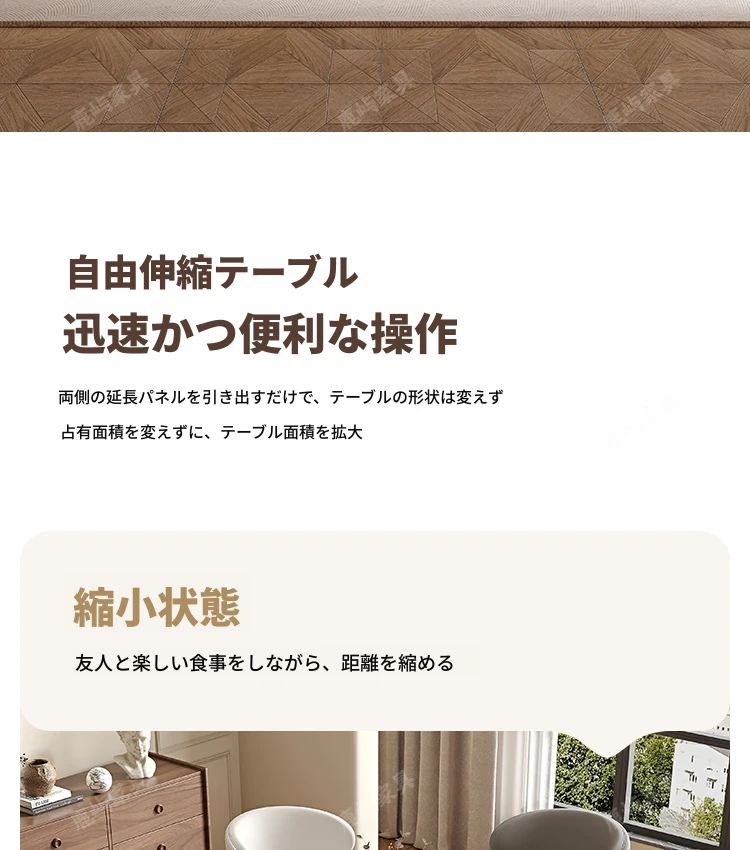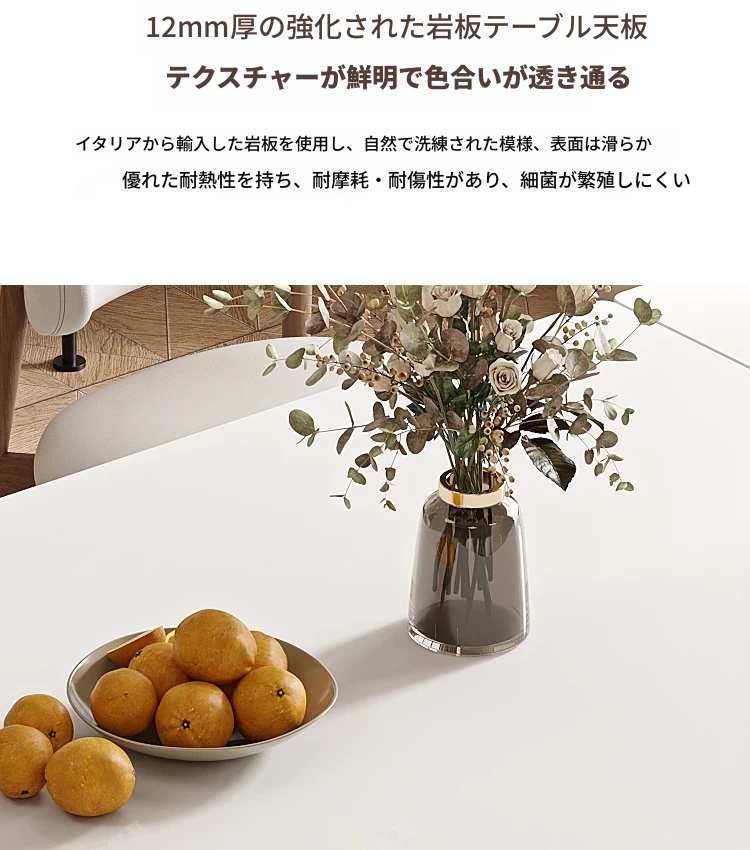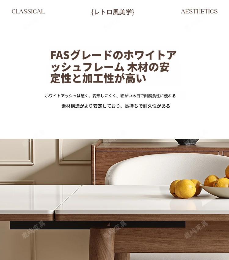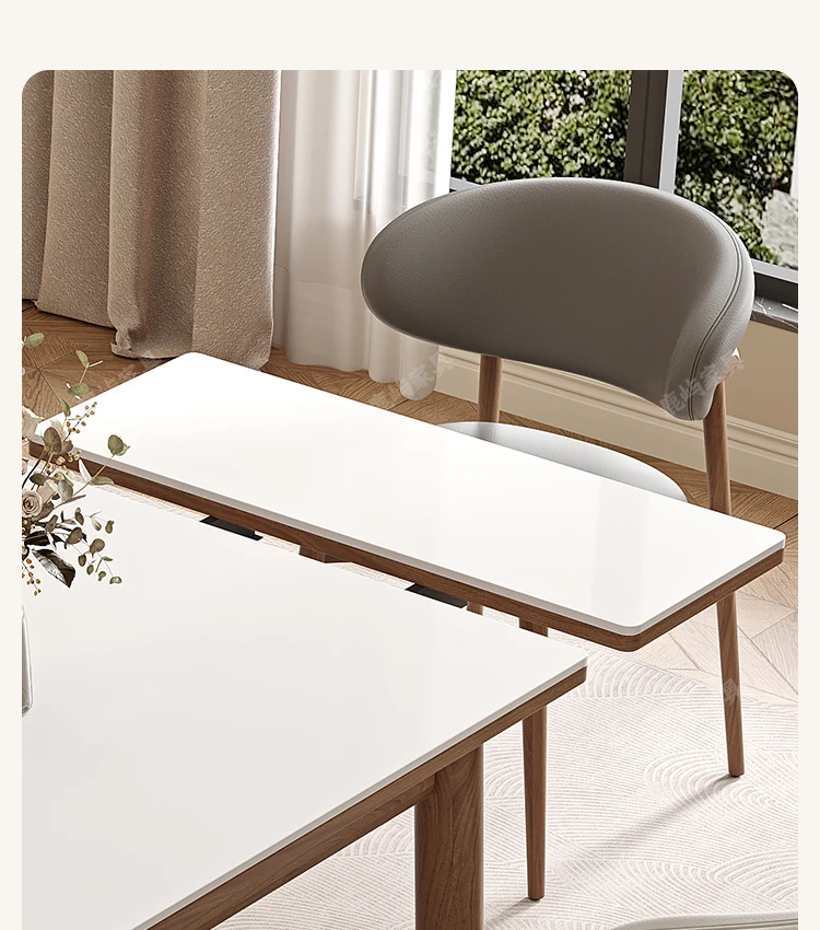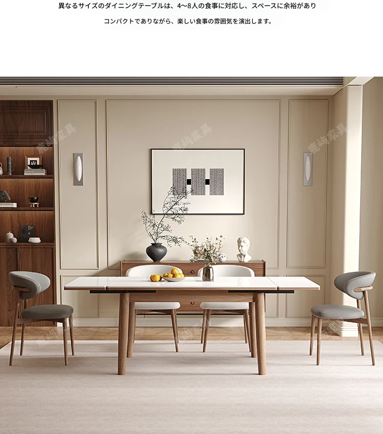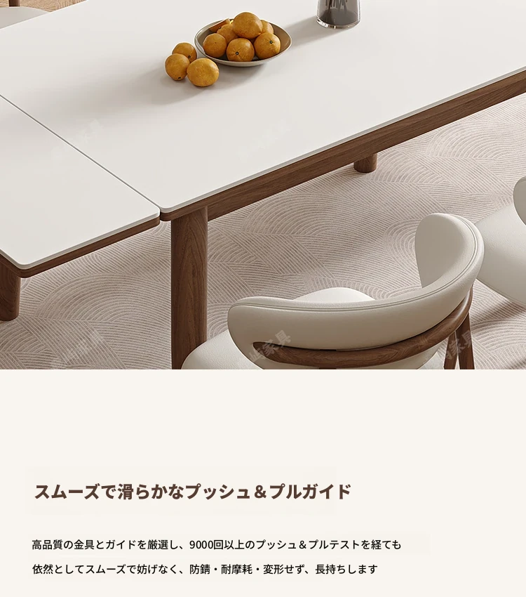 1.2メートル伸縮1.8メートルデリフォン岩板ダイニングテーブル 【ホワイトアッシュ木フレーム+全面無垢材底板】