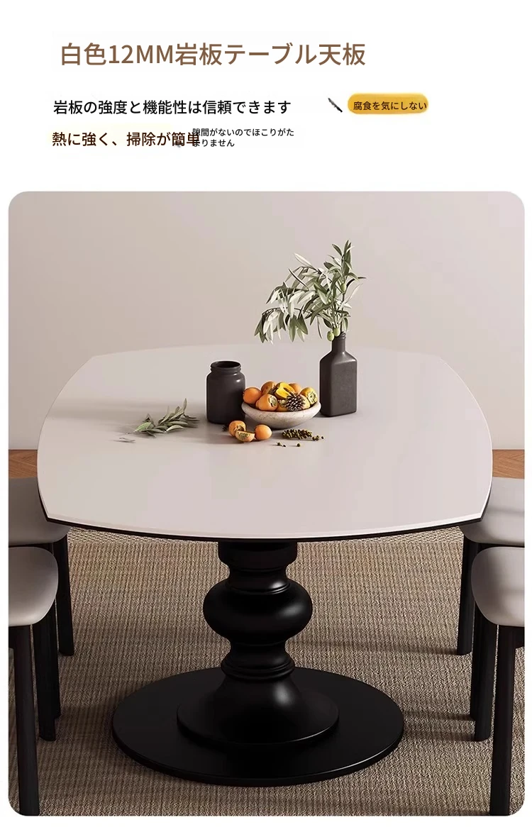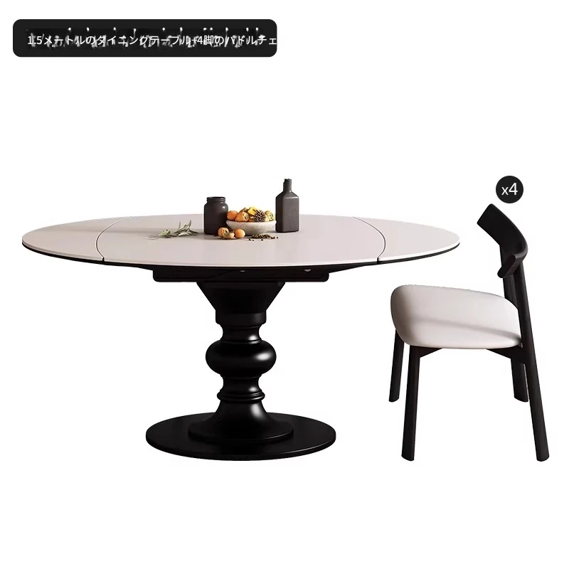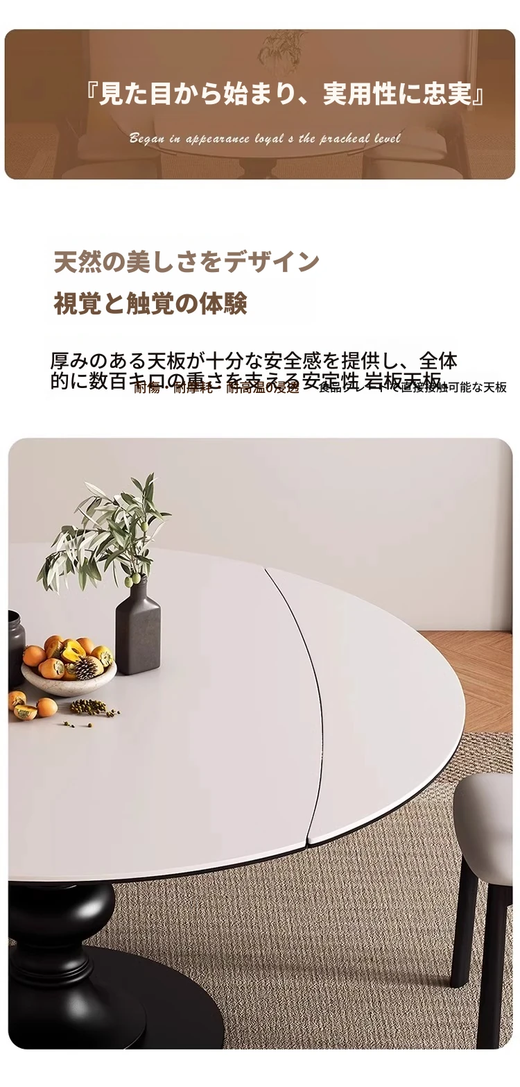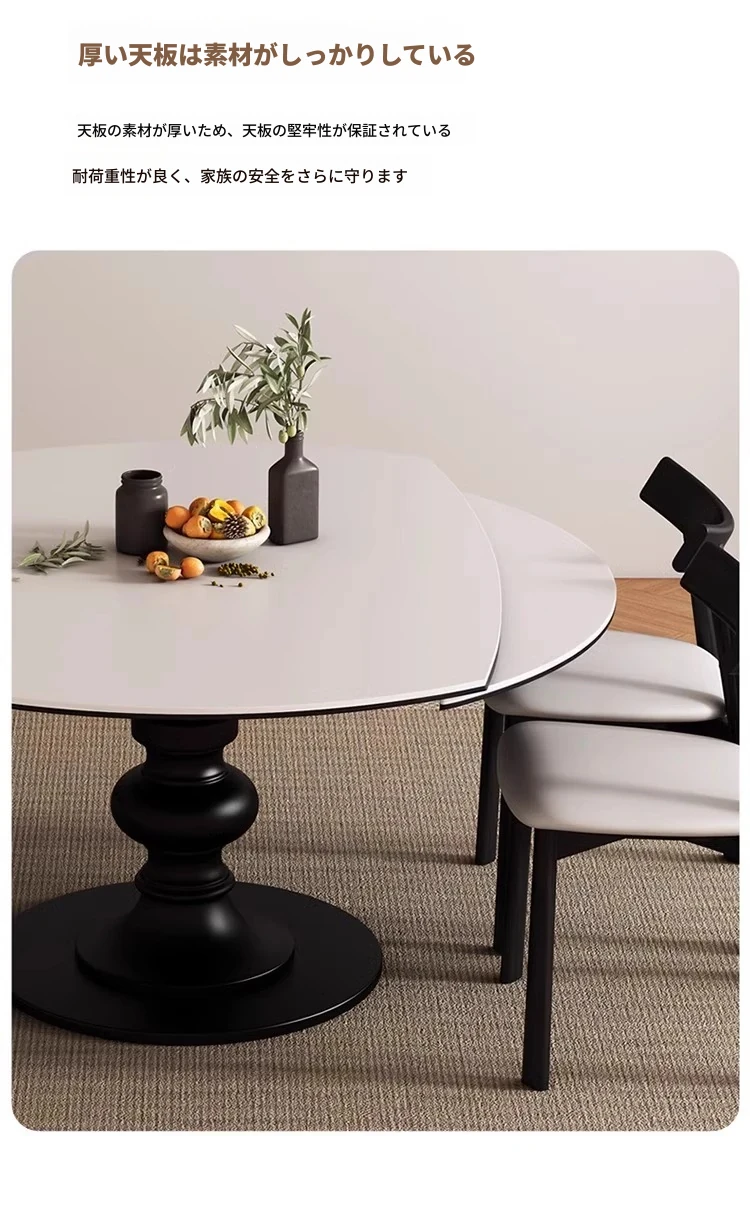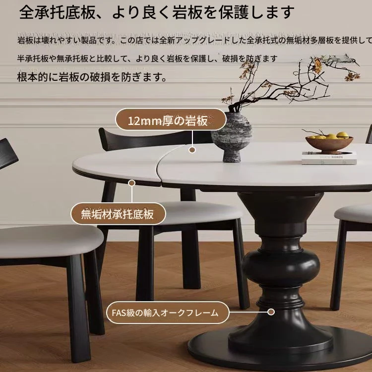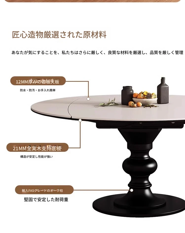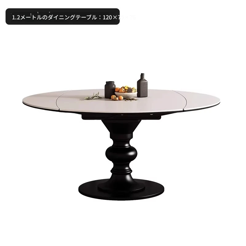 1.2メートル伸縮ダイニングテーブル[アップグレードデリフォン岩板+全底板]