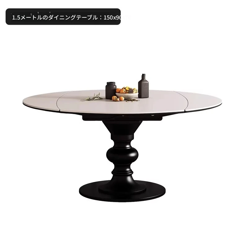 1.5メートル伸縮ダイニングテーブル[アップグレードデリフォン岩板+全底板]