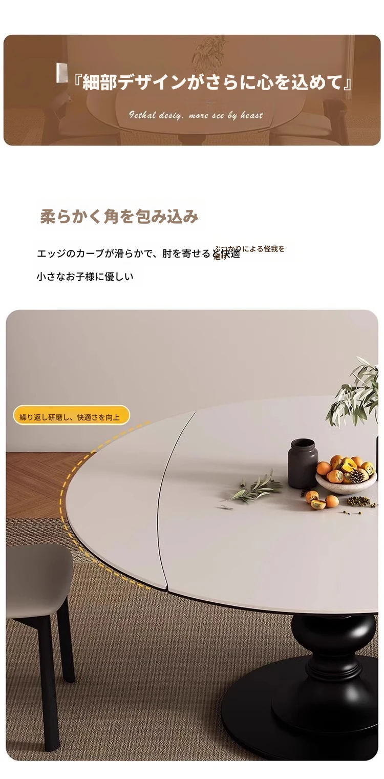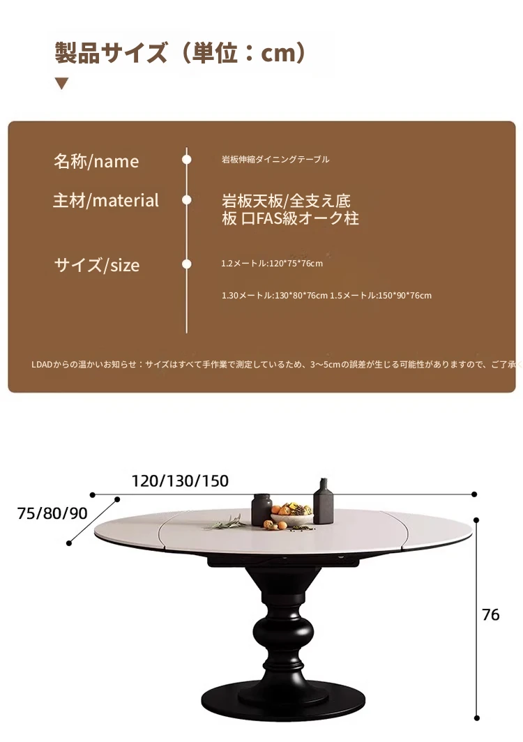 1.3メートル伸縮ダイニングテーブル[アップグレードデリフォン岩板+全底板]